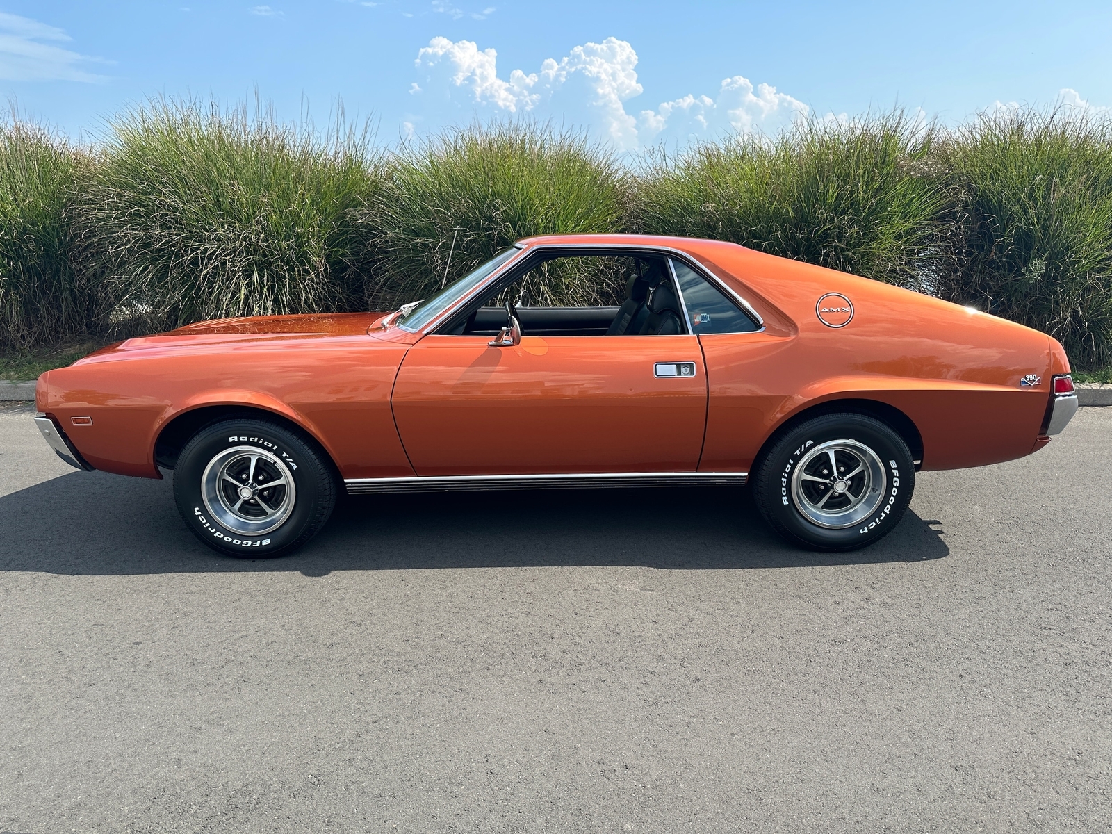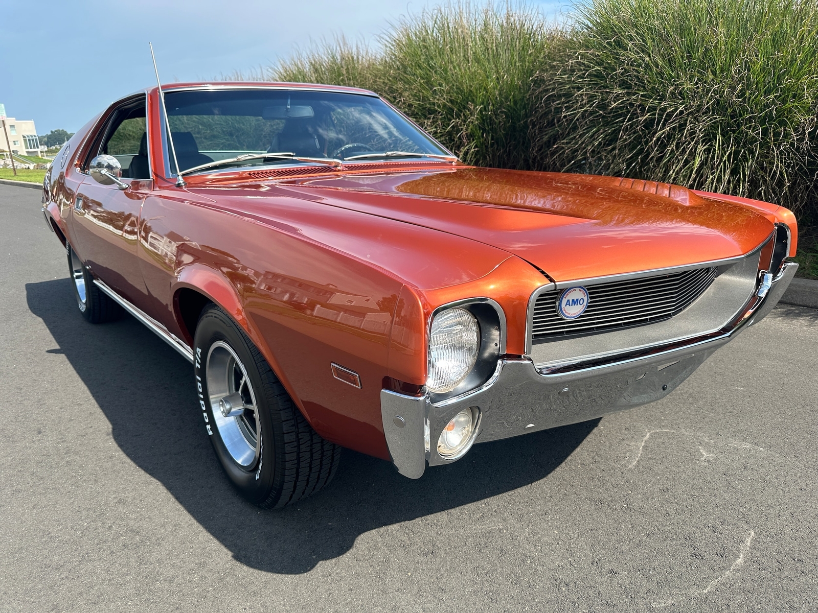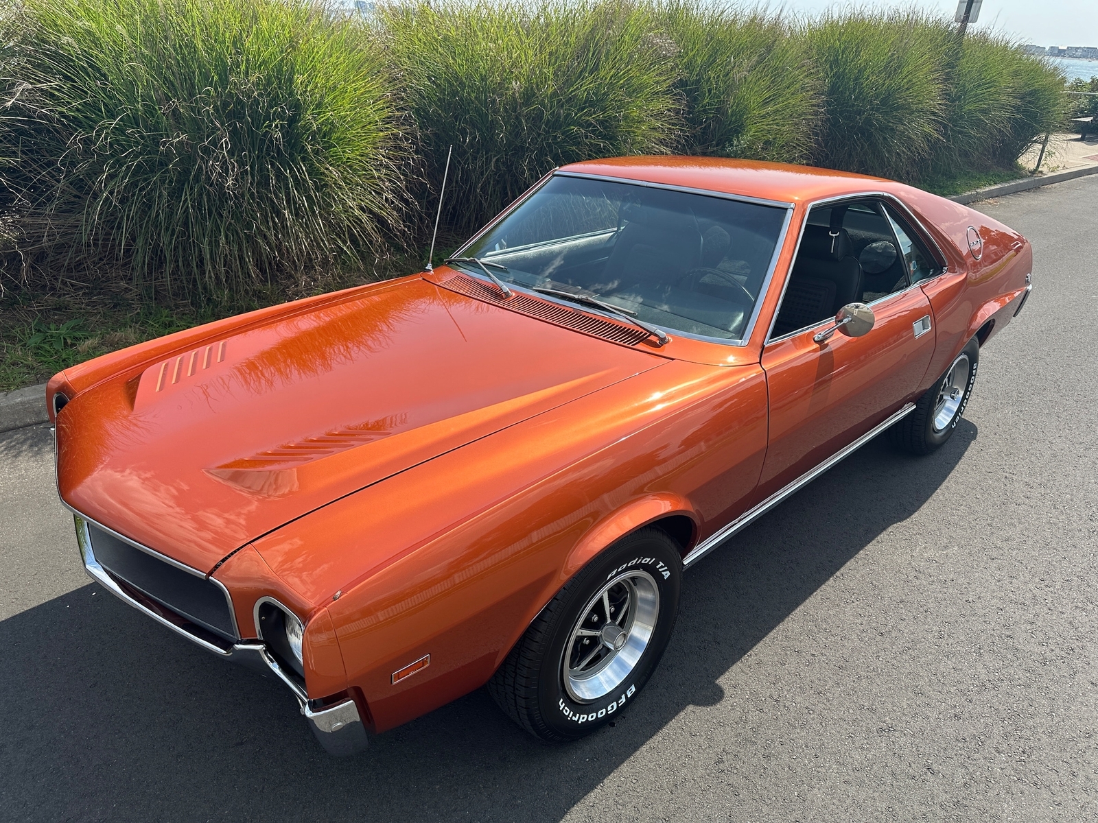 1969 AMC AMX 390 COUPE 390CI/315 HP 4/SPEED ONLY 3620 MADE YEAR: 1969 MAKE: AMC MODEL: AMX BODY: COUPE COLOR: BITTERSWEET ORANGE TRIM: CHARCOAL VINYL ENGINE: 390CI /315HP V8 TRANS: 4/SPEED REAR: 3:54 TO 1 SAFE-T-TRACK MILES: 75,209 SERIAL#: A9M397X287330 OPTIONS AMX *390 4BBL V8 *4/SPEED *POWER STEERING *POWER BRAKES *RALLY WHEELS *AM RADIO *BUCKET SEATS *ADDED CONSOLE *W/L RADIAL TIRES* RALLY GAUGES AND TACH SERIAL#BREAKDOWN A-AMC 9-1969 M-4/SPEED 3-AMX 97-HARDTOP X-390 2V V8 2887330- SEQ# DOOR TAG BODY: R037352-BODY # MODEL: 6939-7-AMX TRIM 931- BUCKET CHARCOAL PAINT: 79A-BITTERSWEET ORANGE DRIVELINE #S ENGINE: 204W30 TRANS: D969 T10-IB Q2 D9/69 REAR: PF 370 POSITRACTION HISTORY / COMMENTS THIS REAL DEAL 390 4/SPEED AMX IS A 3-OWNER CAR. THE CAR WAS REPAINTED WITHIN THE LAST 2 YEARS. STRAIGHT BODY LINE. SOLID UNDER BODY WITH NO RUST ISSUES. ONLY ADDED A FLOOR CONSOLE. BRAND NEW BRAKES. BRAND NEW WHEEL CYLINDERS AND BRAND NEW BF GOODRICH W/L TIRES JUST DONE LAST MONTH. CAR RUNS AND PERFORMS LIKE NEW. ONLY 3620 PRODUCED.ORIGINAL OWNERS MANUAL AND WARRANTY BOOK.
