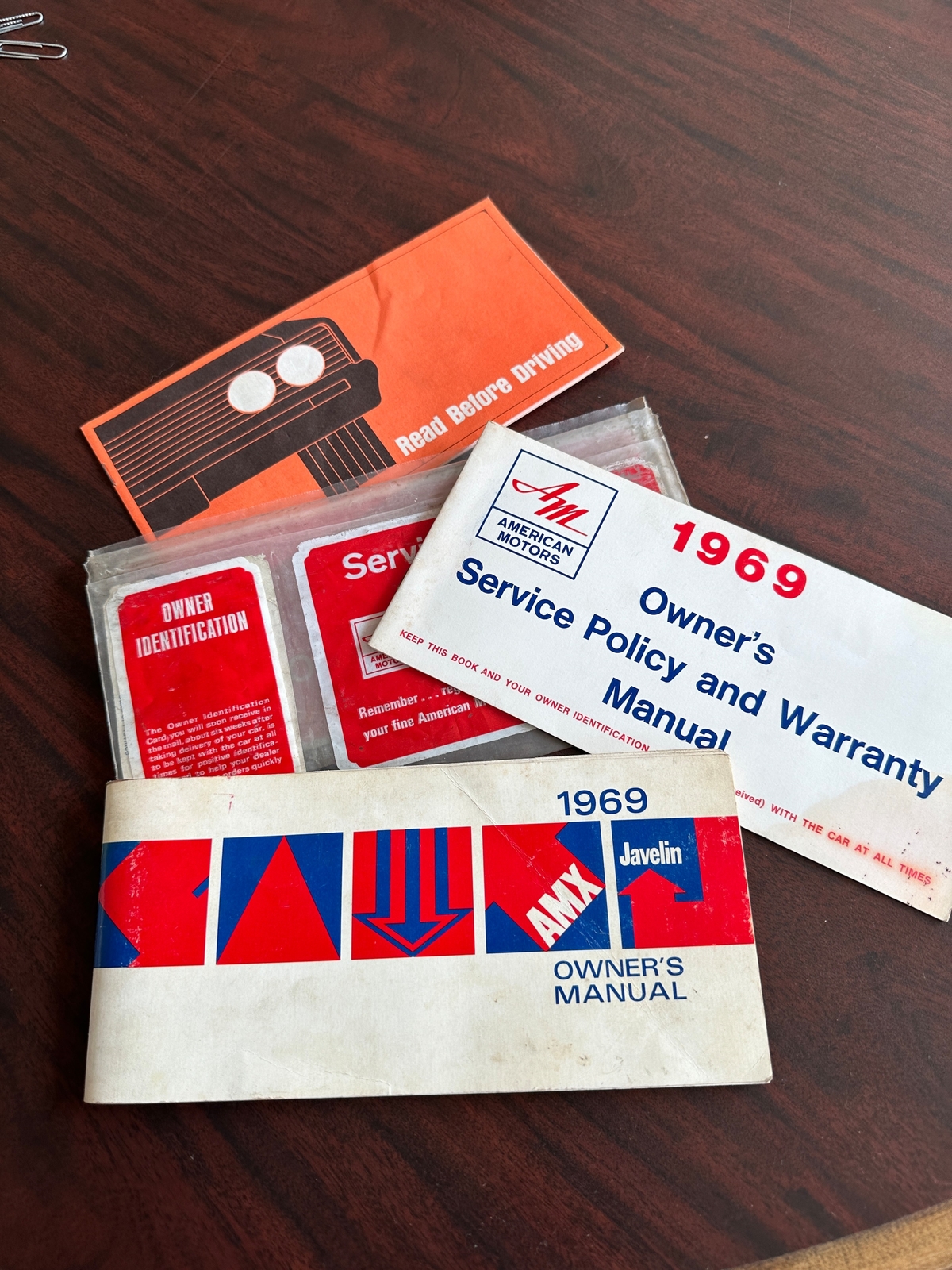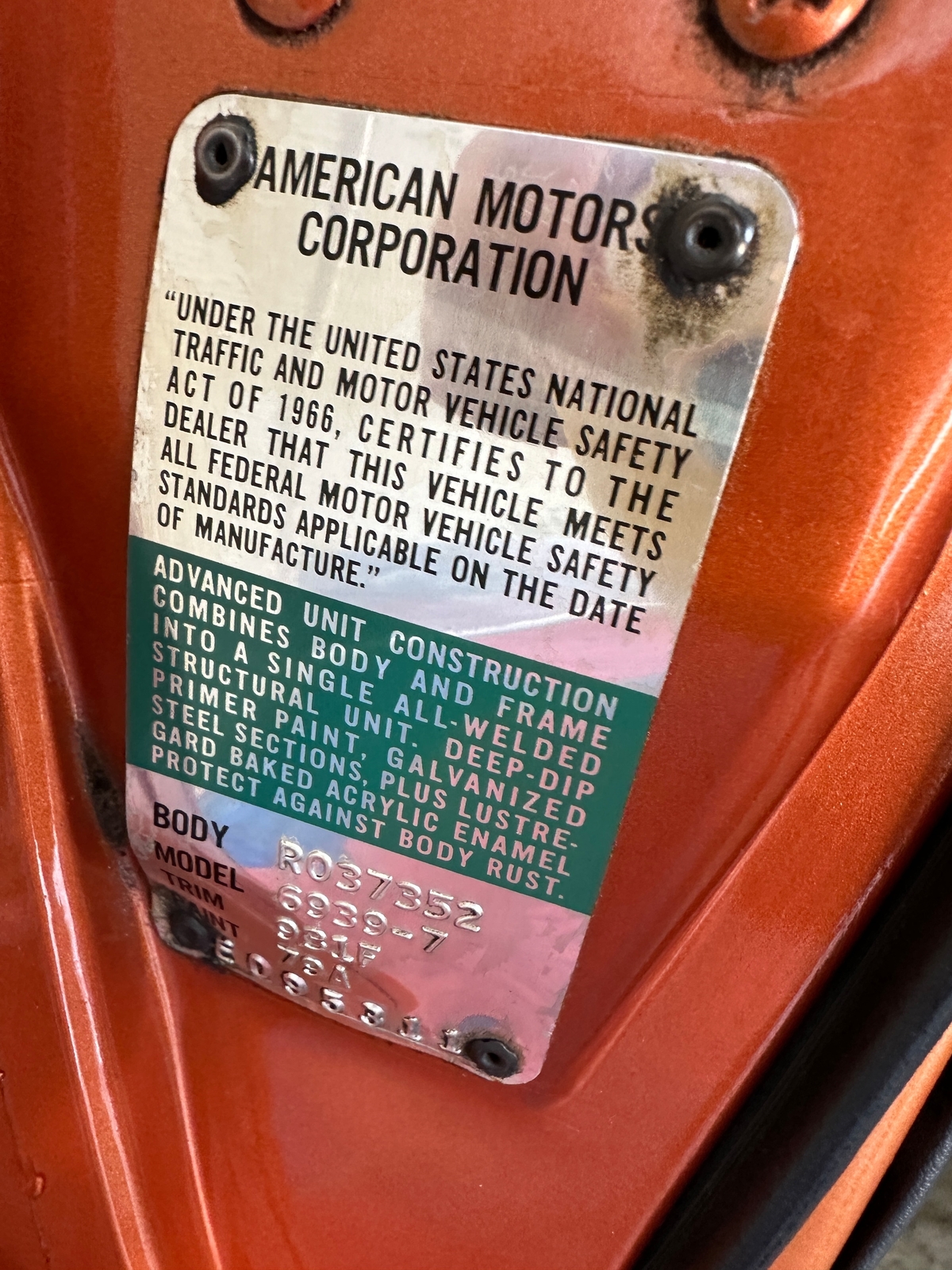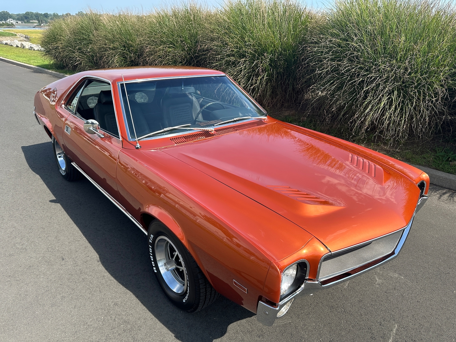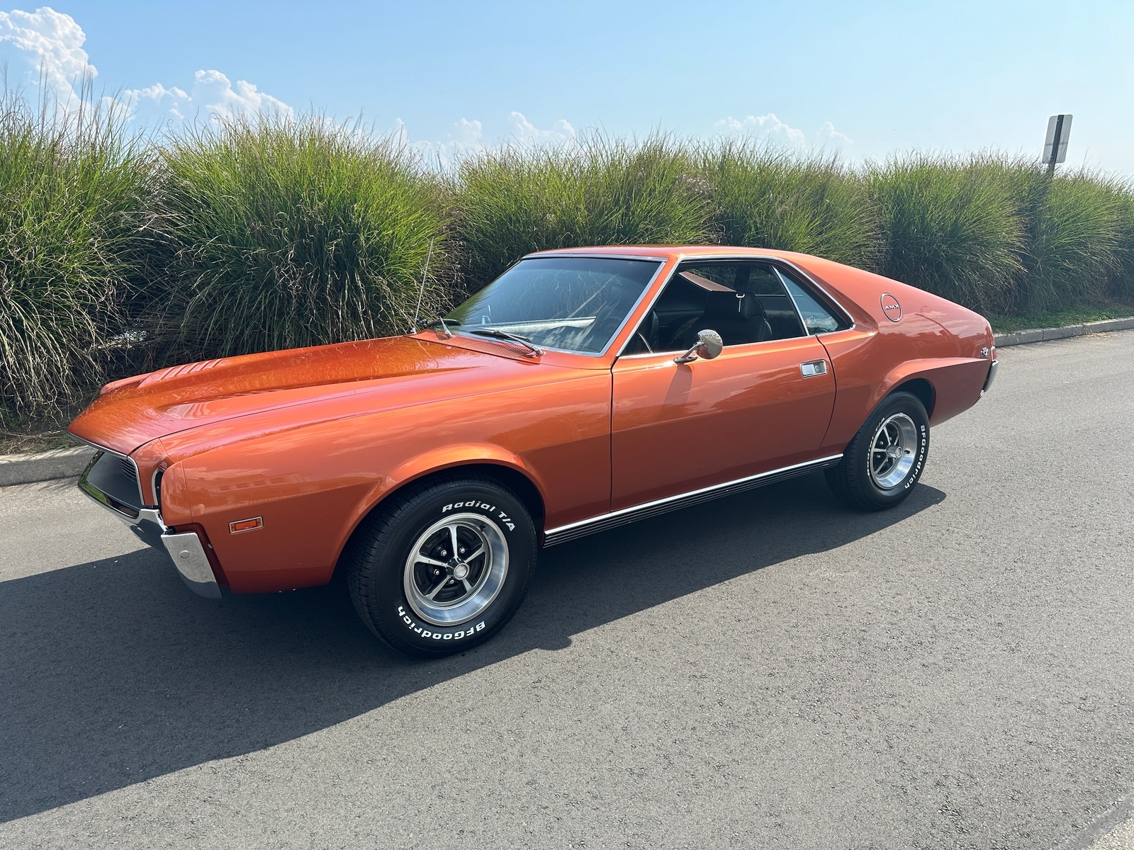 1969 AMC AMX 390 COUPE 390CI/315 HP 4/SPEED ONLY 3620 MADE YEAR: 1969 MAKE: AMC MODEL: AMX BODY: COUPE COLOR: BITTERSWEET ORANGE TRIM: CHARCOAL VINYL ENGINE: 390CI /315HP V8 TRANS: 4/SPEED REAR: 3:54 TO 1 SAFE-T-TRACK MILES: 75,209 SERIAL#: A9M397X287330 OPTIONS AMX *390 4BBL V8 *4/SPEED *POWER STEERING *POWER BRAKES *RALLY WHEELS *AM RADIO *BUCKET SEATS *ADDED CONSOLE *W/L RADIAL TIRES* RALLY GAUGES AND TACH SERIAL#BREAKDOWN A-AMC 9-1969 M-4/SPEED 3-AMX 97-HARDTOP X-390 2V V8 2887330- SEQ# DOOR TAG BODY: R037352-BODY # MODEL: 6939-7-AMX TRIM 931- BUCKET CHARCOAL PAINT: 79A-BITTERSWEET ORANGE DRIVELINE #S ENGINE: 204W30 TRANS: D969 T10-IB Q2 D9/69 REAR: PF 370 POSITRACTION HISTORY / COMMENTS THIS REAL DEAL 390 4/SPEED AMX IS A 3-OWNER CAR. THE CAR WAS REPAINTED WITHIN THE LAST 2 YEARS. STRAIGHT BODY LINE. SOLID UNDER BODY WITH NO RUST ISSUES. ONLY ADDED A FLOOR CONSOLE. BRAND NEW BRAKES. BRAND NEW WHEEL CYLINDERS AND BRAND NEW BF GOODRICH W/L TIRES JUST DONE LAST MONTH. CAR RUNS AND PERFORMS LIKE NEW. ONLY 3620 PRODUCED.ORIGINAL OWNERS MANUAL AND WARRANTY BOOK.