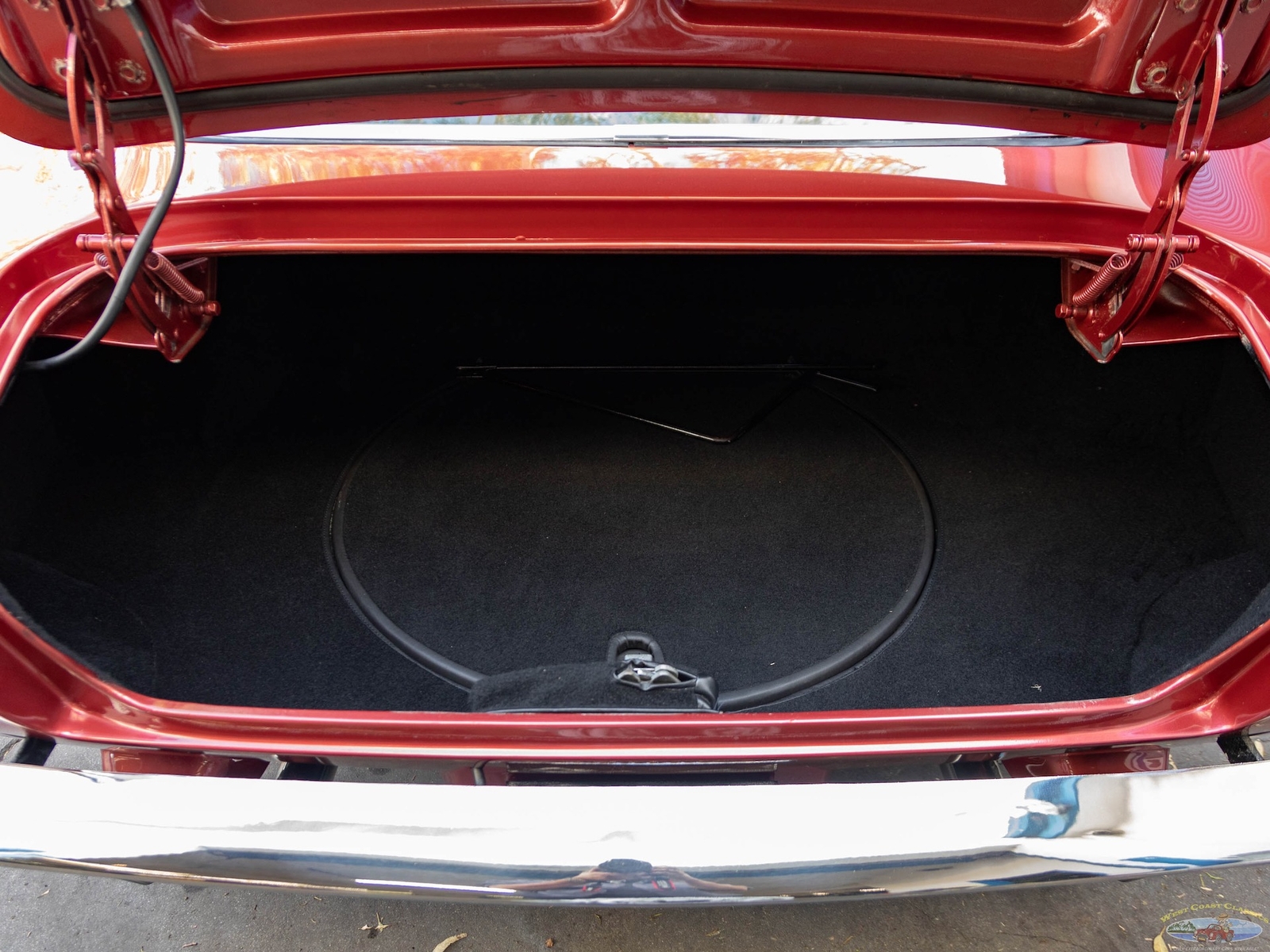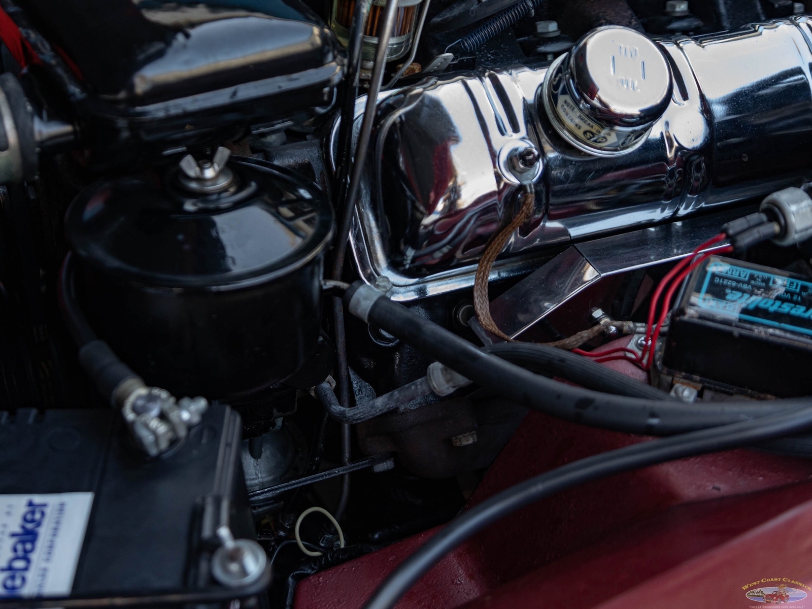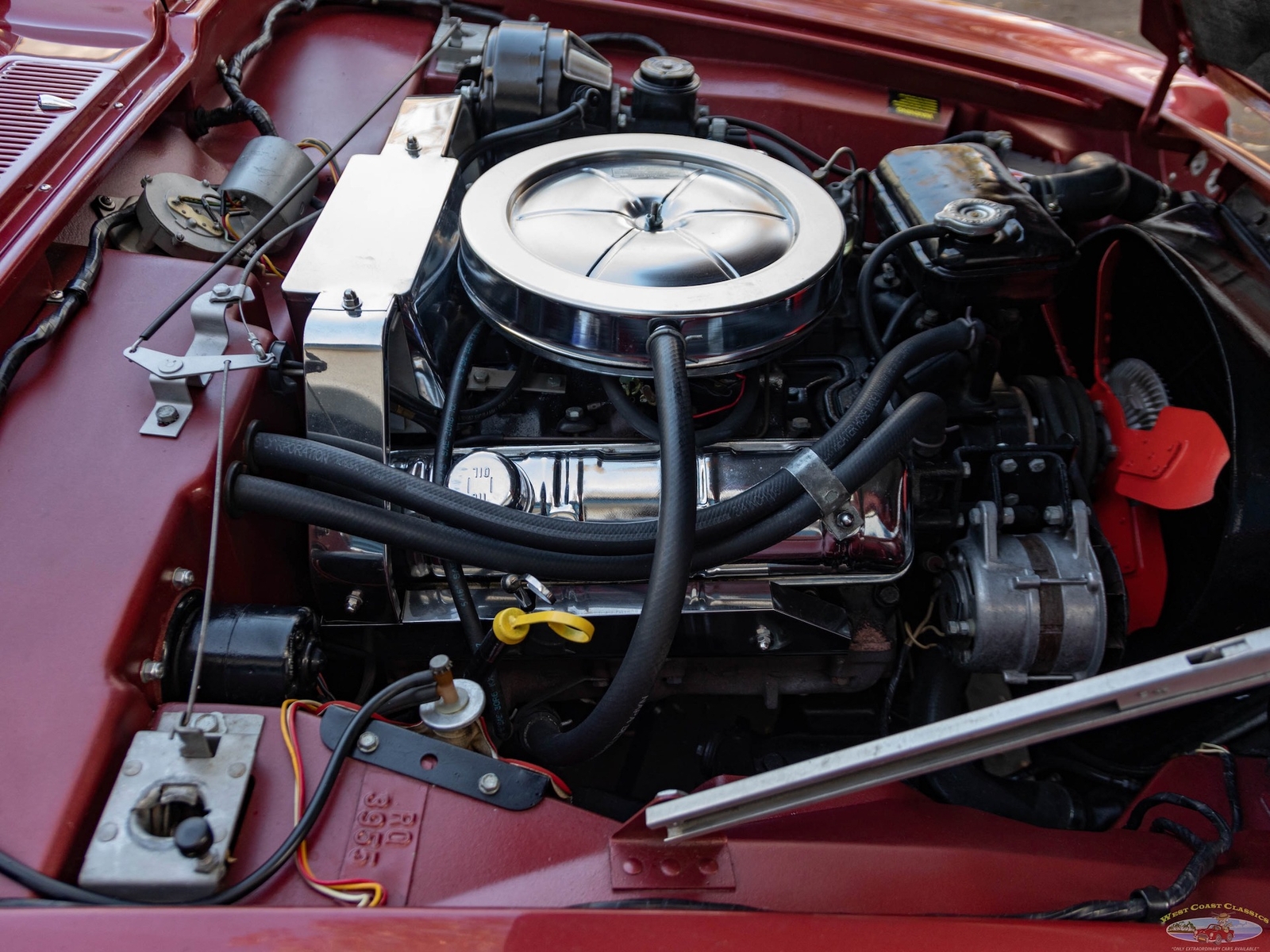The car was owned by its second owner from 1970 - 2017 and the third owner restored the car as required with all new paint, reupholstered front seats, new water pump, rebuilt starter and alternator, new brakes, new valve cover gaskets, complete tune up, new Halibrand wheels, new Firestone classic Wide Oval radial tires, new trunk liner, all new exhaust syste, new battery and new original style spare wheel. All the original tire tools are in the trunk.
