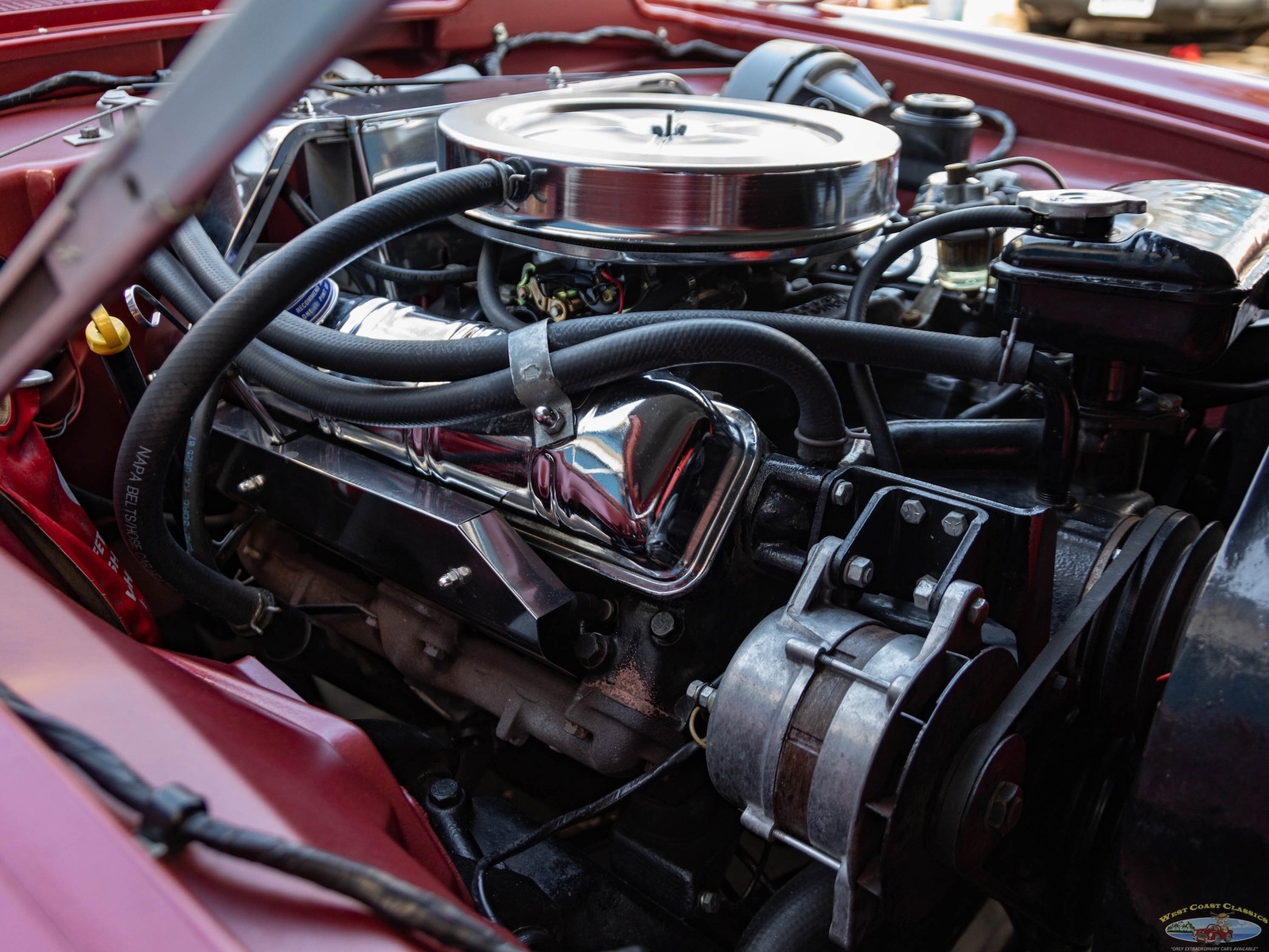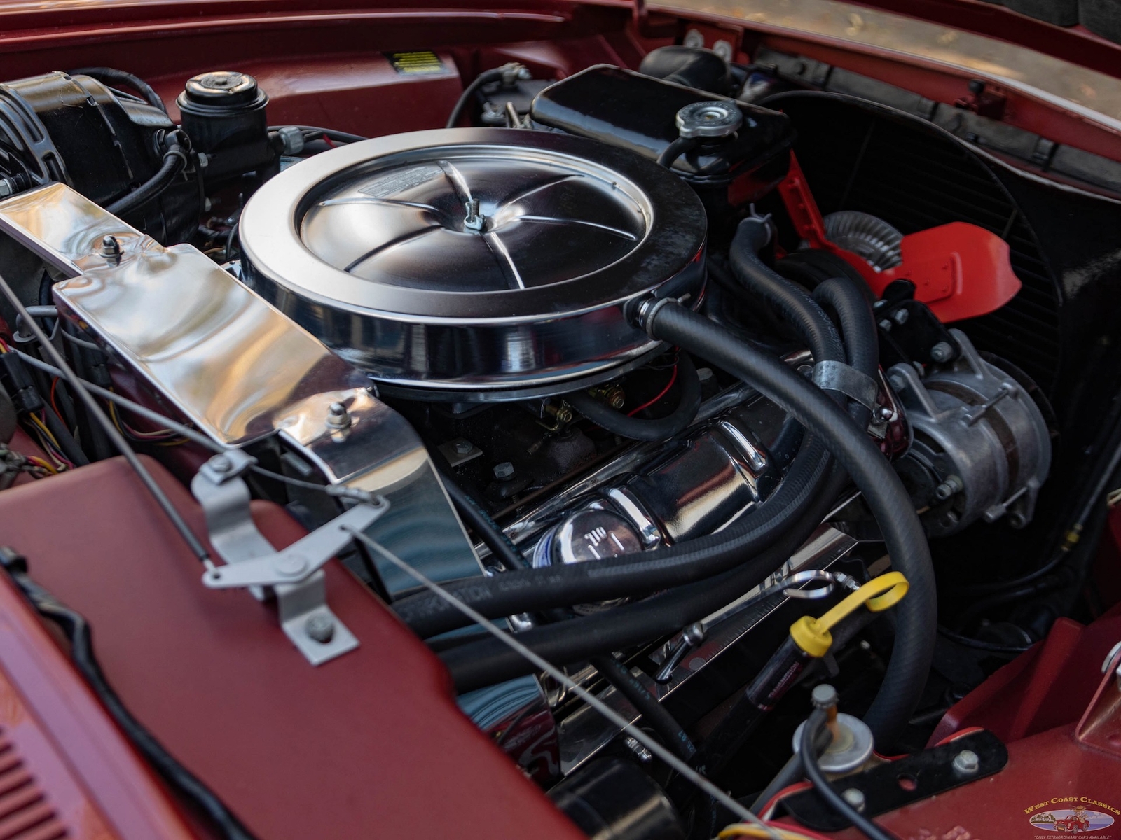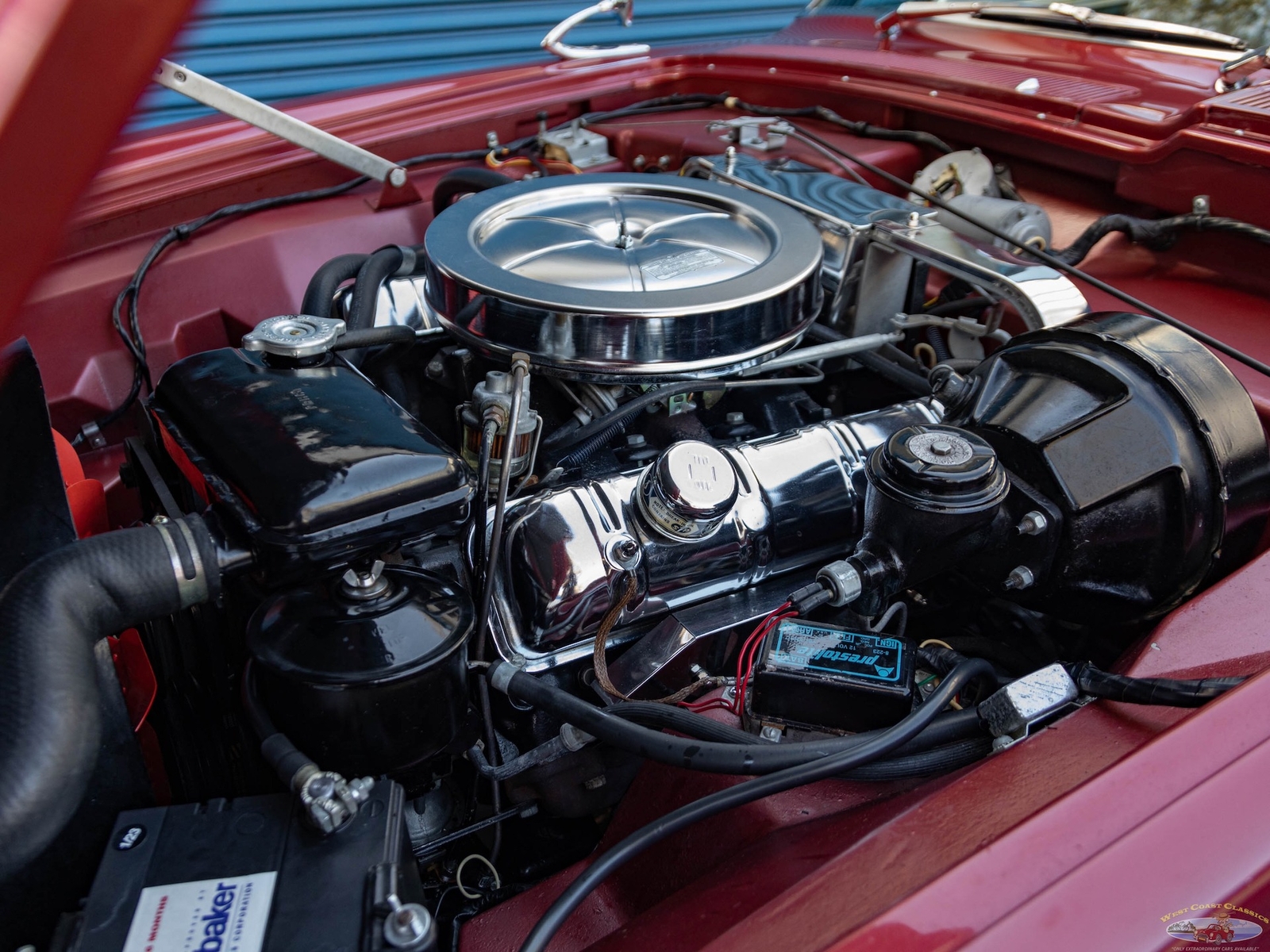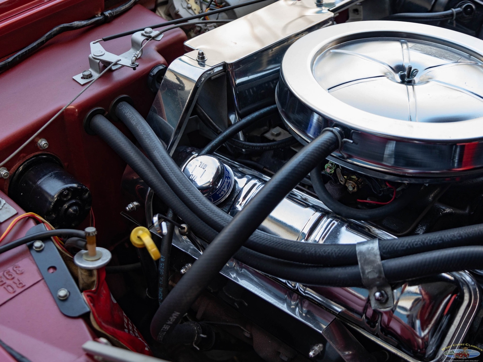 The car was owned by its second owner from 1970 - 2017 and the third owner restored the car as required with all new paint, reupholstered front seats, new water pump, rebuilt starter and alternator, new brakes, new valve cover gaskets, complete tune up, new Halibrand wheels, new Firestone classic Wide Oval radial tires, new trunk liner, all new exhaust syste, new battery and new original style spare wheel. All the original tire tools are in the trunk.