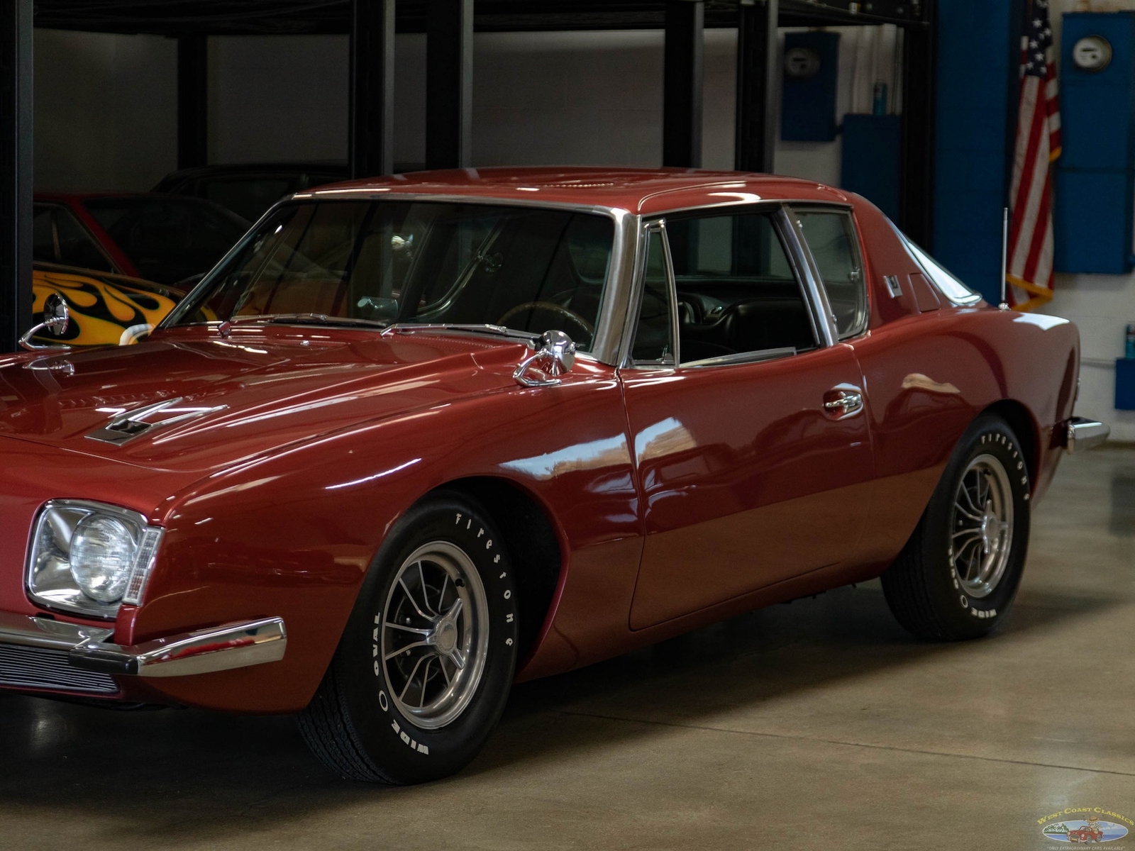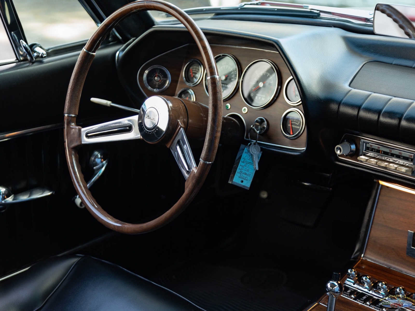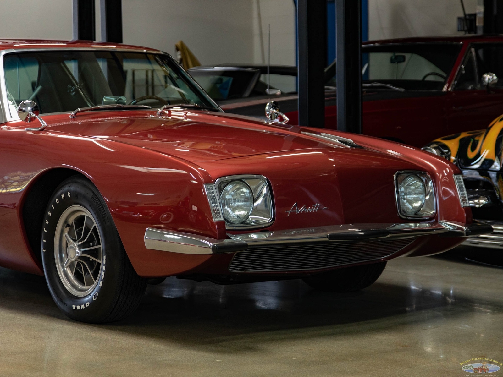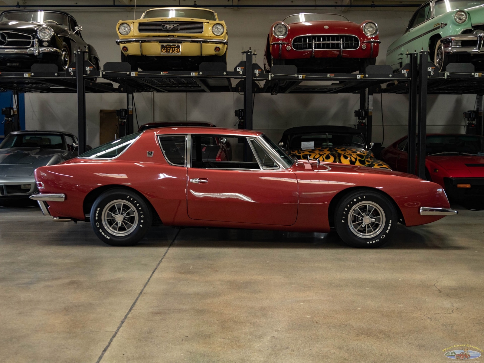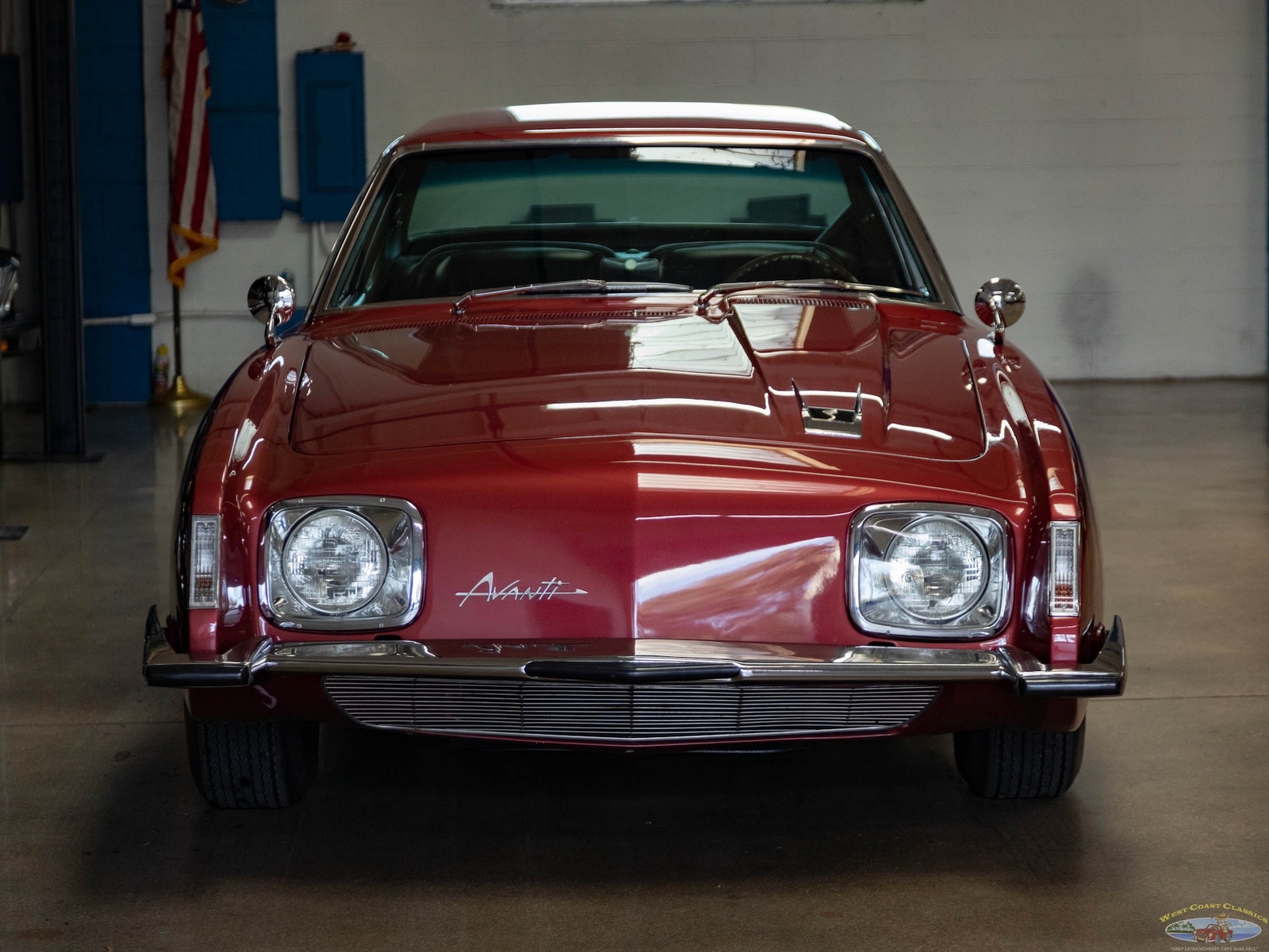 The 1963-64 Studebaker Avanti was amongst the most daring of 1960's American cars, a modern masterpiece which still seems contemporary today! Built with modern safety features such as a built in roll bar, padded interior and door latches that became structural body members when closed! A supercharged 289 V8 made the car one of the fastest cars built in its day with a top speed of over 168mph - a staggeringly fast speed for a production street car! Some 29 Bonneville speed records were set by a supercharged Avanti. This was also the first major fiberglass body four passenger car and also the first such car to use caliper style disc brakes and anti-sway bars front and rear. With only 3,834 models built in 1963 and even less, 809 in 1964, this car was to prove an instant collectible and has since reached certified 'Milestone Status'. Distinctive features abound such as a grille-less front end, asymmetrically placed hood bulge, shaped windows with large glass areas, a short rounded tail end, aircraft-like cockpit instrumentation and controls, slim section bucket seats and a padded roll bar.