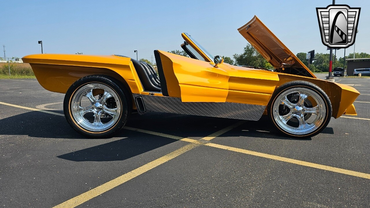 -Sunrise Pearl Exterior, Custom Steel Bodywork, Black Leather & Cloth Upholstery, Corbeau Bucket Seats, Nardi Steering Wheel, Studebaker Gauges, Studebaker Cowl, Studebaker Door Frames & Windshield, '60 Pontiac Nose Section & Door Skins, '59 Thunderbird Hood, '67 Toronado Headlight Door