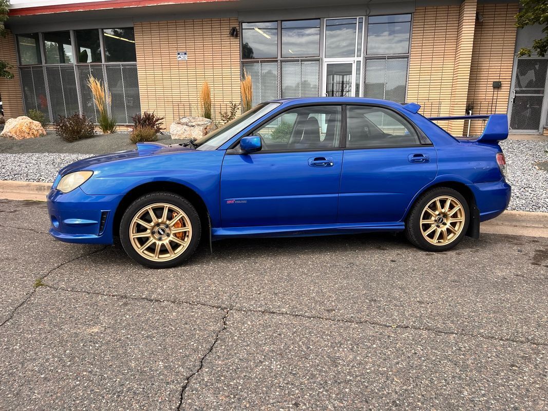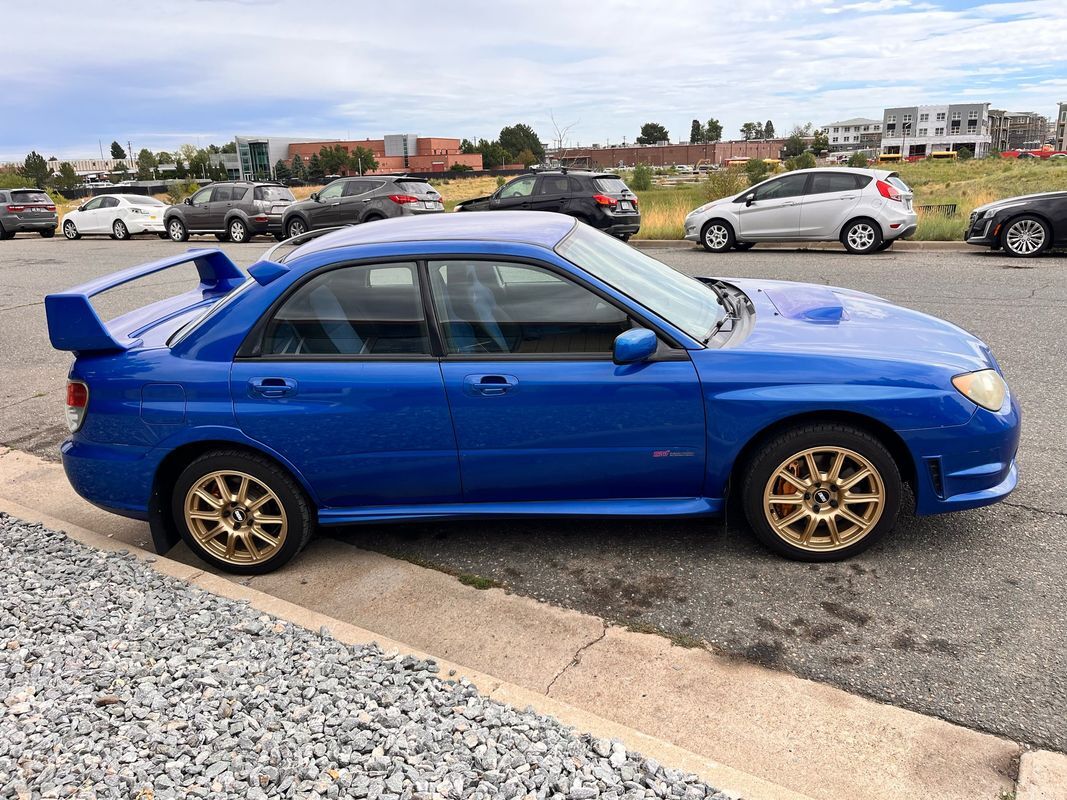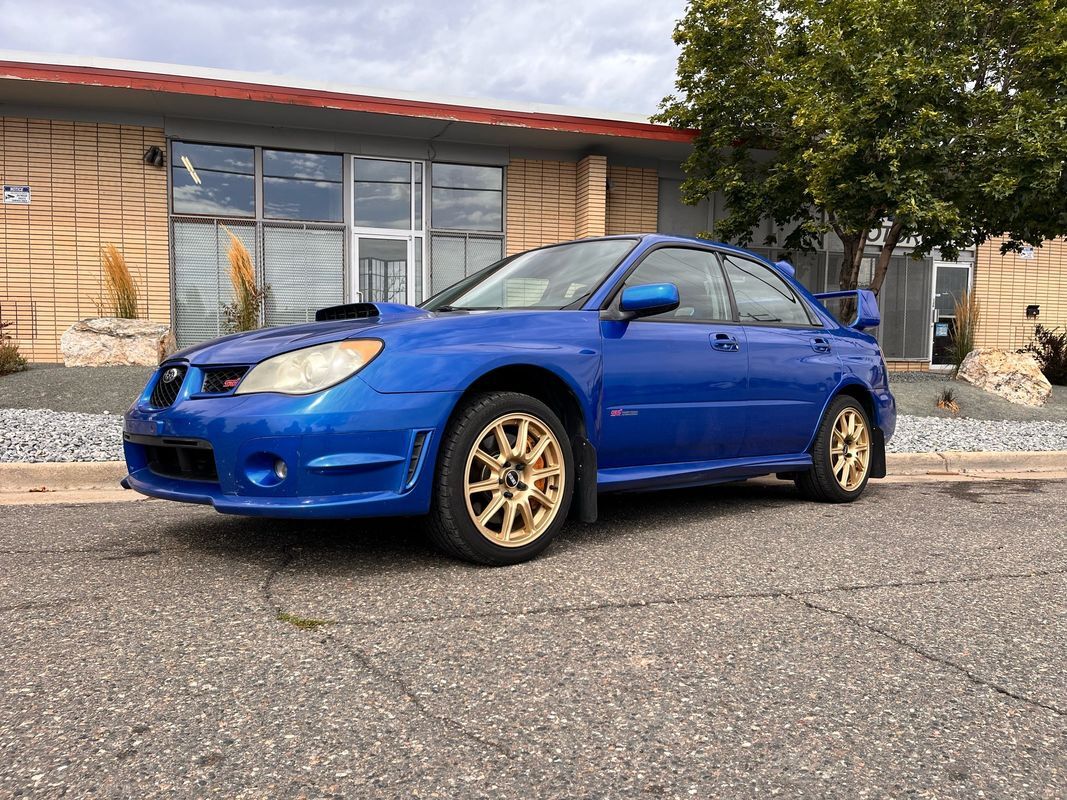 If youve been looking, you know how hard it is to find a close to stock WRX STi and that is exactly what we have here today. 2006 Subaru WRX STi with 168,000 but do not let that hold you back from checking out this very hard to find WRX. this WRX is finished in the most popular of all colors, the blue over the two-tone blue and black suede seats. From maintenance the timing belt and water pump were done at 164,000 miles and the clutch was replaced at 115k miles and is in very good running condition. Past Colorado inspection with no problem as it still has its catalytic converters. Has an updated audio system, but will also come with the factory deck. Has a tune and I also have the Cobb access port that will come with the car. These cars are on a consistent uphill in value as one recently sold for over $50,000 with lower miles. Call Weisco cars for additional information or to schedule an appointment time to view the vehicle in person.