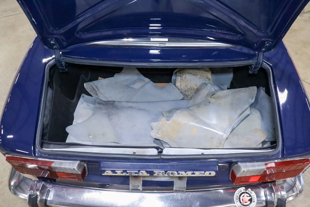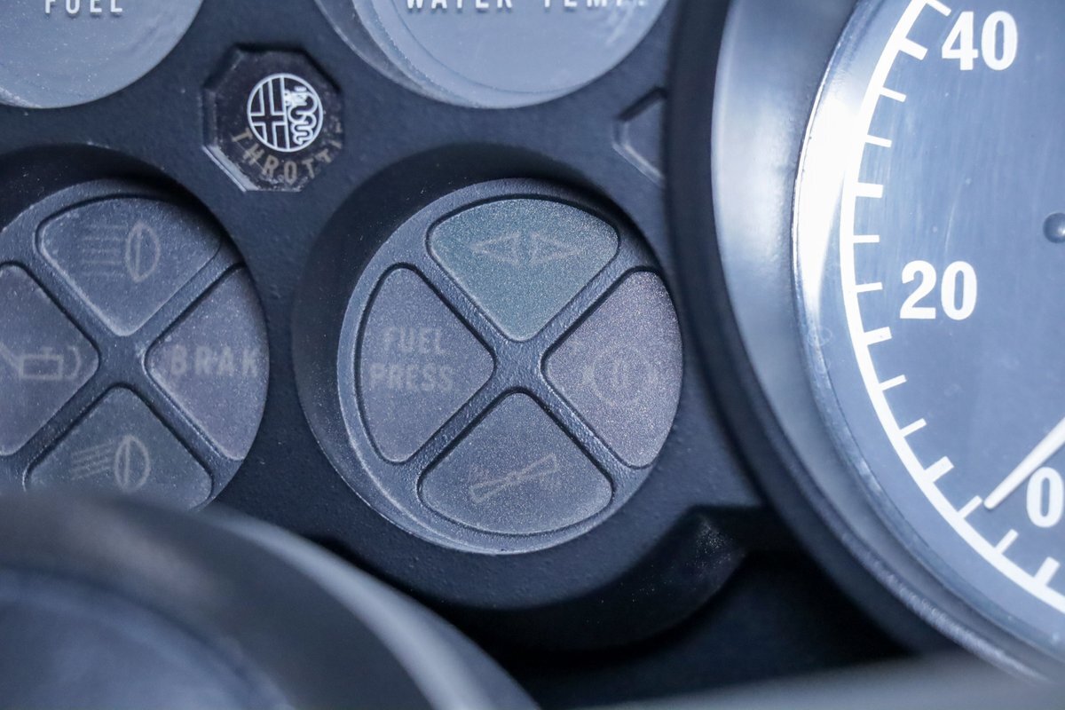 Inside the front bucket seats and rear bench were fitted with new seat covers from Classic Alfa, new square weave carpet kit, refinished Personal wood steering wheel, wood trim preserved, gauges properly working and nice trim pieces. Dash is in excellent condition along with door panels and manual crank windows and pop out vented rear side windows.