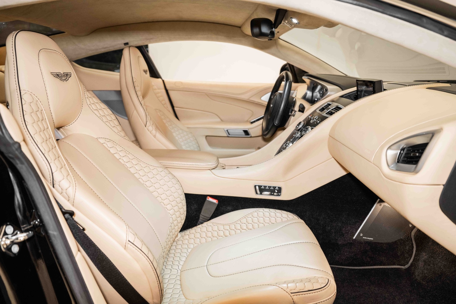 This Aston Martin has 47163 miles and comes in a Jet Black on Winter Wheat color combination.