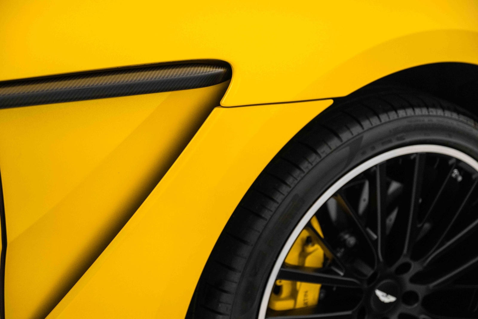 This Aston Martin has 35 miles and comes in a Satin Ultra Yellow Full Body Wrap on All Black Metallic color combination.