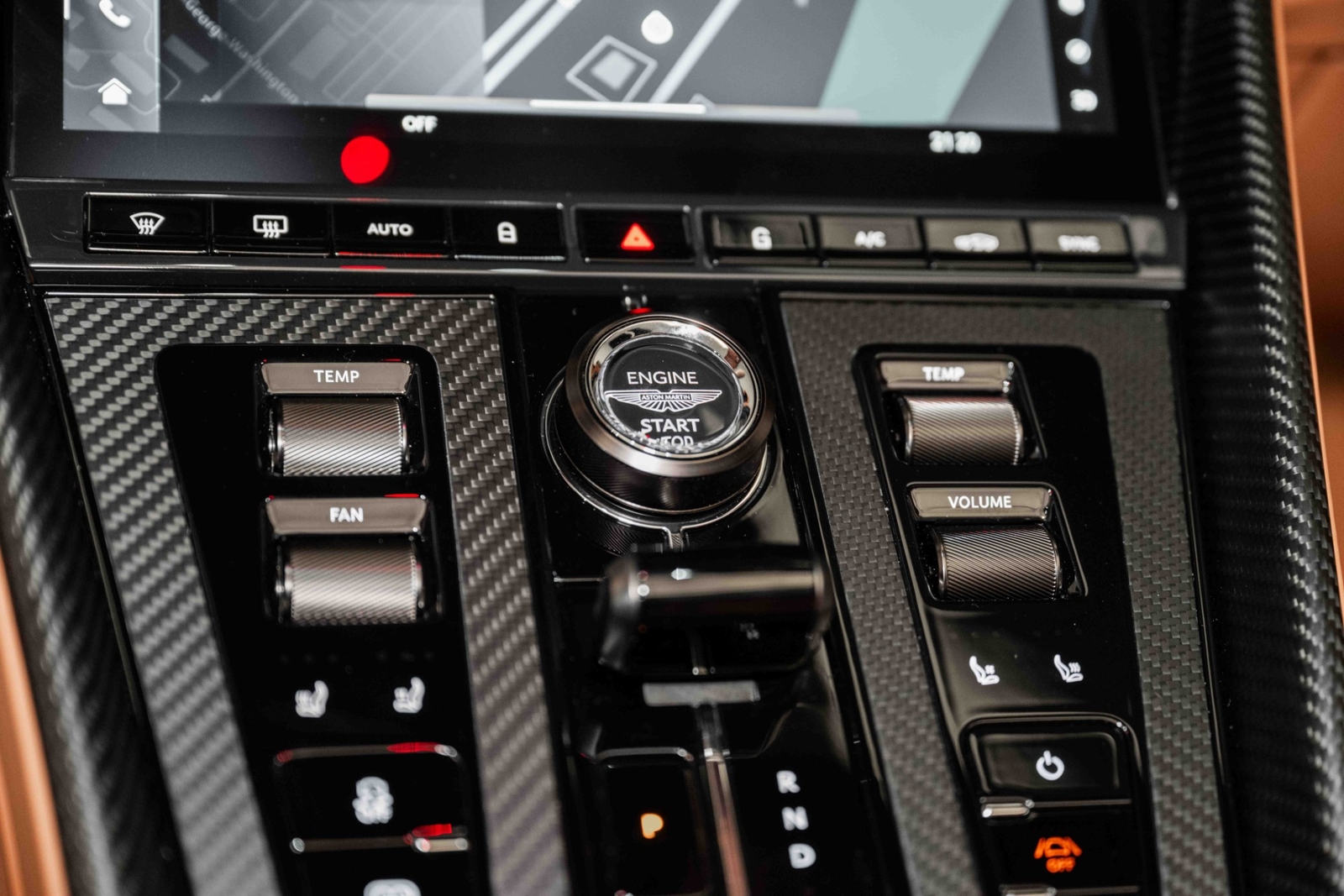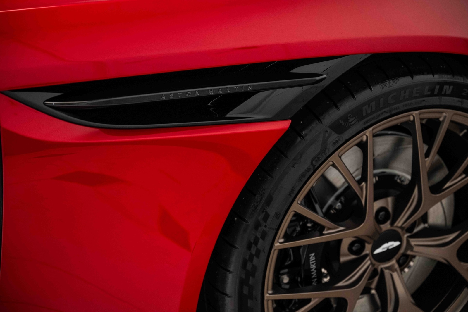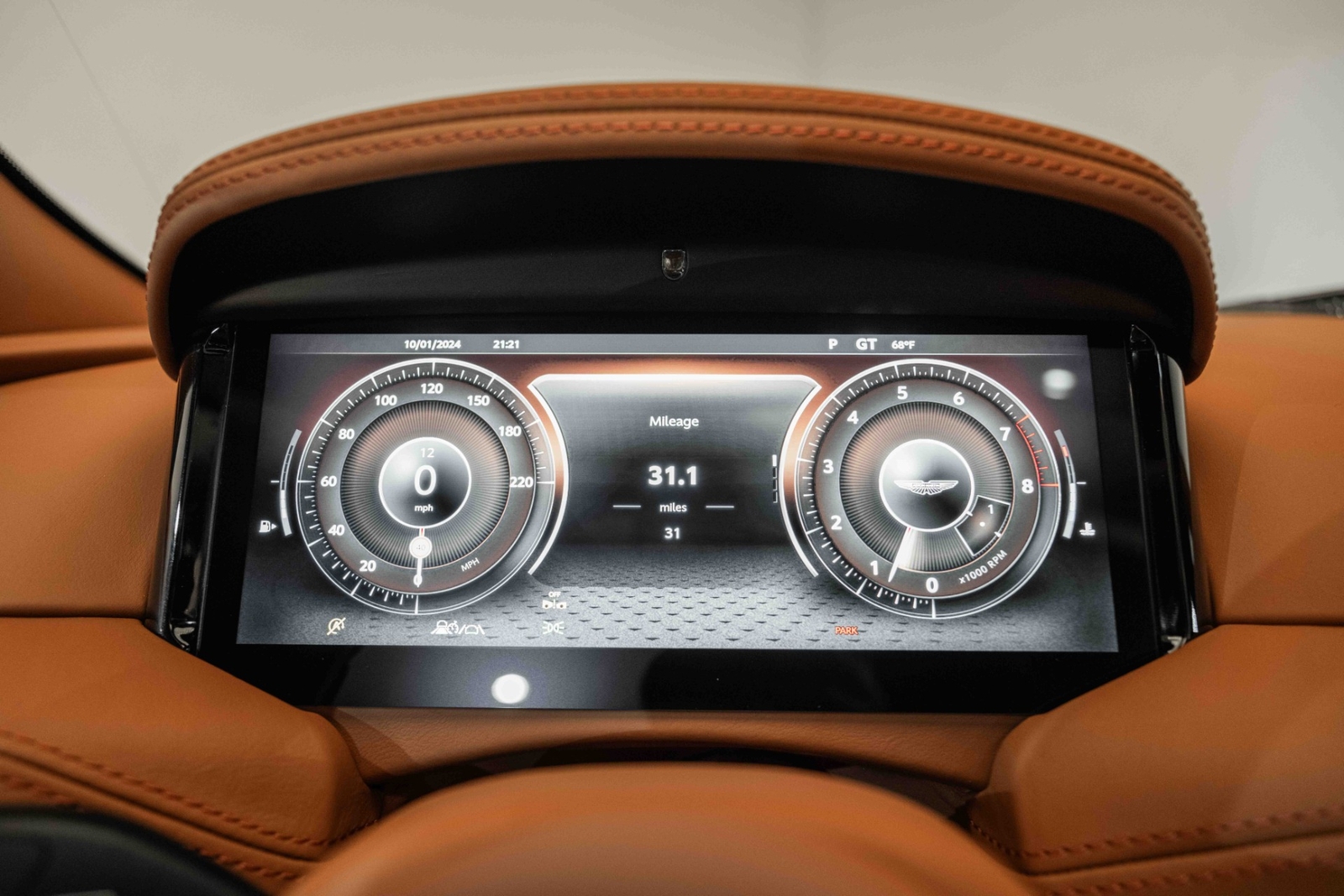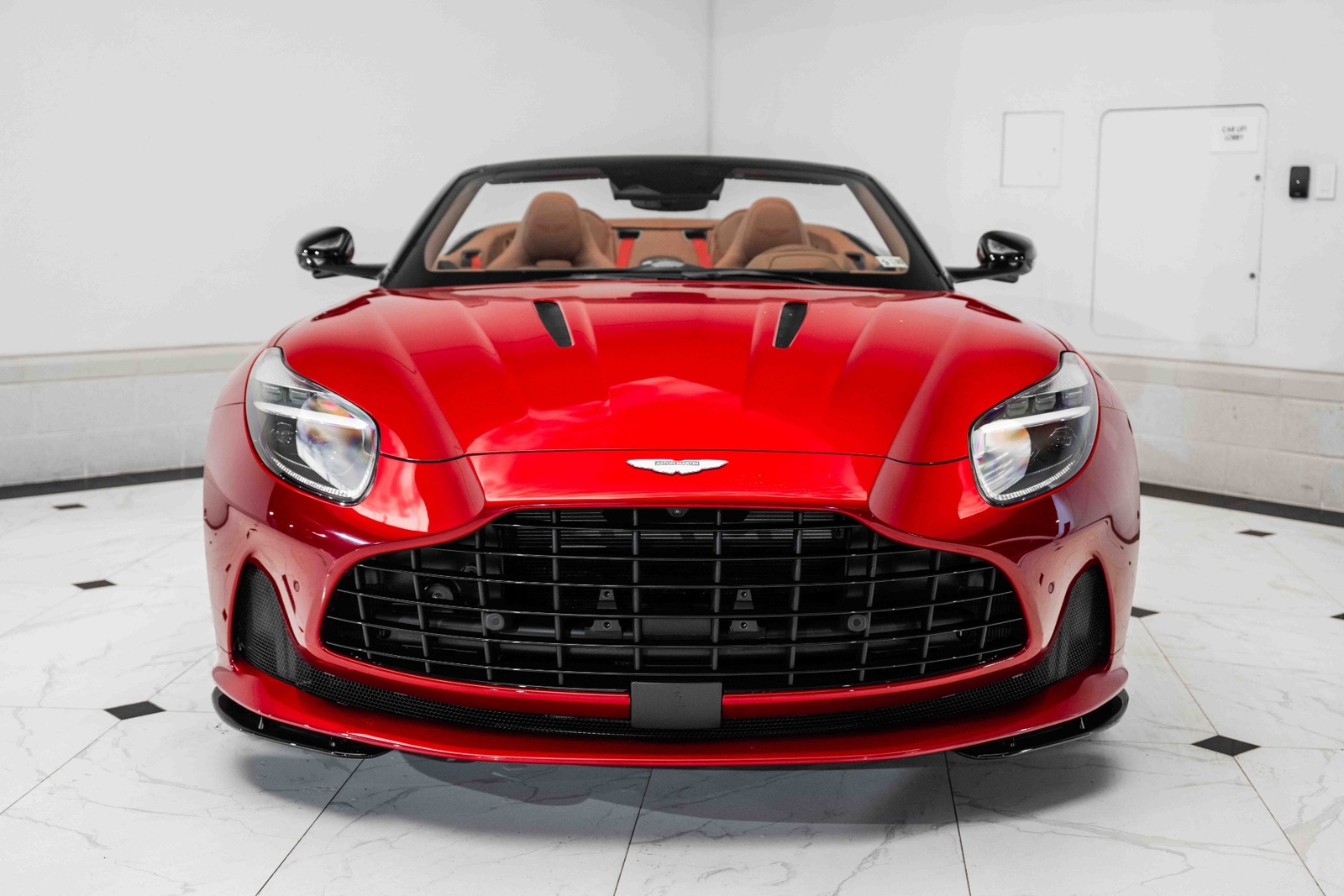 This 2025 Aston Martin DB12 Volante has 35 miles and comes in a Supernova Red on All Centenary Saddle Tan color combination.