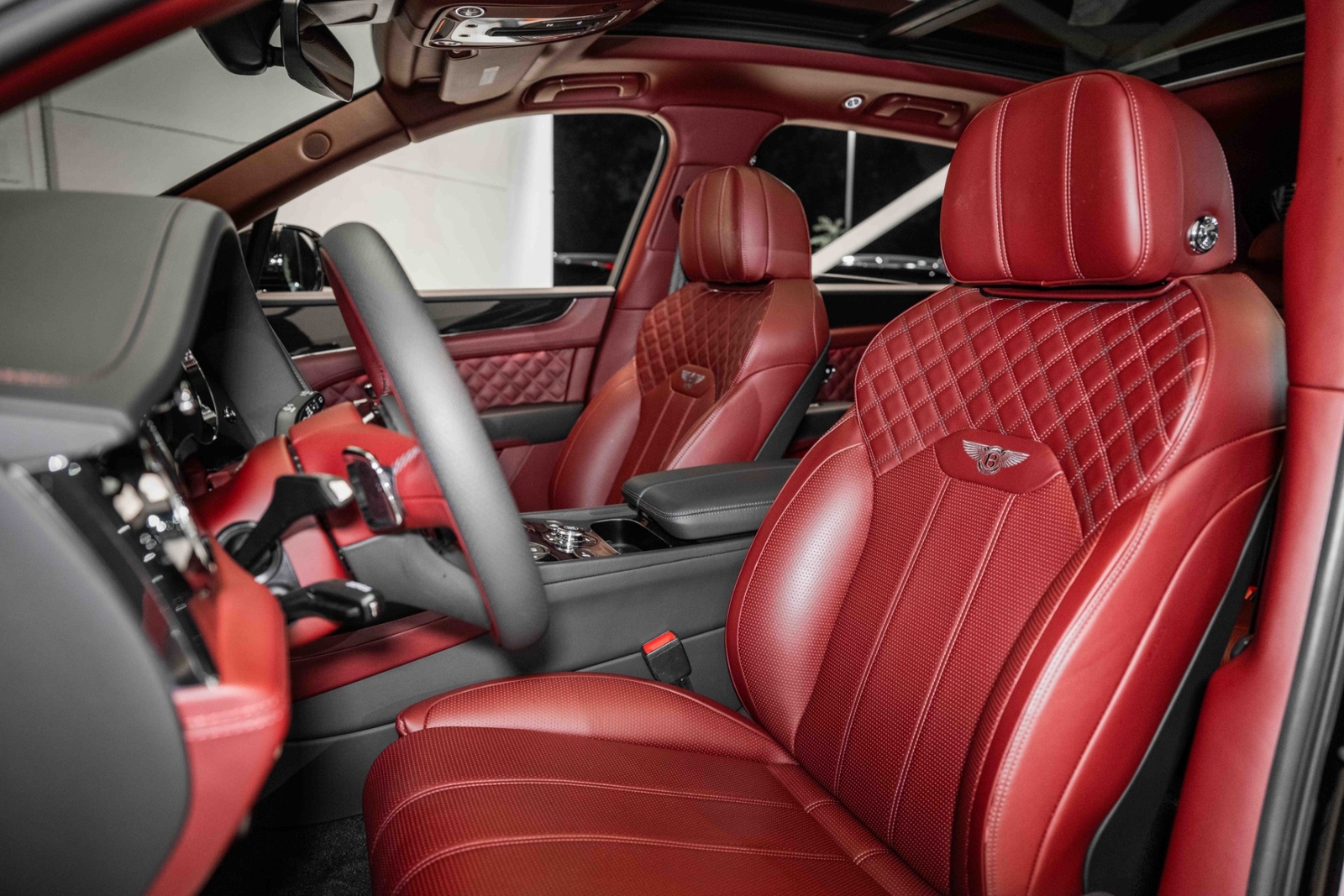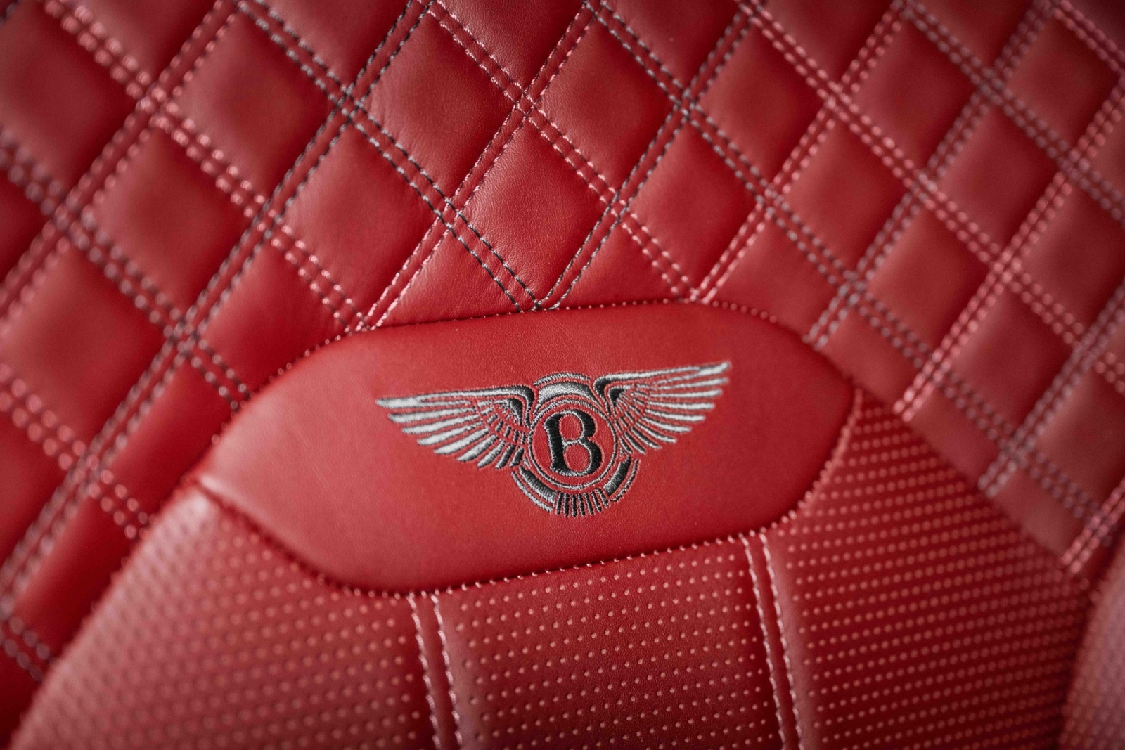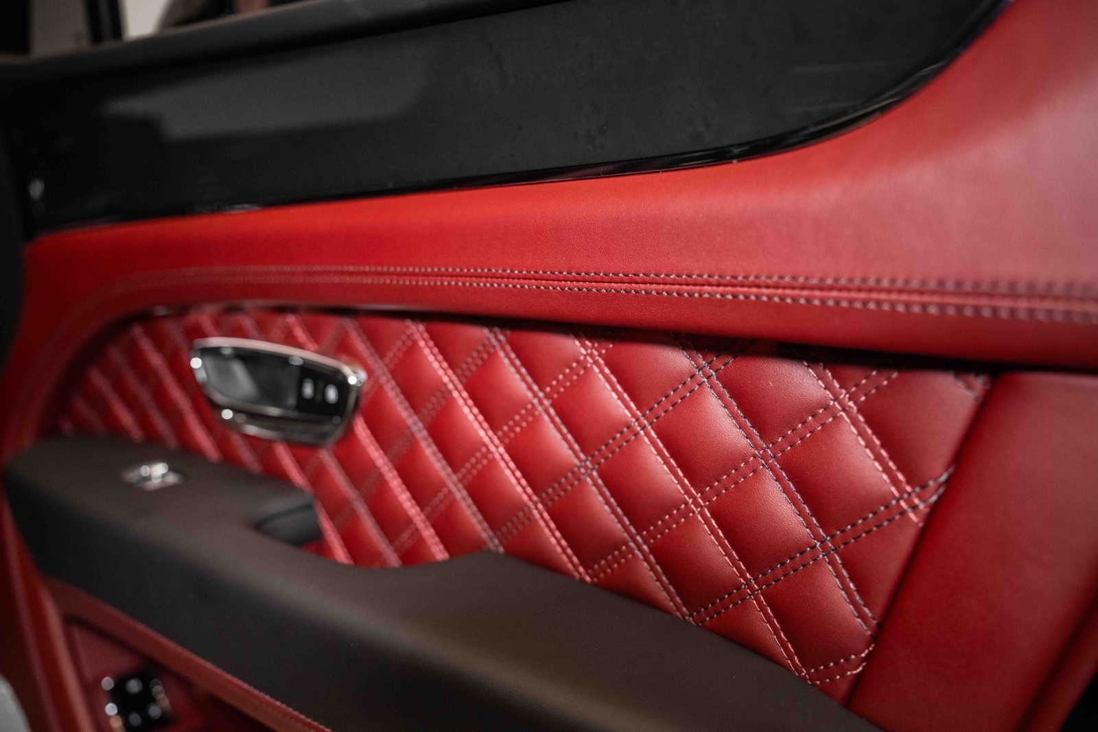 This Bentley has 8422 miles and comes in a Beluga on Cricket Ball.