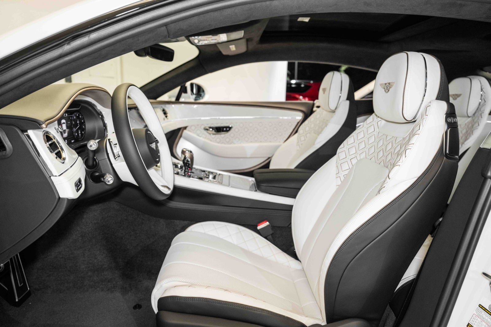This 2024 Bentley Continental GT S V8 has 35 miles and comes in a Snow Quartz Pearlescent on Mulliner White color combination.