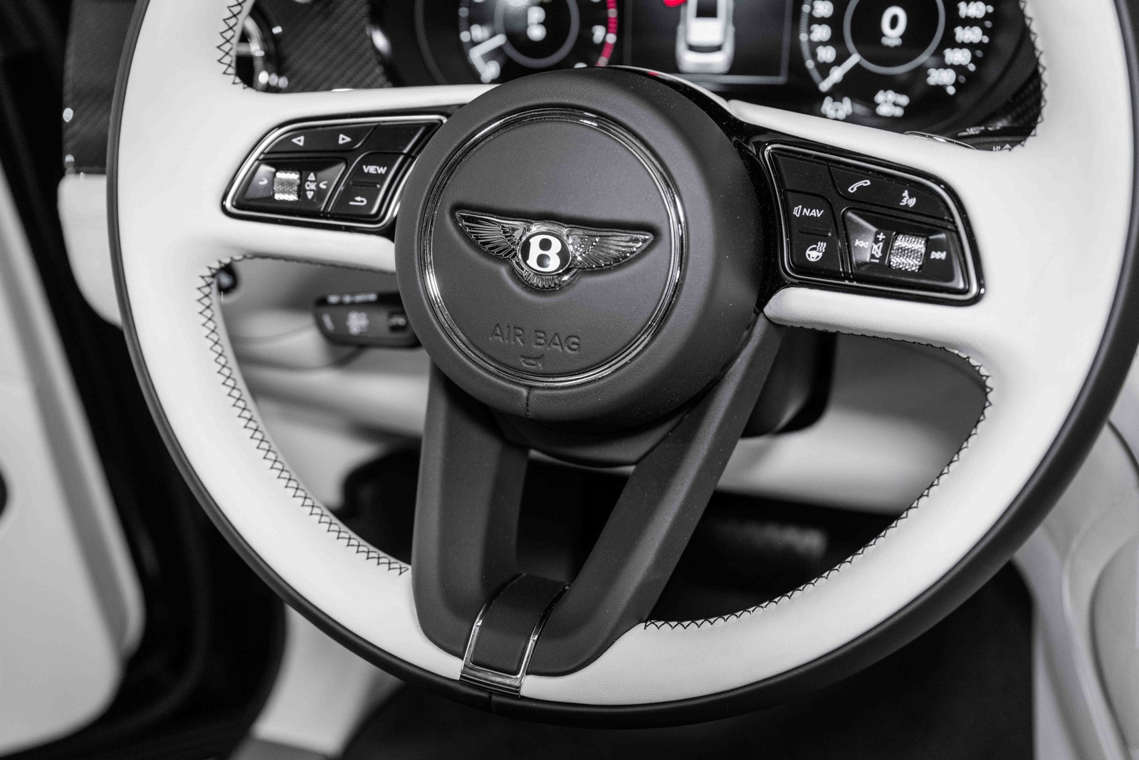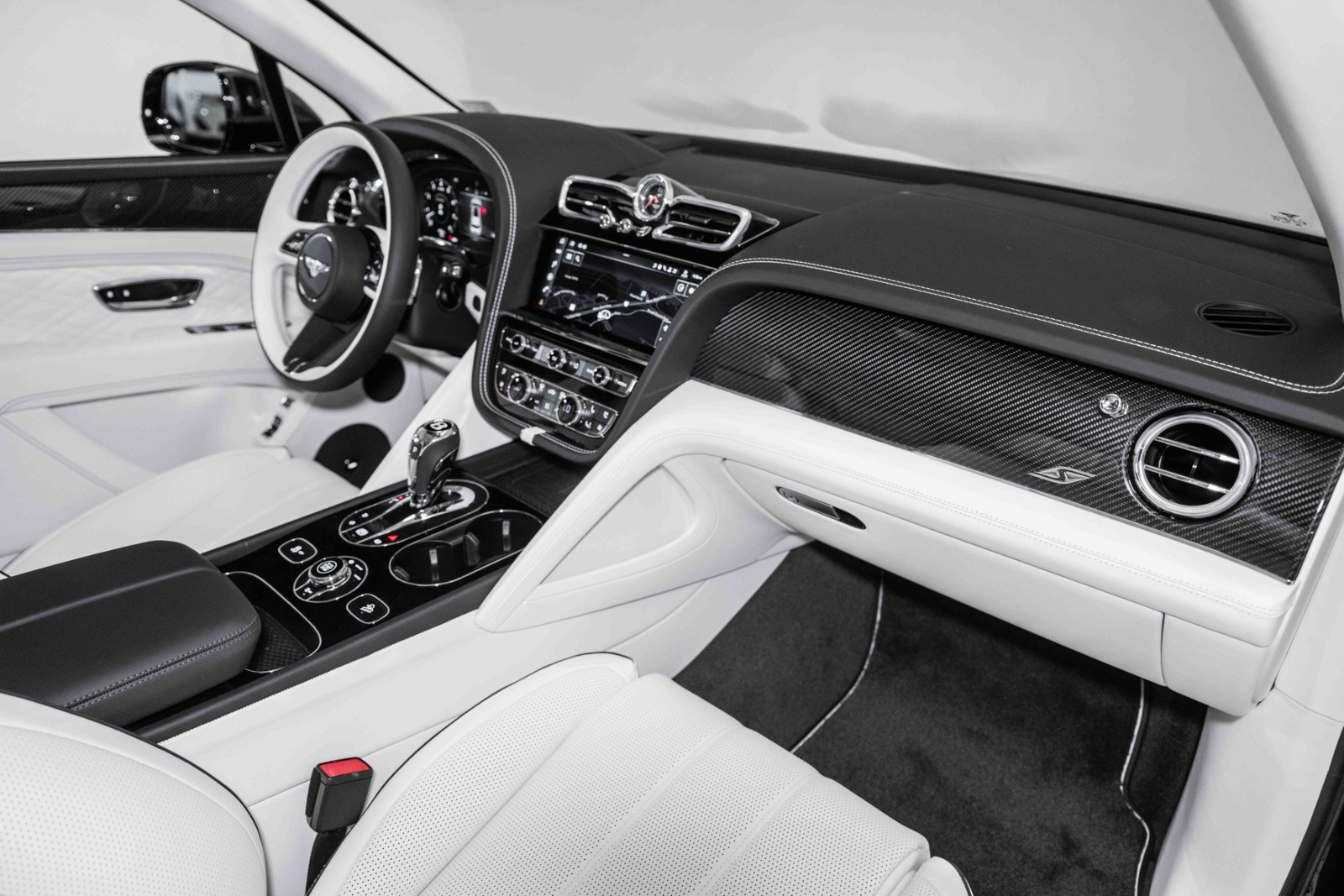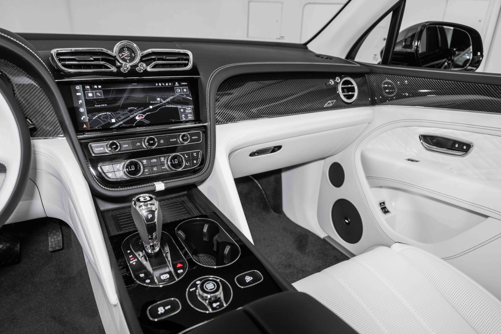 This 2024 Bentley Bentayga S V8 has 35 miles and comes in a Black Crystal Metallic on Mulliner White color combination.