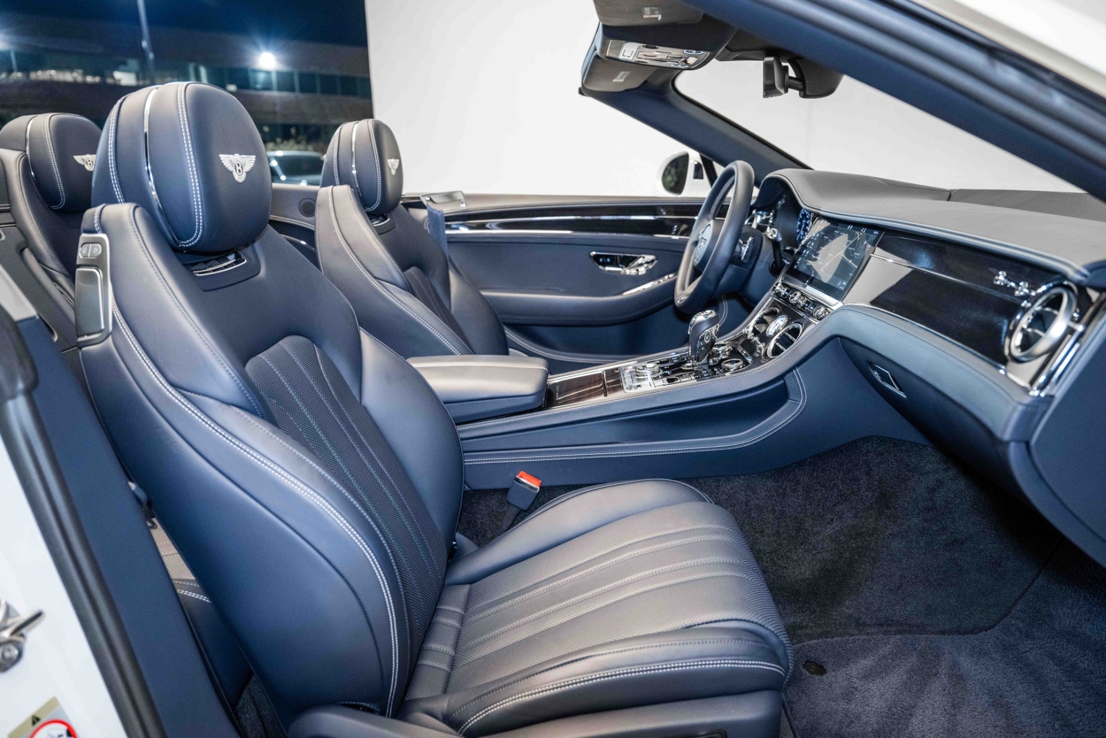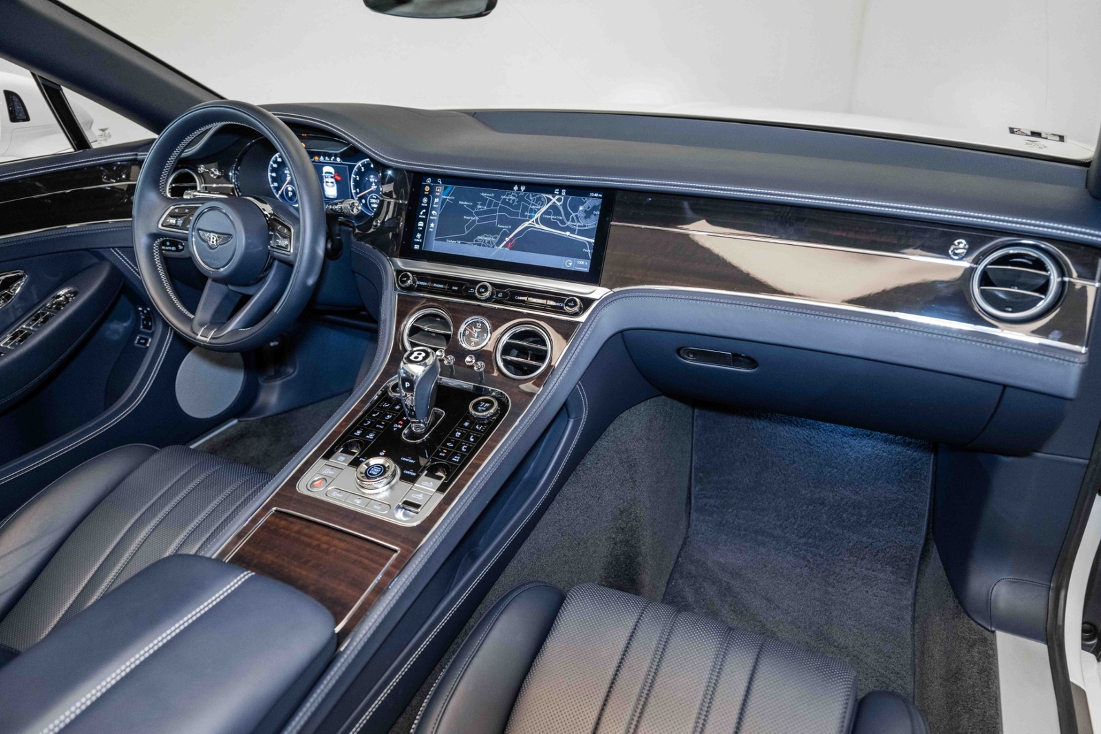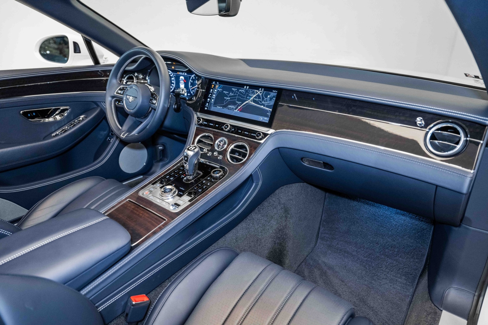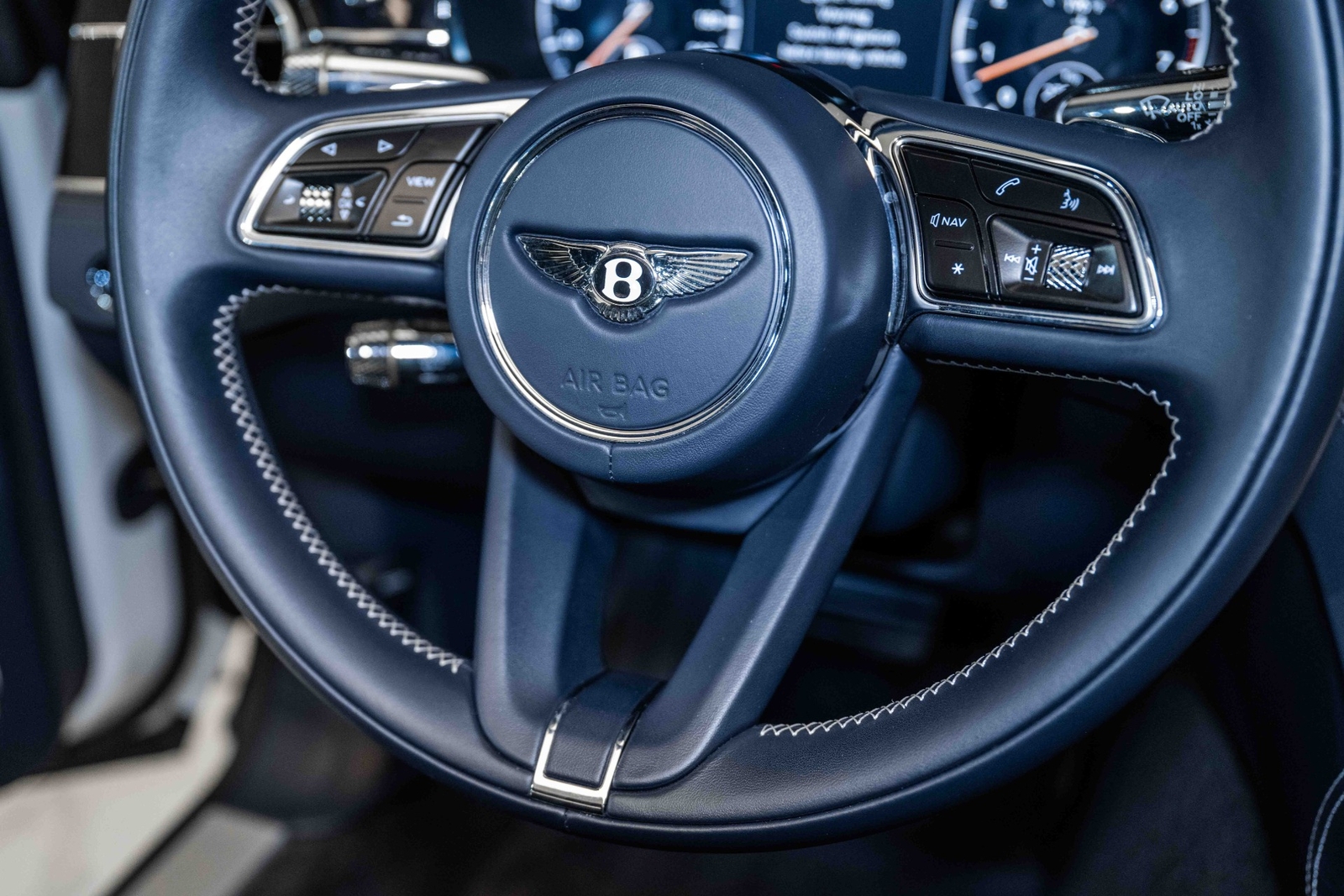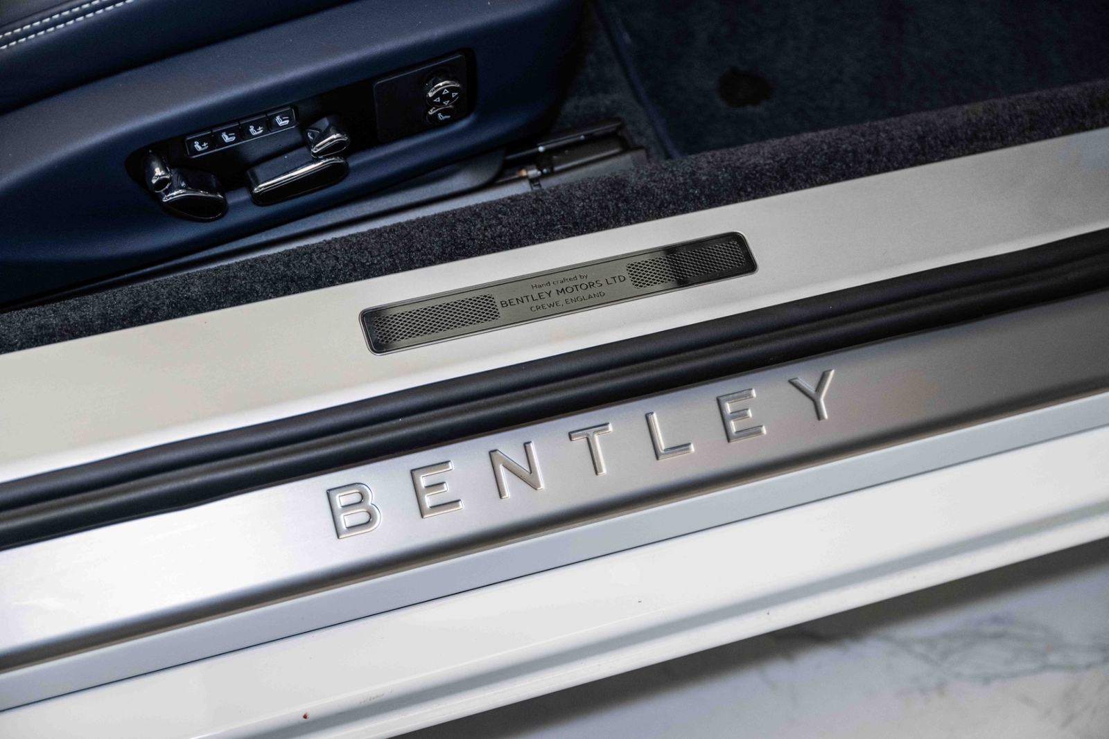 This Bentley has 14927 miles and comes in a Glacier White on Imperial Blue color combination.
