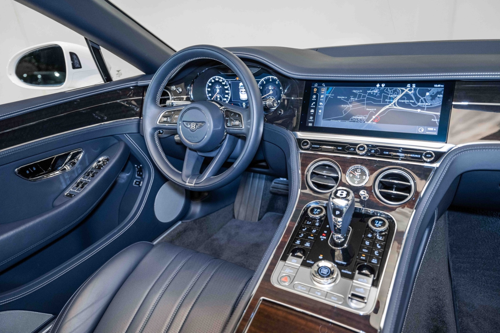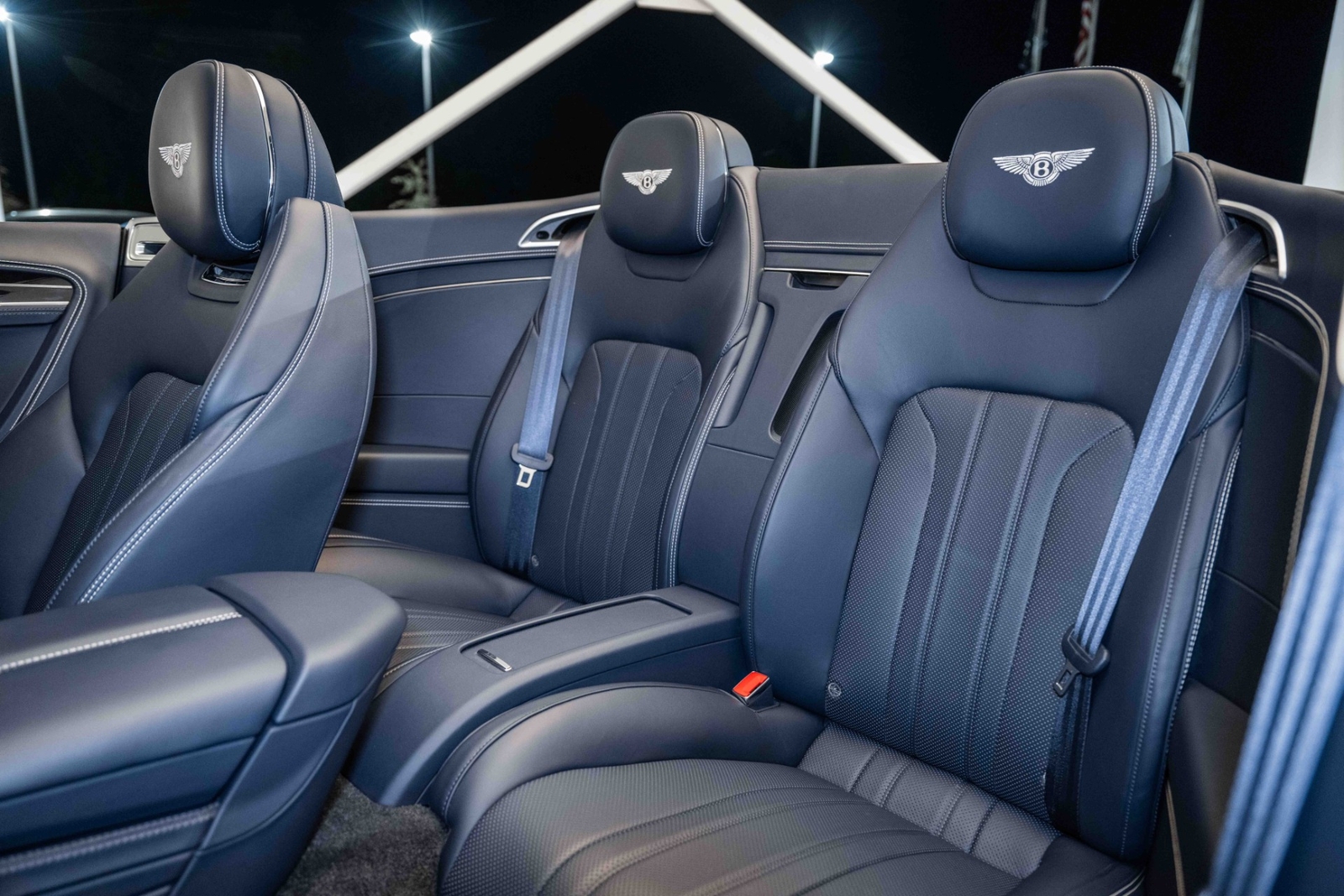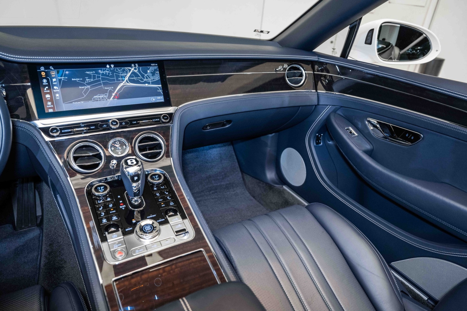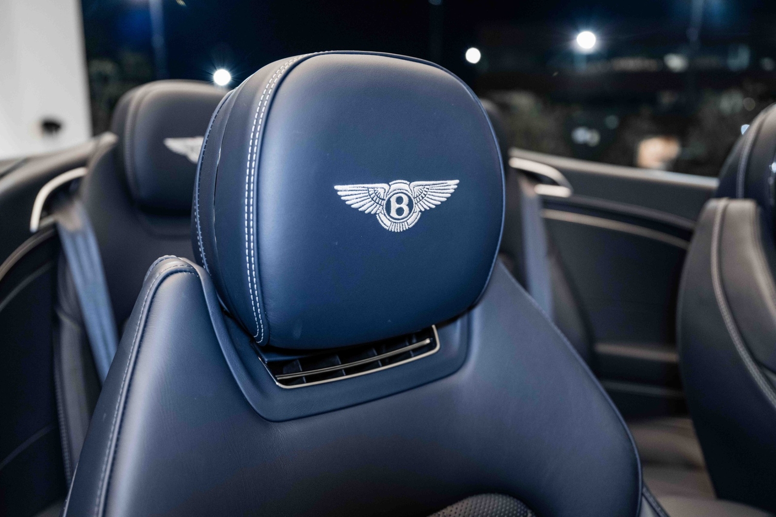 This Bentley has 14927 miles and comes in a Glacier White on Imperial Blue color combination.
