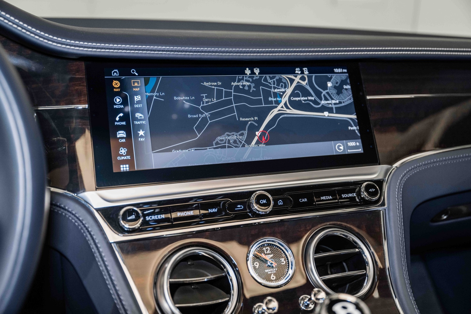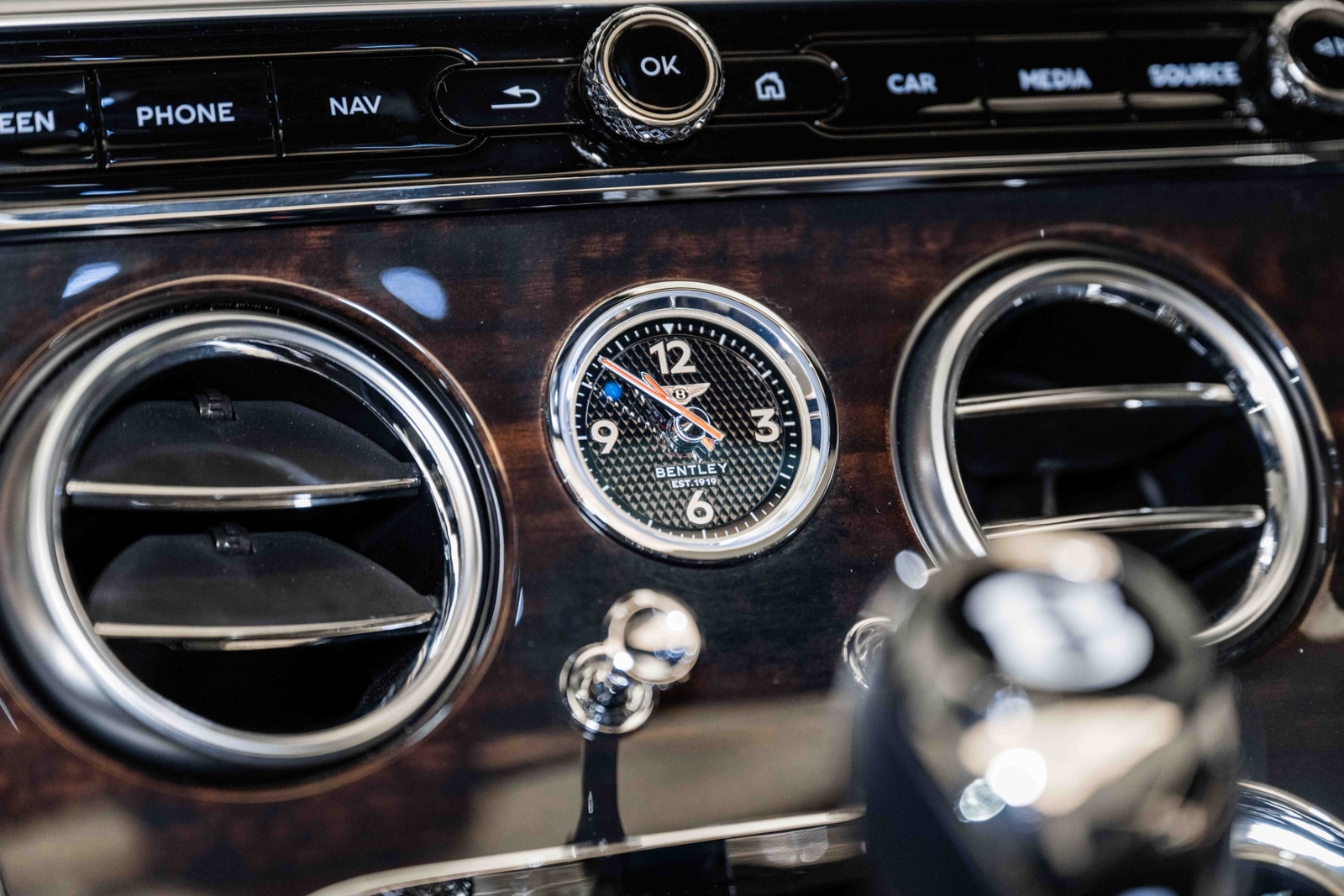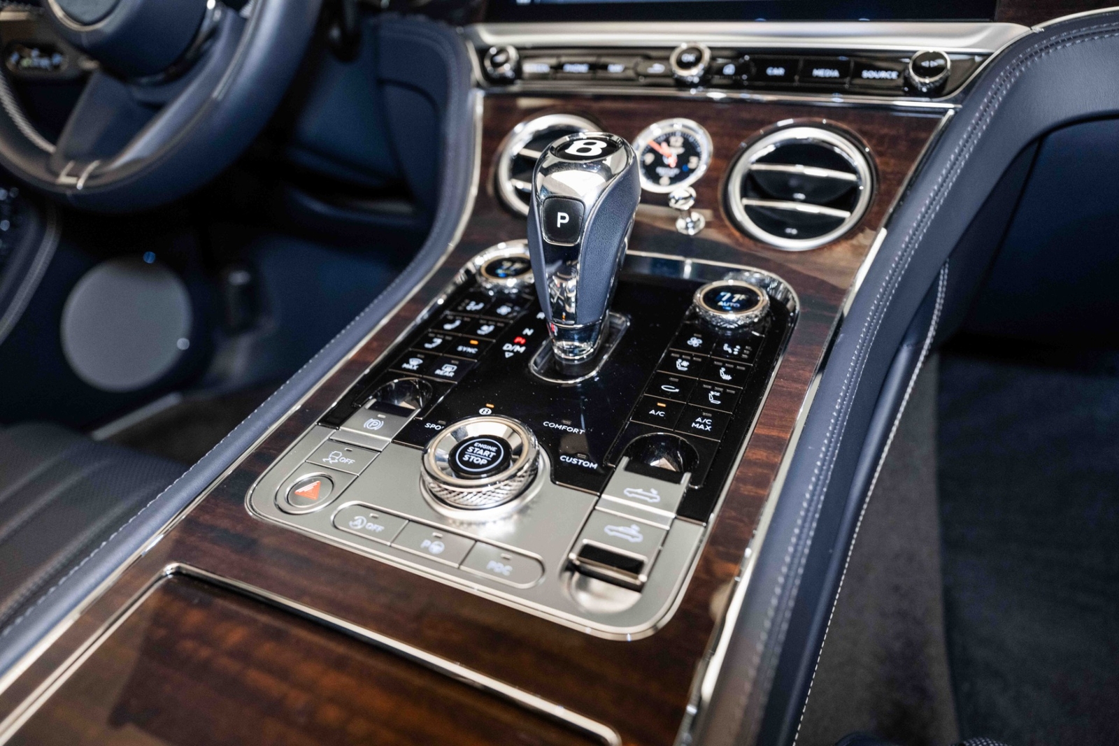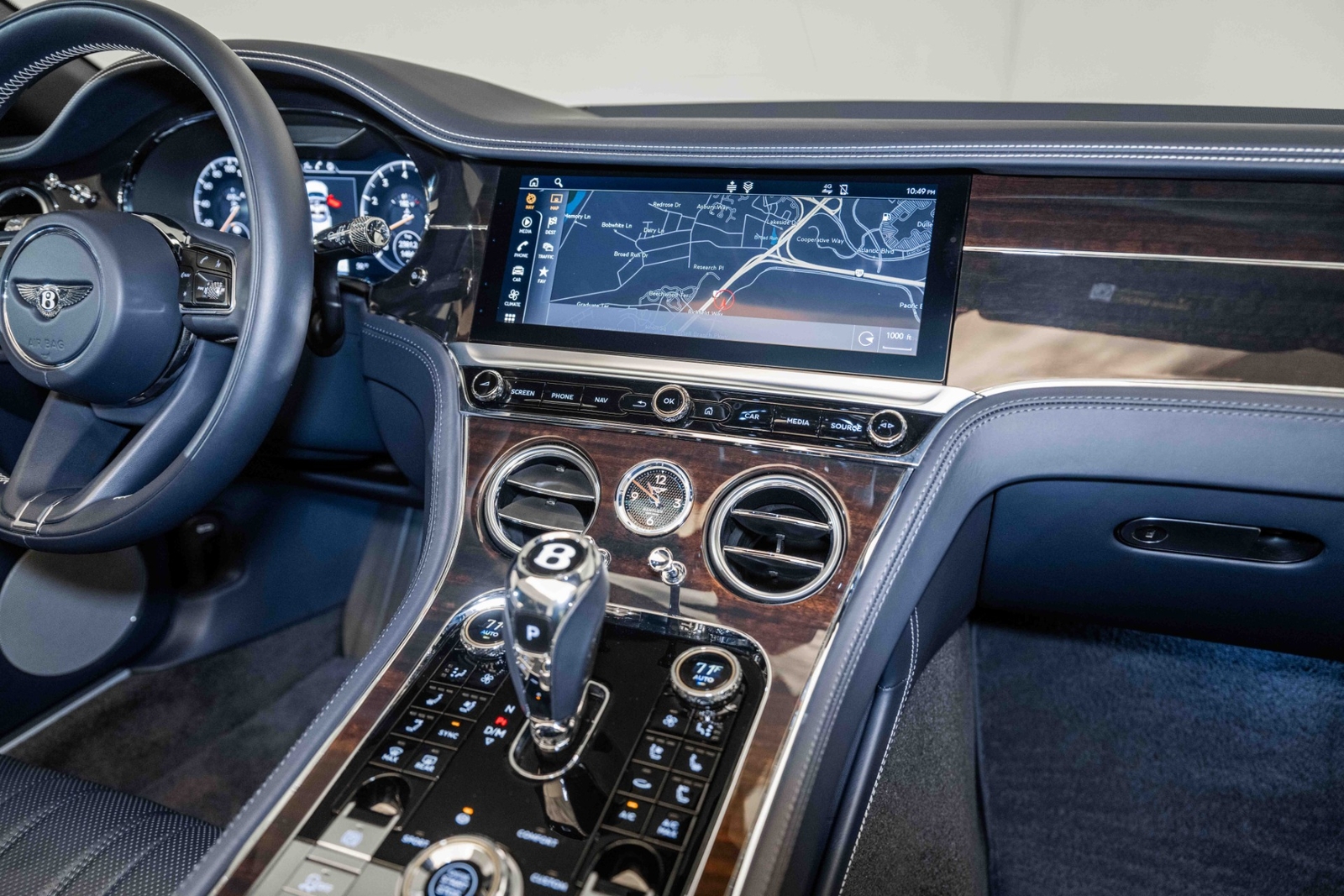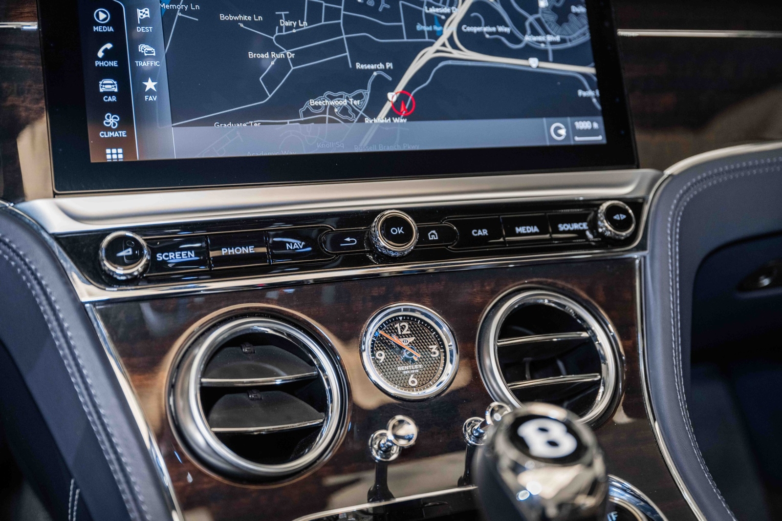 This Bentley has 14927 miles and comes in a Glacier White on Imperial Blue color combination.