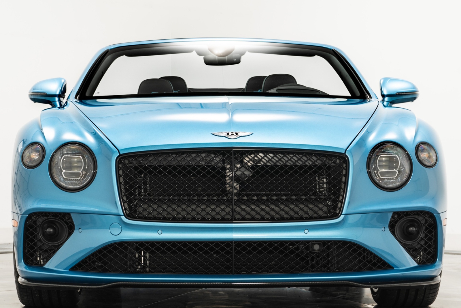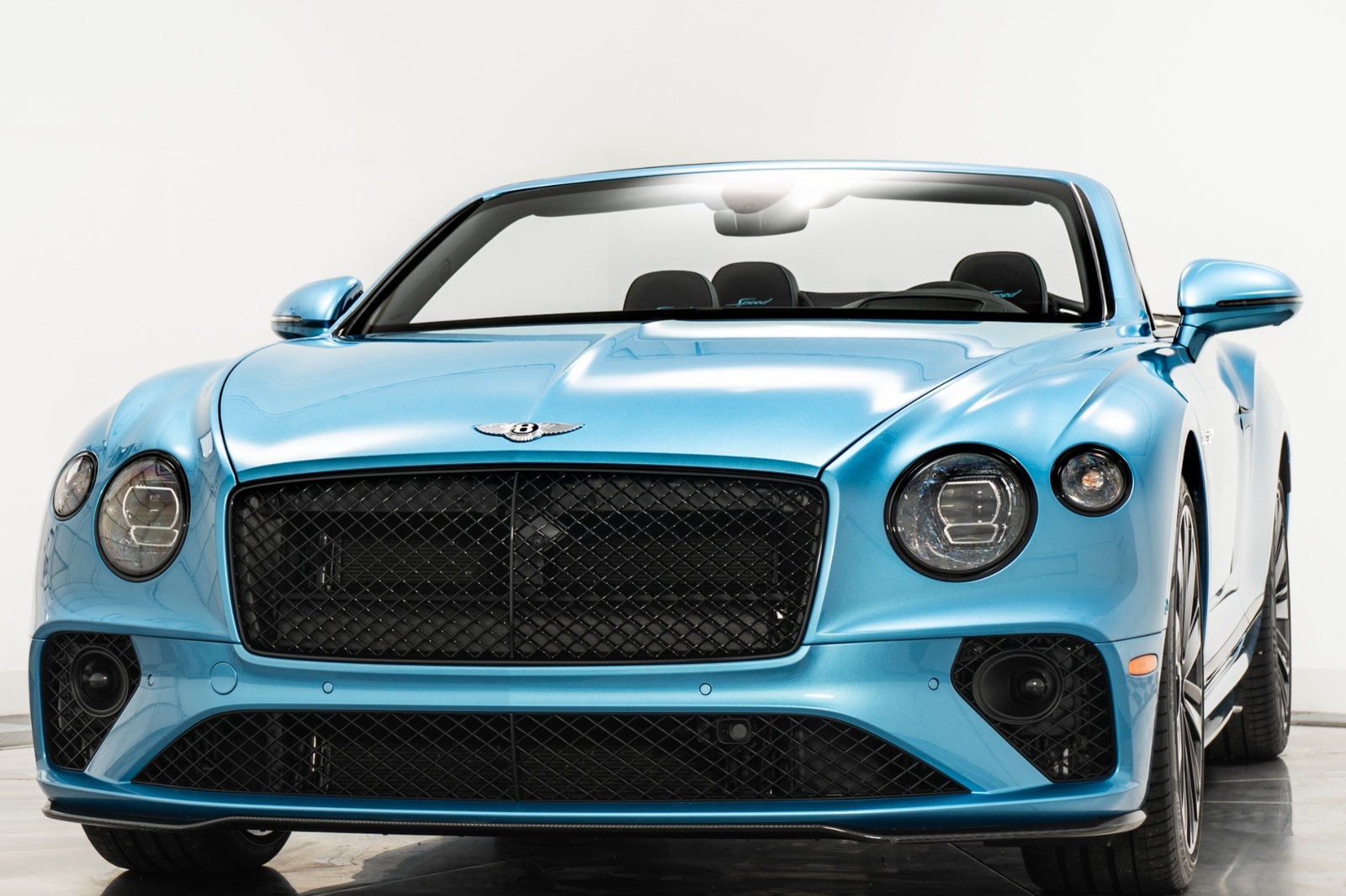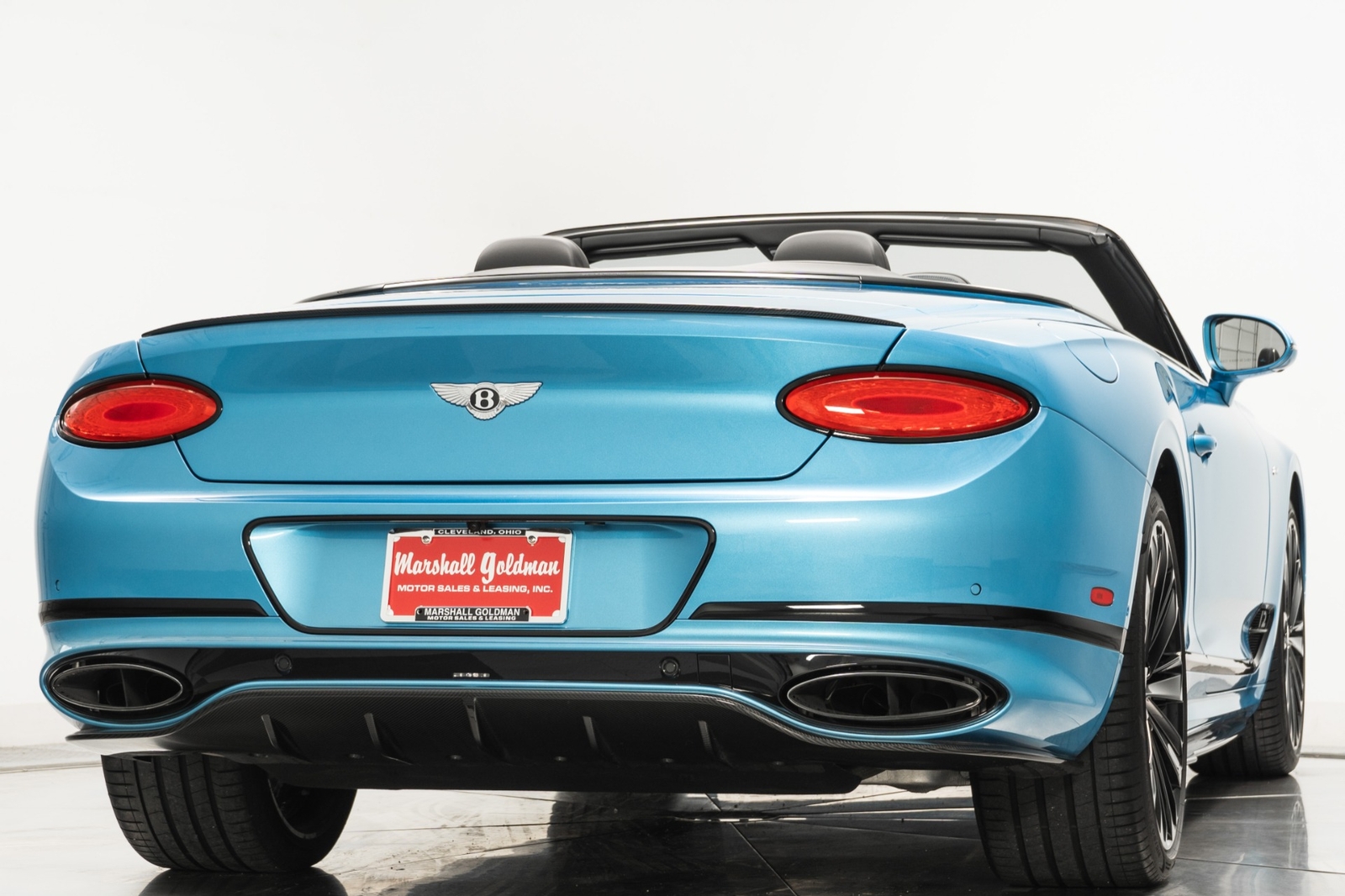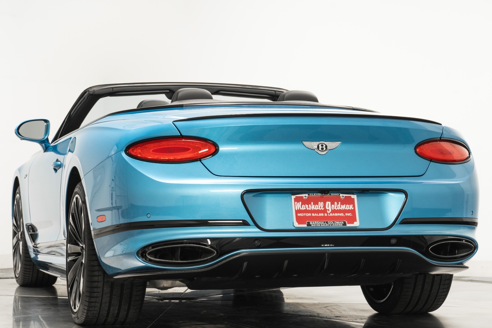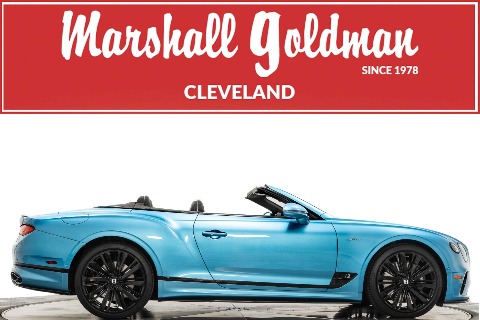 We have just added to our extensive exotic car inventory a beautiful 2023 Bentley Continental GTC Speed in Kingfisher with Beluga leather interior and only 2,941 miles. This GTC is loaded with: 6.0L twin turbo W12 with 650 horsepower, automatic transmission, 22 inch Speed wheels in gloss black, self leveling wheel badges, Continental Blackline specification with gloss black grille matrices and trim, extended range paint color, black brake calipers, Mulliner range paint color, styling specification, touring specification (head-up display, night vision, Bentley Safeguard Plus, ACC, lane assist), Bentley rotating display, high gloss carbon fiber fascia trim, front seat comfort specification, Naim for Bentley premium audio, Alcantara interior trim in Beluga, Kingfisher secondary leather color, two-tone steering wheel and shift lever in Kingfisher, Speed logo embroidered in headrests, contrasting stitching, mood lighting specification, LED welcome lighting, wind stop, black convertible top and much more. The original MSRP was a massive $396,580.
