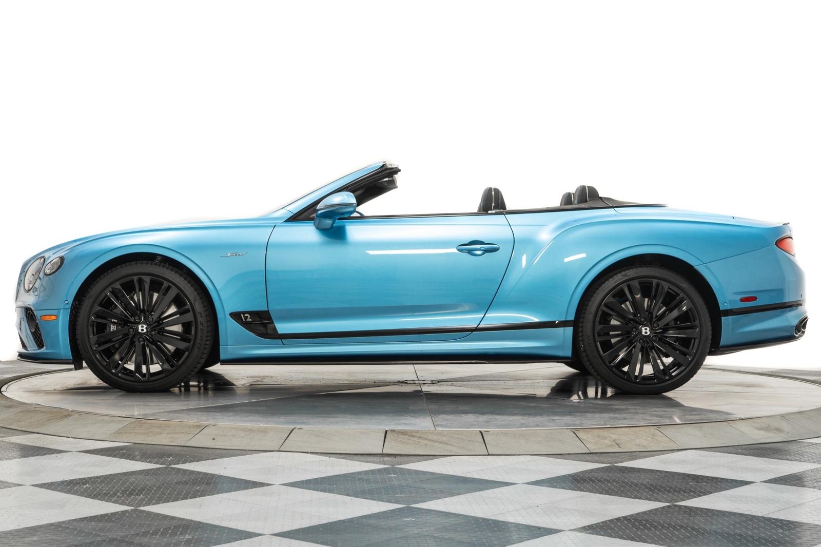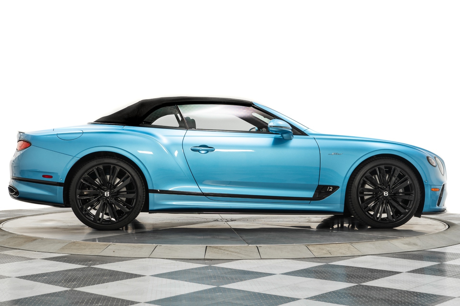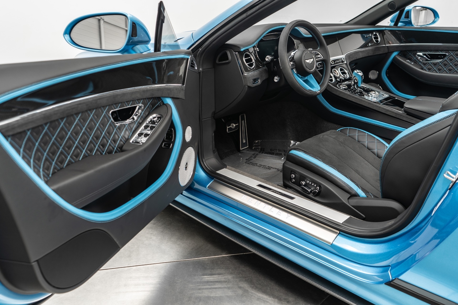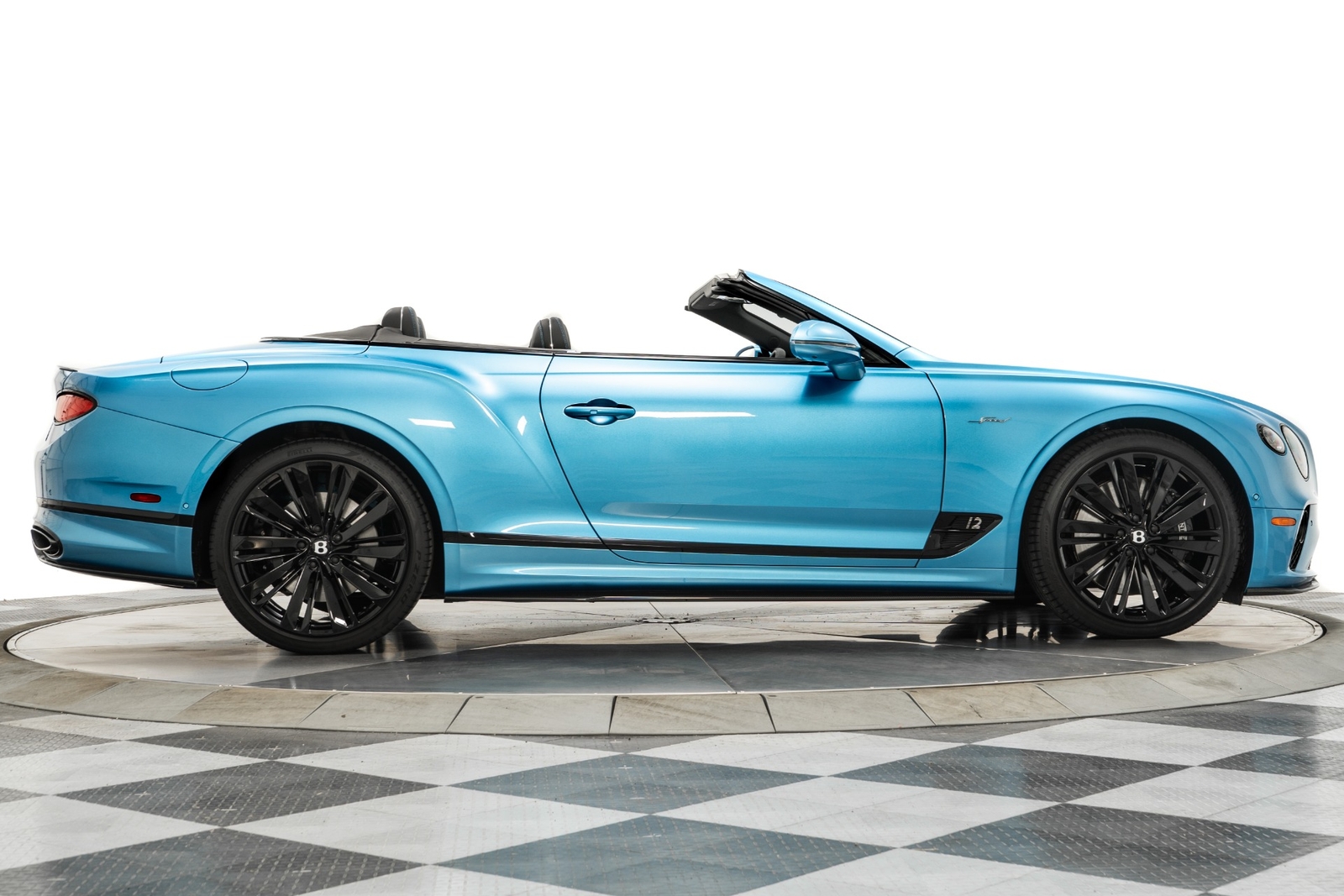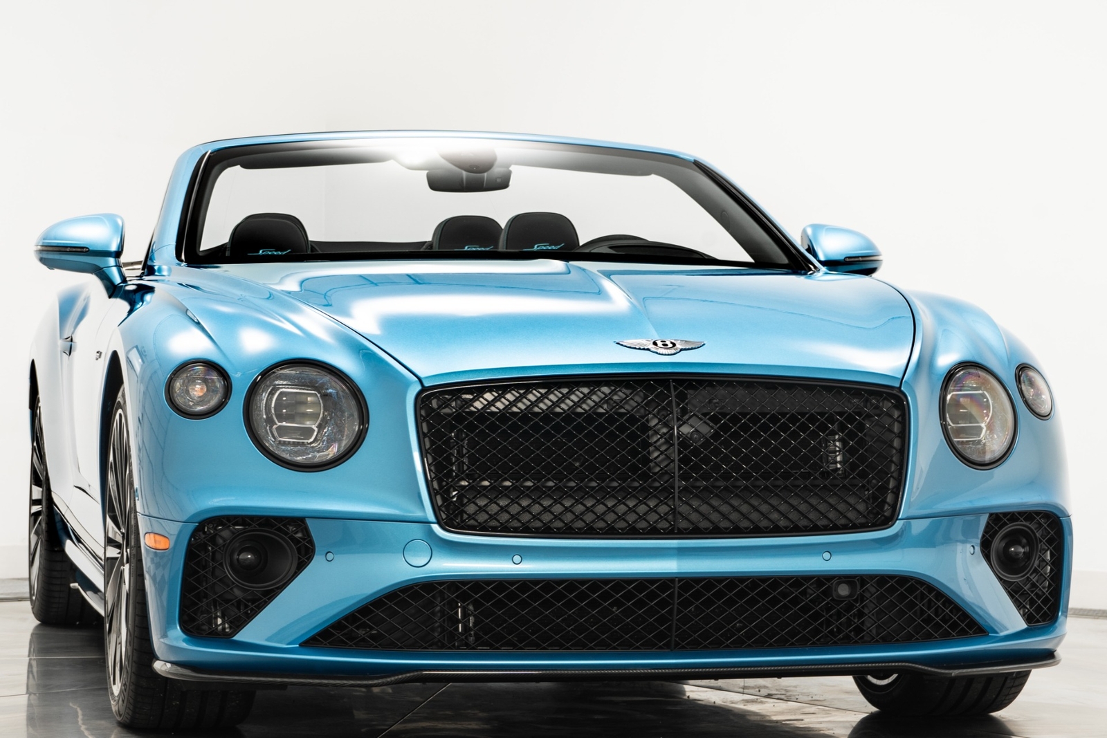 We have just added to our extensive exotic car inventory a beautiful 2023 Bentley Continental GTC Speed in Kingfisher with Beluga leather interior and only 2,941 miles. This GTC is loaded with: 6.0L twin turbo W12 with 650 horsepower, automatic transmission, 22 inch Speed wheels in gloss black, self leveling wheel badges, Continental Blackline specification with gloss black grille matrices and trim, extended range paint color, black brake calipers, Mulliner range paint color, styling specification, touring specification (head-up display, night vision, Bentley Safeguard Plus, ACC, lane assist), Bentley rotating display, high gloss carbon fiber fascia trim, front seat comfort specification, Naim for Bentley premium audio, Alcantara interior trim in Beluga, Kingfisher secondary leather color, two-tone steering wheel and shift lever in Kingfisher, Speed logo embroidered in headrests, contrasting stitching, mood lighting specification, LED welcome lighting, wind stop, black convertible top and much more. The original MSRP was a massive $396,580.