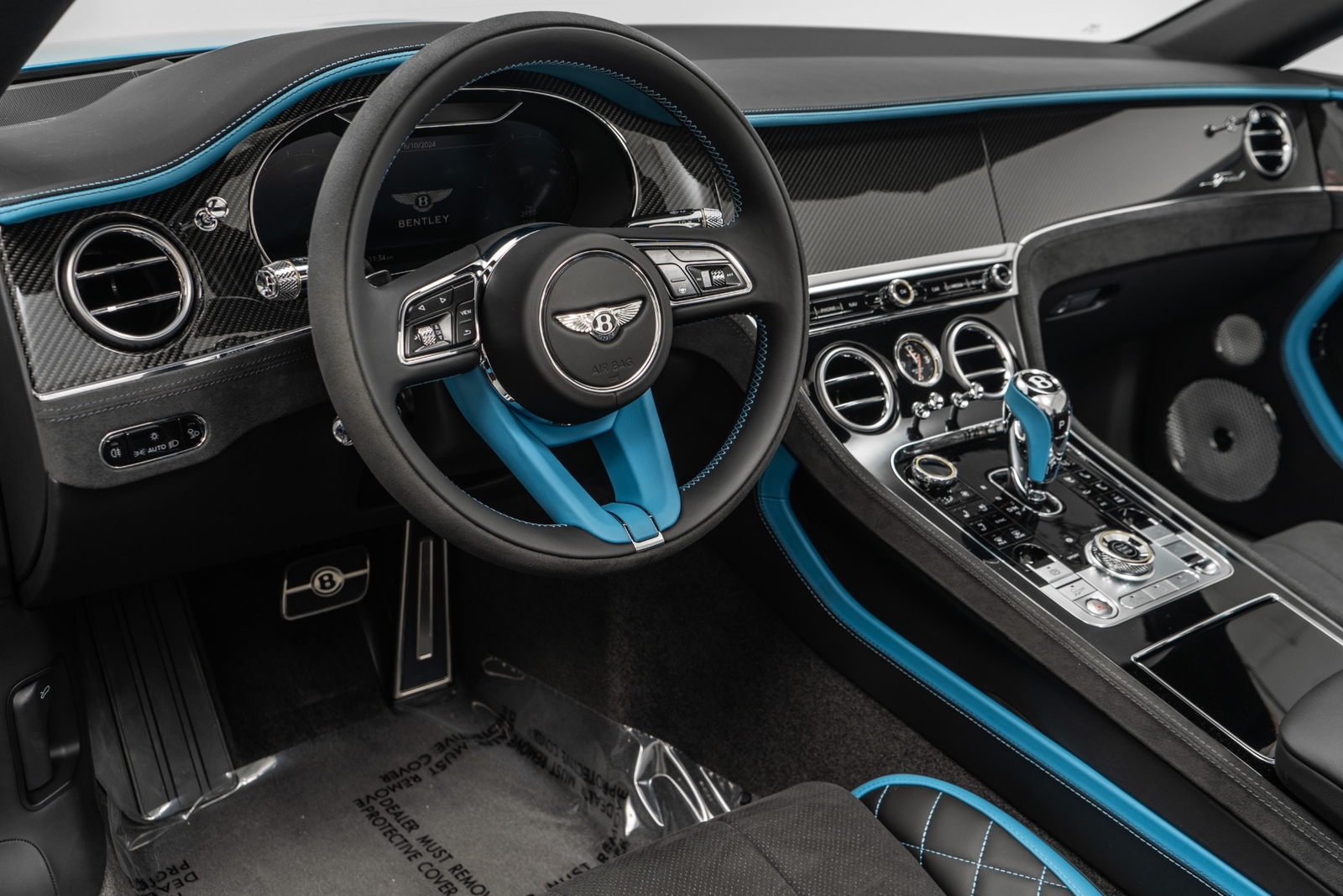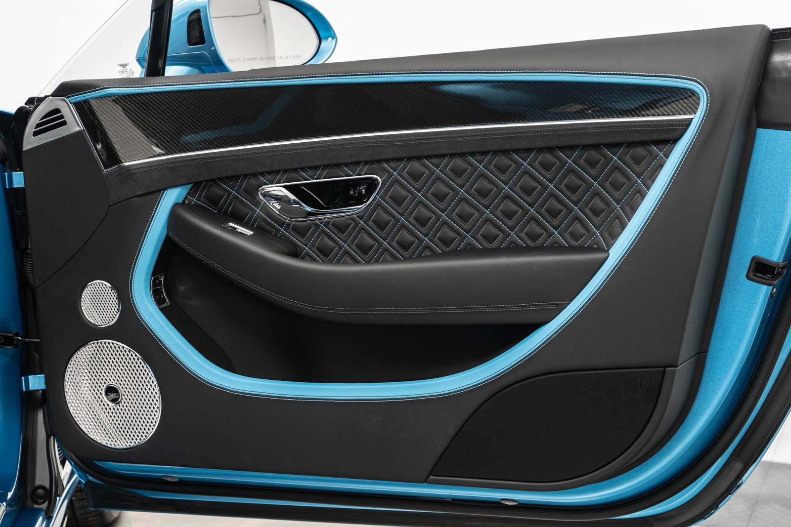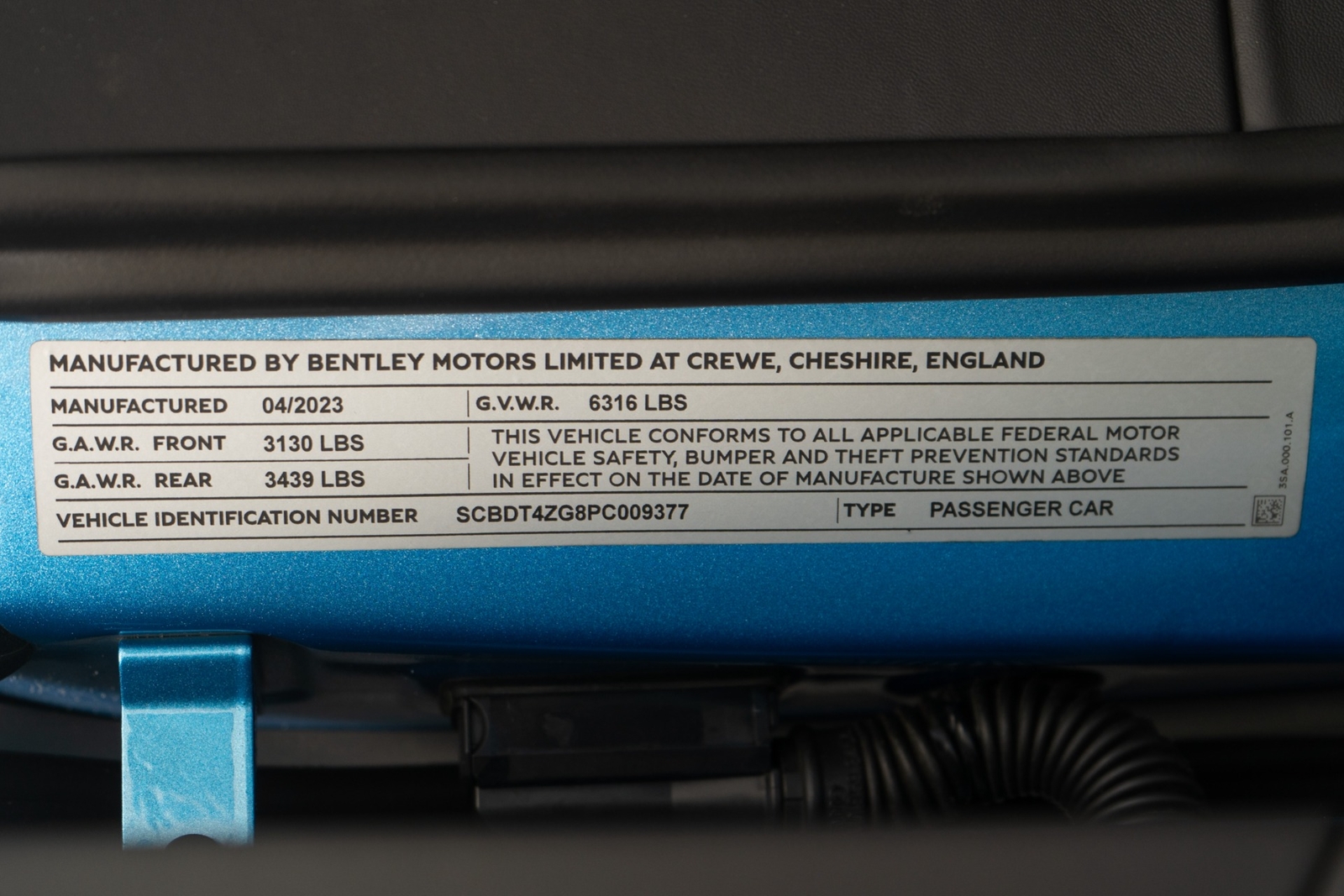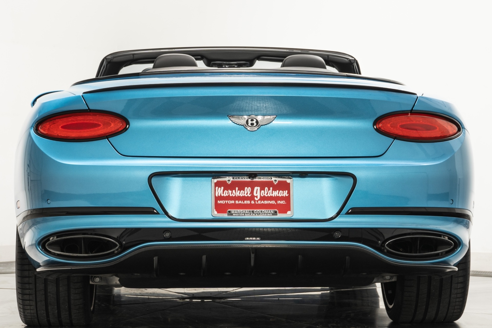 We have just added to our extensive exotic car inventory a beautiful 2023 Bentley Continental GTC Speed in Kingfisher with Beluga leather interior and only 2,941 miles. This GTC is loaded with: 6.0L twin turbo W12 with 650 horsepower, automatic transmission, 22 inch Speed wheels in gloss black, self leveling wheel badges, Continental Blackline specification with gloss black grille matrices and trim, extended range paint color, black brake calipers, Mulliner range paint color, styling specification, touring specification (head-up display, night vision, Bentley Safeguard Plus, ACC, lane assist), Bentley rotating display, high gloss carbon fiber fascia trim, front seat comfort specification, Naim for Bentley premium audio, Alcantara interior trim in Beluga, Kingfisher secondary leather color, two-tone steering wheel and shift lever in Kingfisher, Speed logo embroidered in headrests, contrasting stitching, mood lighting specification, LED welcome lighting, wind stop, black convertible top and much more. The original MSRP was a massive $396,580.