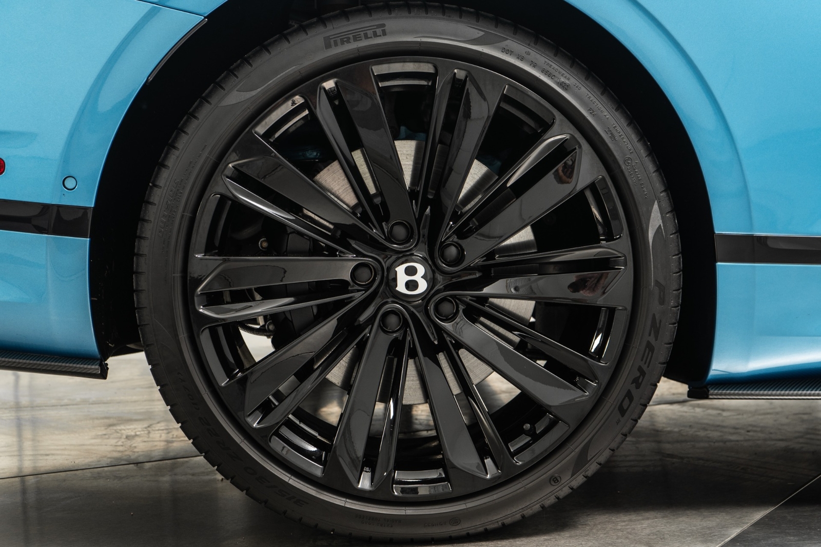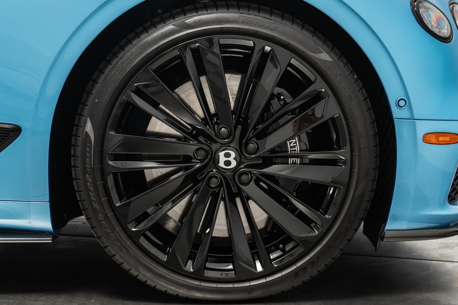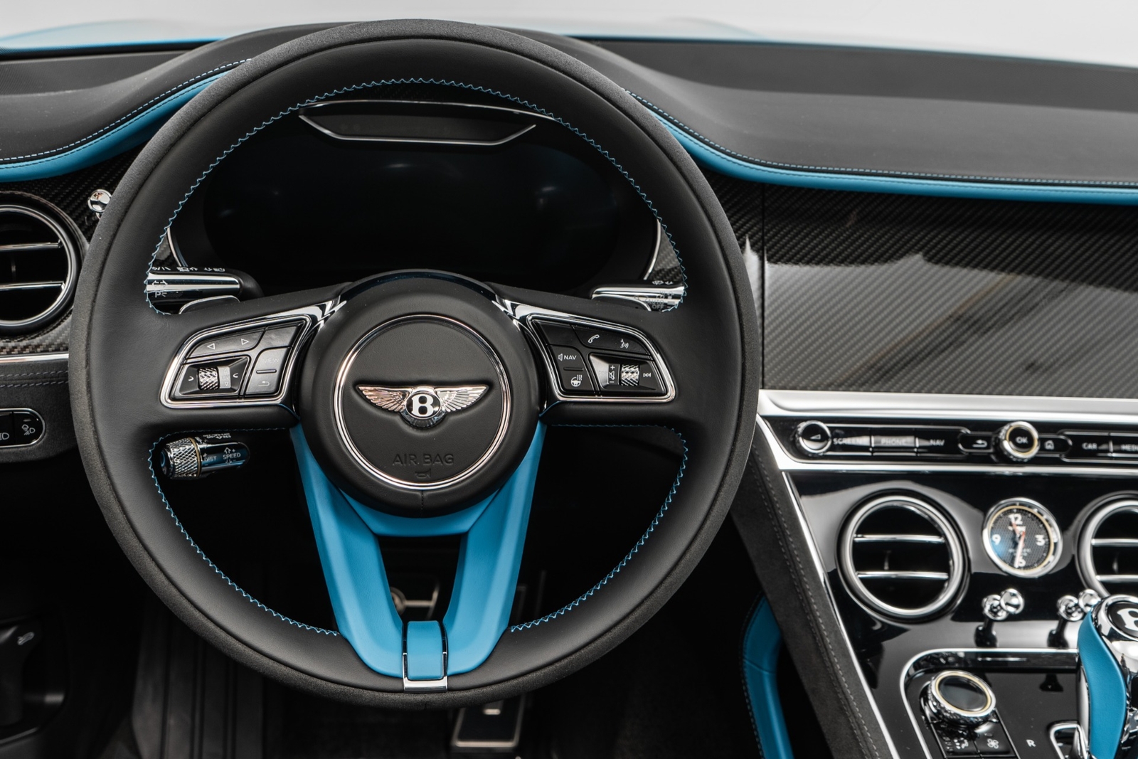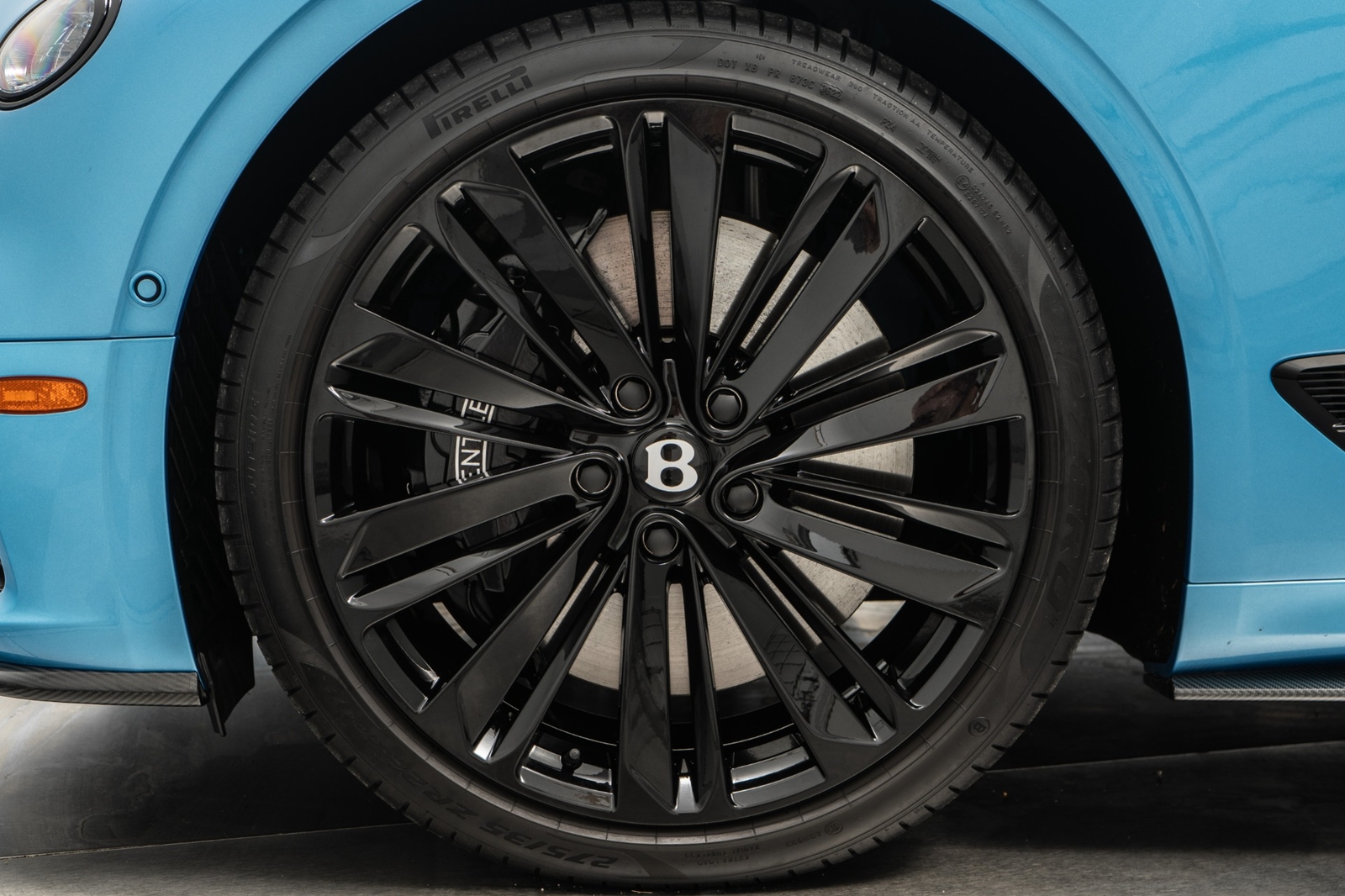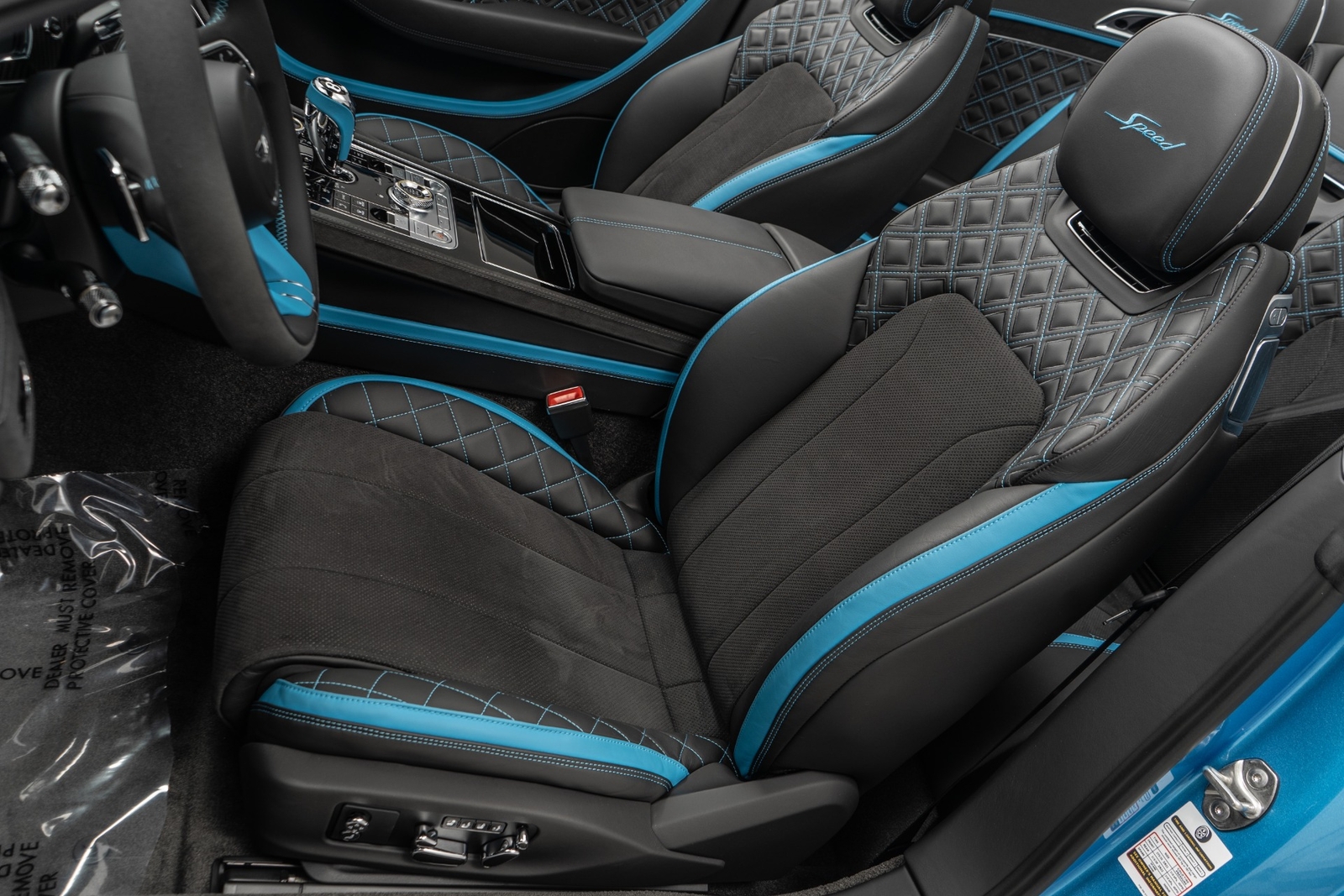 We have just added to our extensive exotic car inventory a beautiful 2023 Bentley Continental GTC Speed in Kingfisher with Beluga leather interior and only 2,941 miles. This GTC is loaded with: 6.0L twin turbo W12 with 650 horsepower, automatic transmission, 22 inch Speed wheels in gloss black, self leveling wheel badges, Continental Blackline specification with gloss black grille matrices and trim, extended range paint color, black brake calipers, Mulliner range paint color, styling specification, touring specification (head-up display, night vision, Bentley Safeguard Plus, ACC, lane assist), Bentley rotating display, high gloss carbon fiber fascia trim, front seat comfort specification, Naim for Bentley premium audio, Alcantara interior trim in Beluga, Kingfisher secondary leather color, two-tone steering wheel and shift lever in Kingfisher, Speed logo embroidered in headrests, contrasting stitching, mood lighting specification, LED welcome lighting, wind stop, black convertible top and much more. The original MSRP was a massive $396,580.