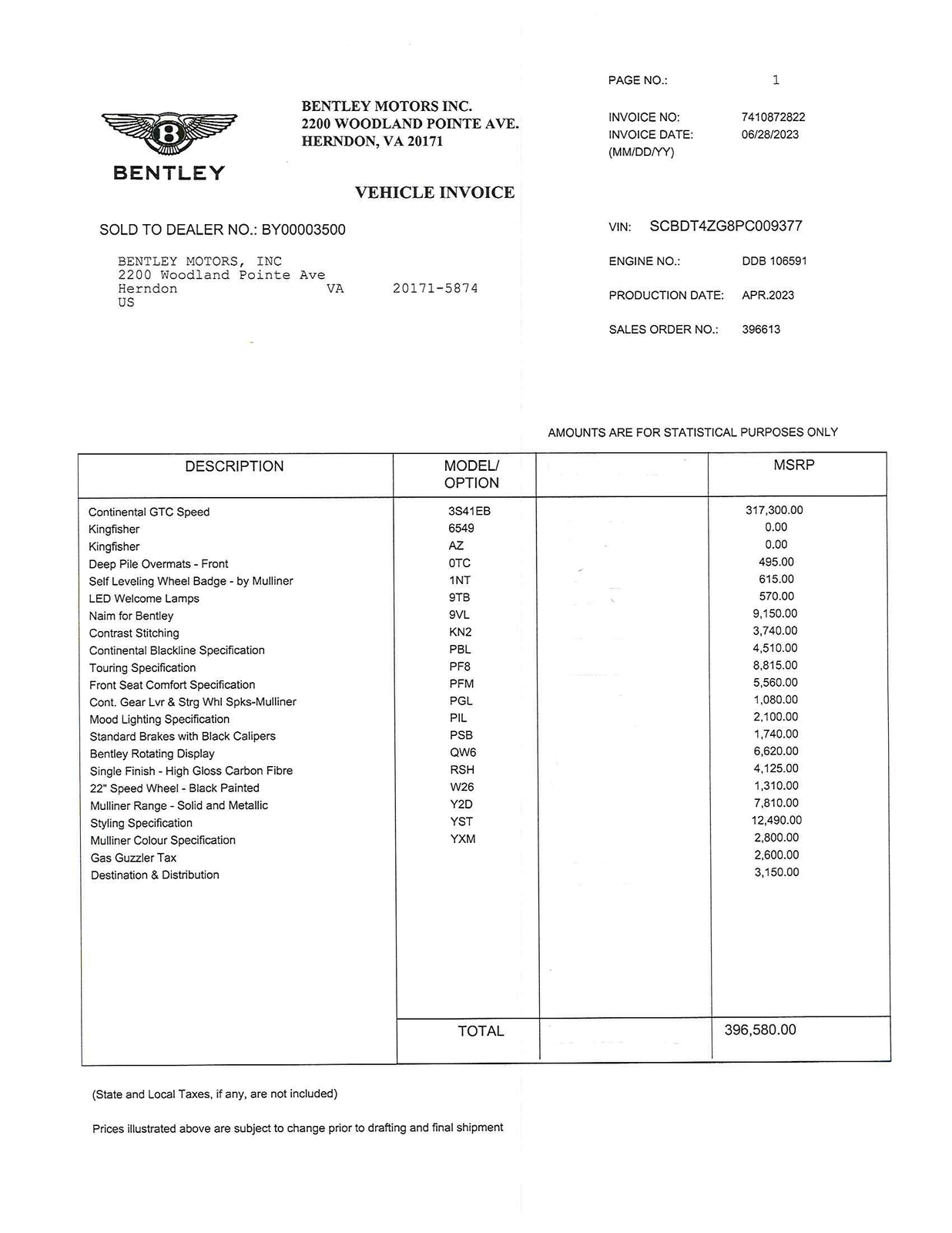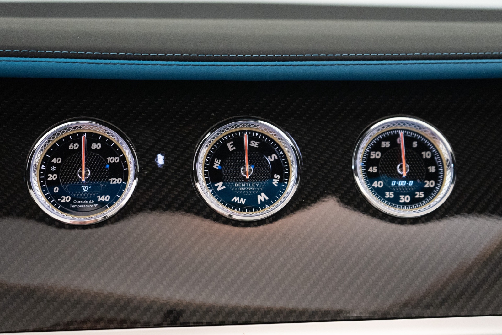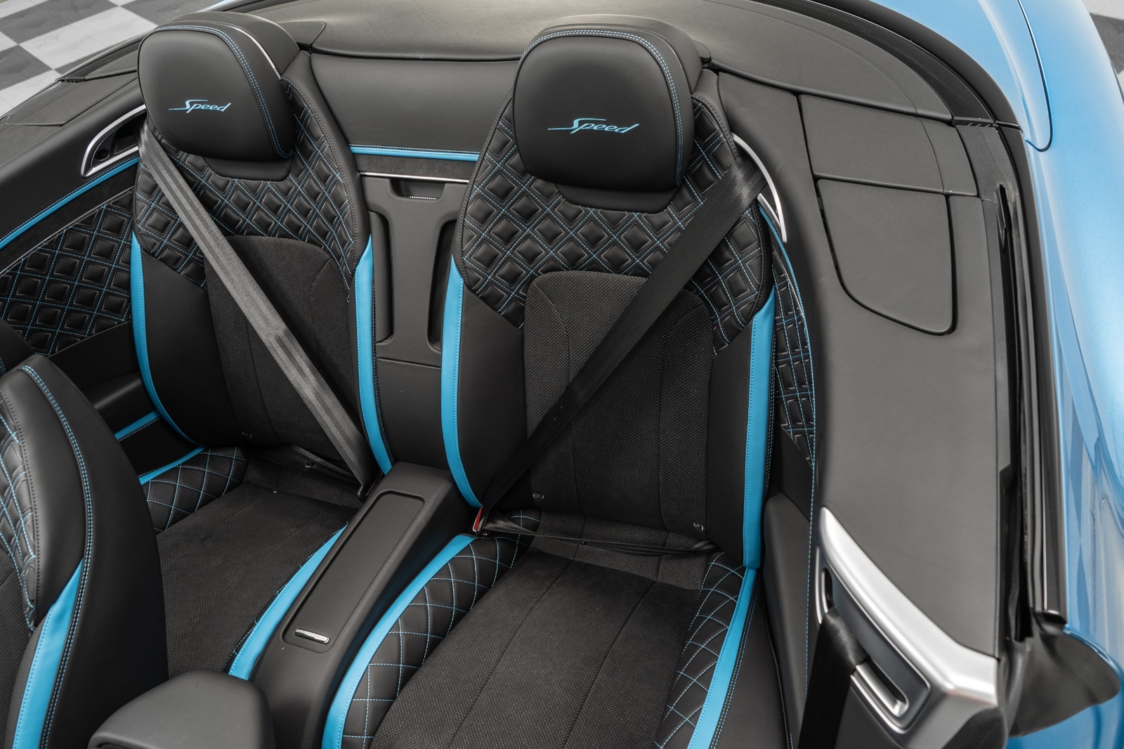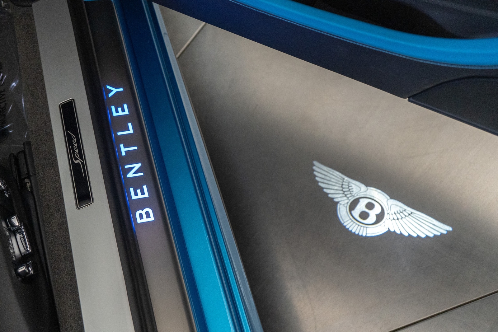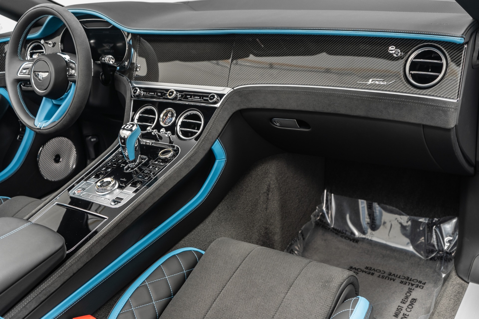 We have just added to our extensive exotic car inventory a beautiful 2023 Bentley Continental GTC Speed in Kingfisher with Beluga leather interior and only 2,941 miles. This GTC is loaded with: 6.0L twin turbo W12 with 650 horsepower, automatic transmission, 22 inch Speed wheels in gloss black, self leveling wheel badges, Continental Blackline specification with gloss black grille matrices and trim, extended range paint color, black brake calipers, Mulliner range paint color, styling specification, touring specification (head-up display, night vision, Bentley Safeguard Plus, ACC, lane assist), Bentley rotating display, high gloss carbon fiber fascia trim, front seat comfort specification, Naim for Bentley premium audio, Alcantara interior trim in Beluga, Kingfisher secondary leather color, two-tone steering wheel and shift lever in Kingfisher, Speed logo embroidered in headrests, contrasting stitching, mood lighting specification, LED welcome lighting, wind stop, black convertible top and much more. The original MSRP was a massive $396,580.