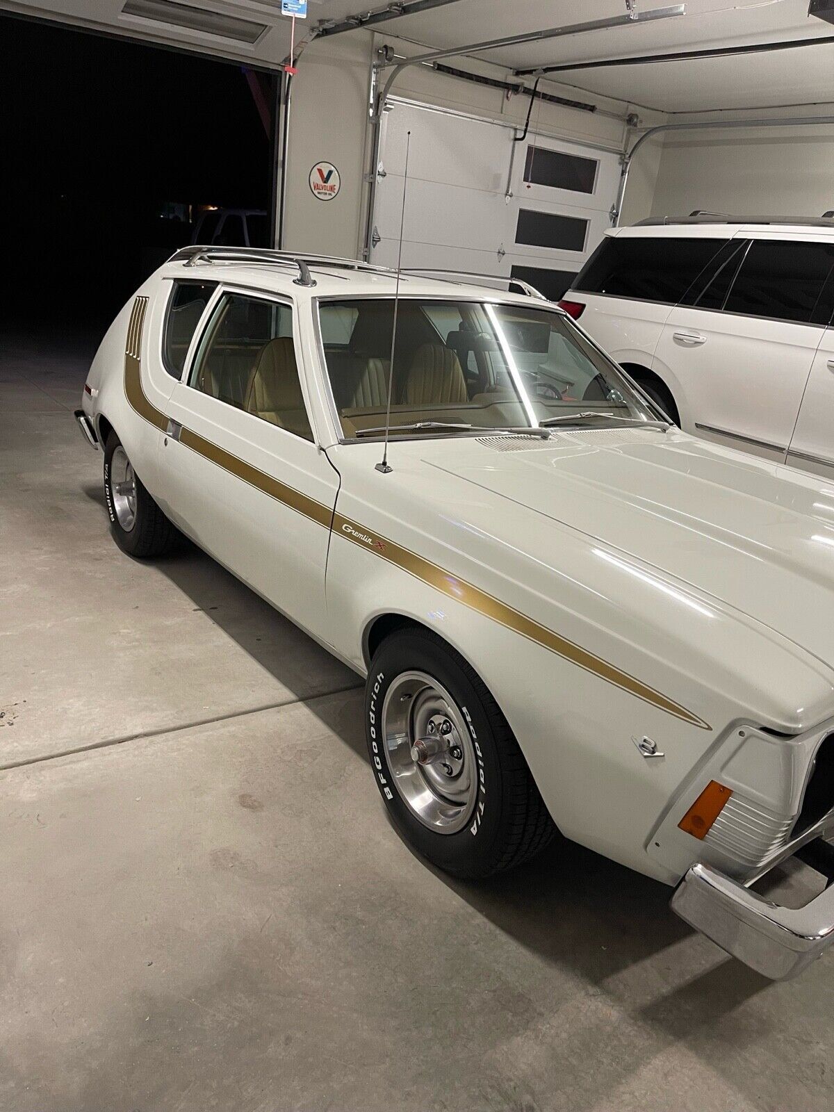 You are looking at a 1974 gremlin X originally white wrapped in satin black Metallic. We added front disk breaks and a Delphi electric fuel pump for reliability. New carpet and had the seats redone. New seals around the doors and rear glass.