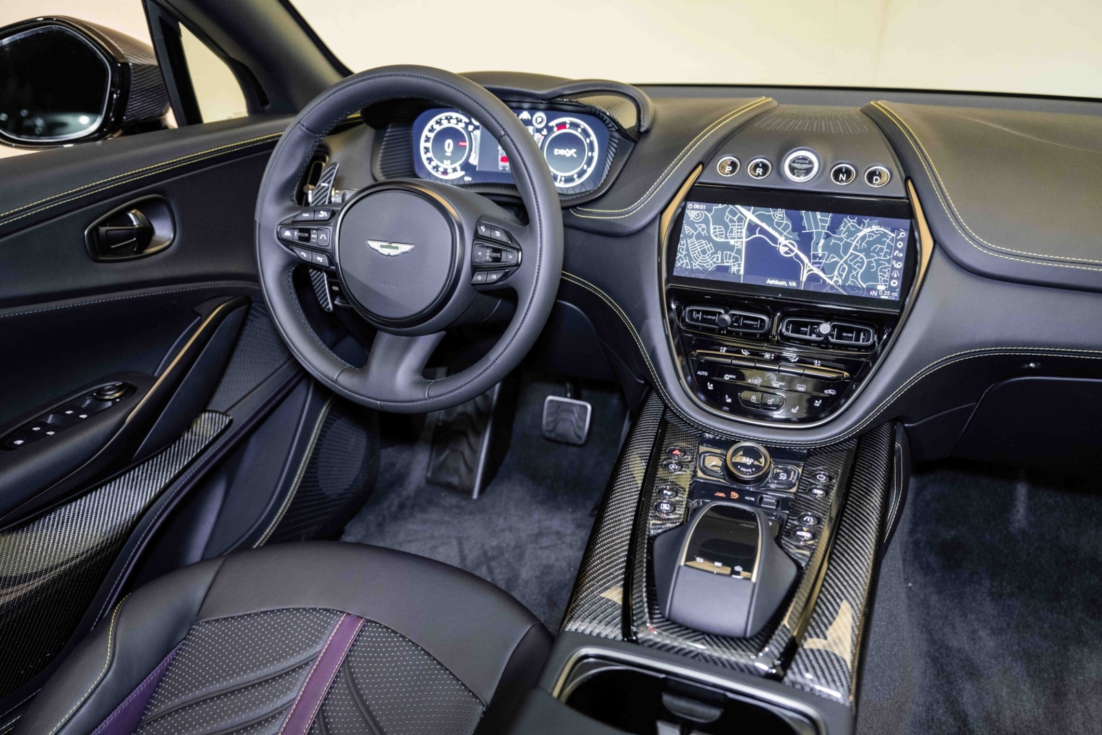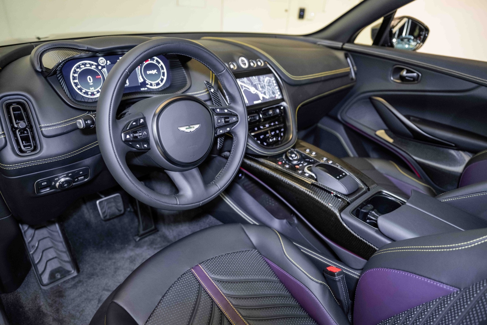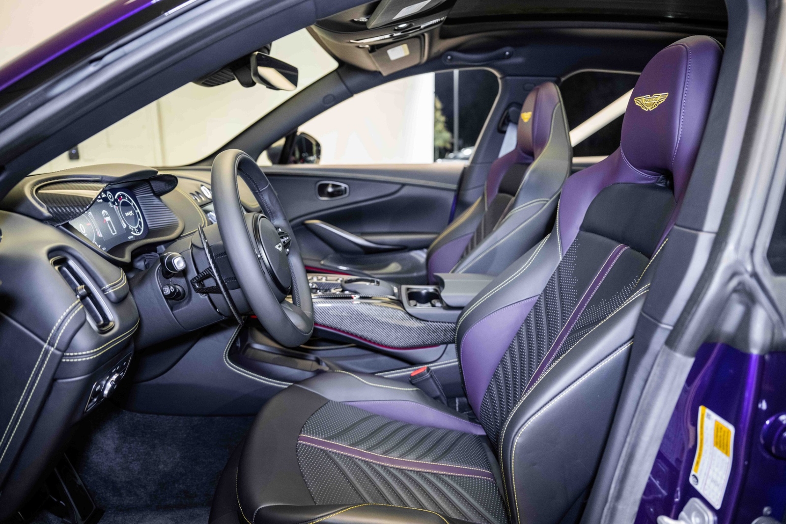 This Aston Martin has 303 miles and comes in a Storm Purple on Onyx Black/Deep Purple color combination.