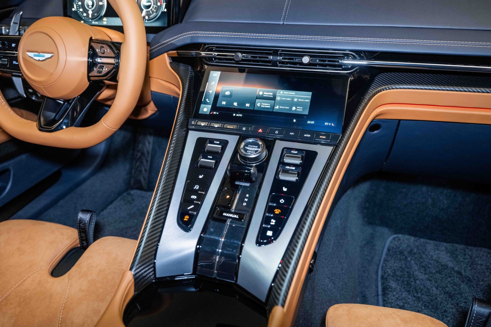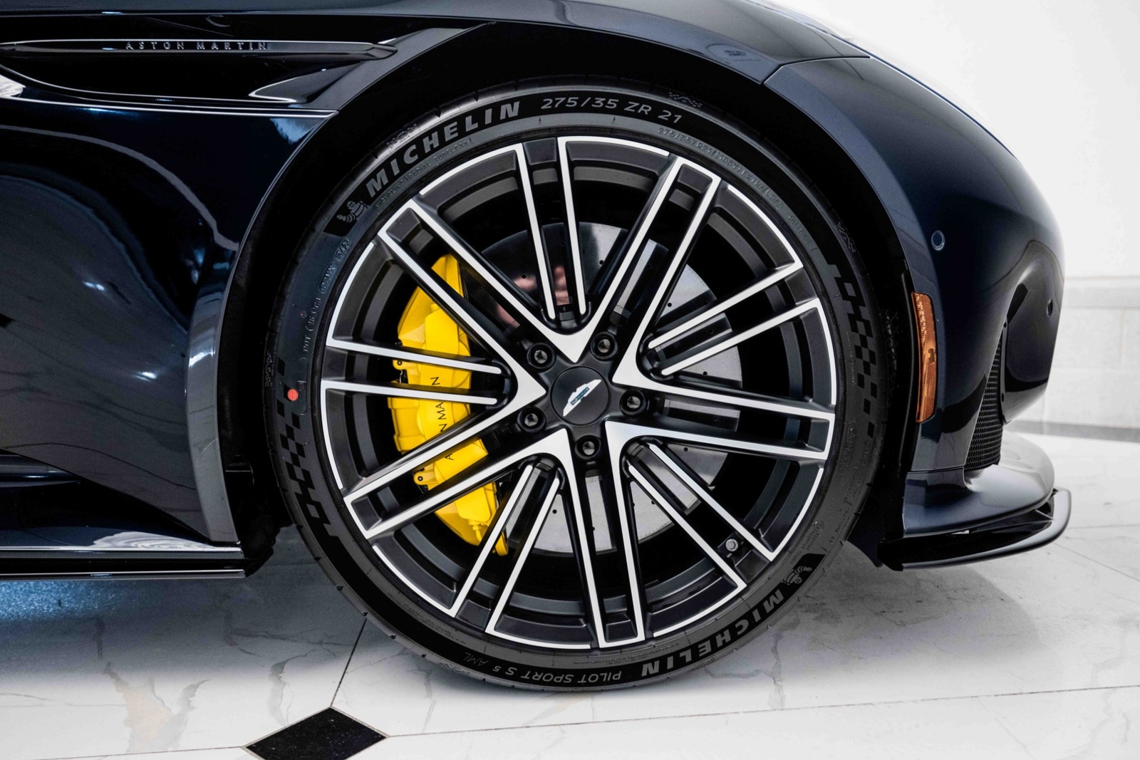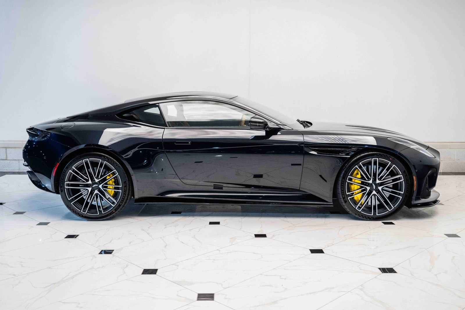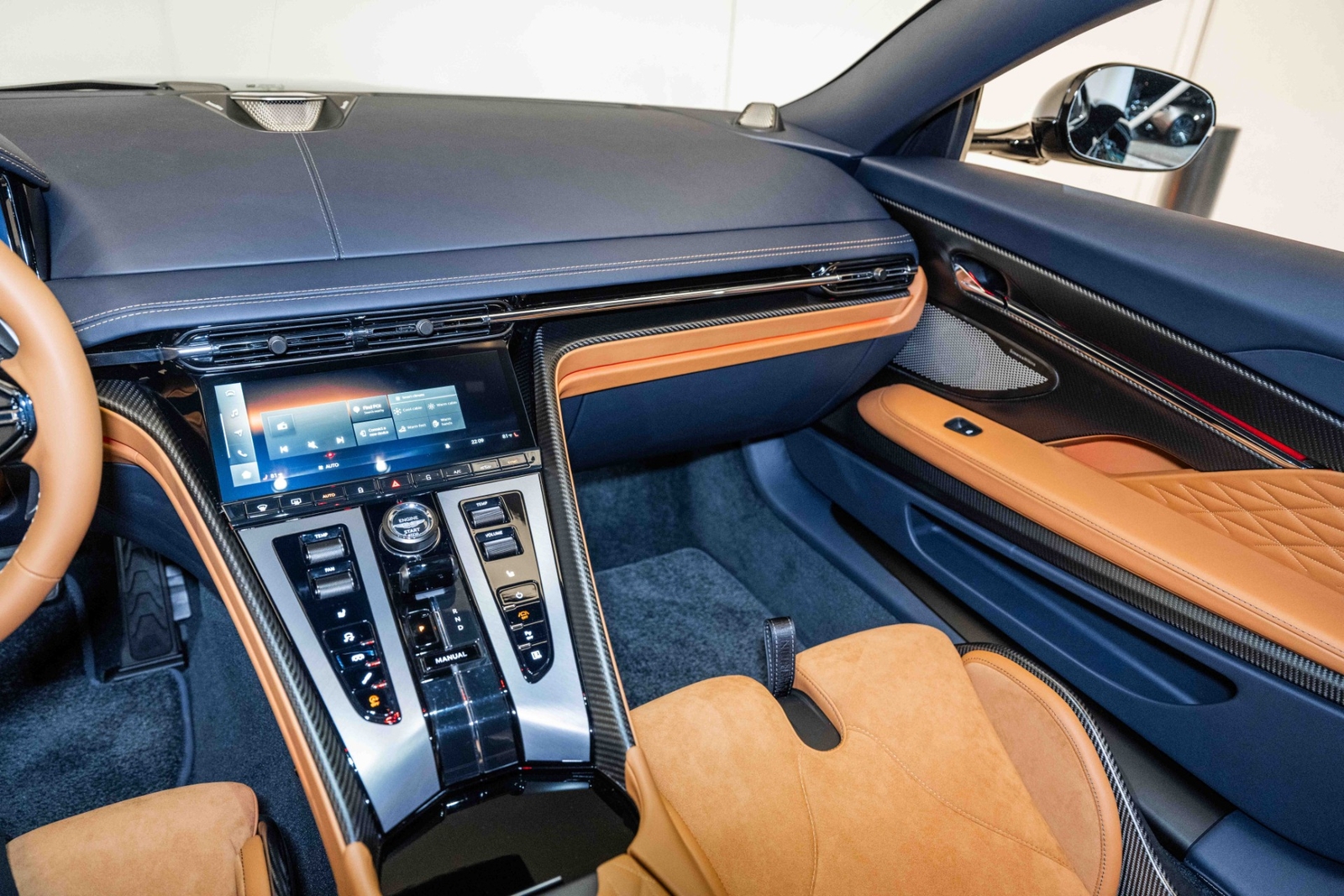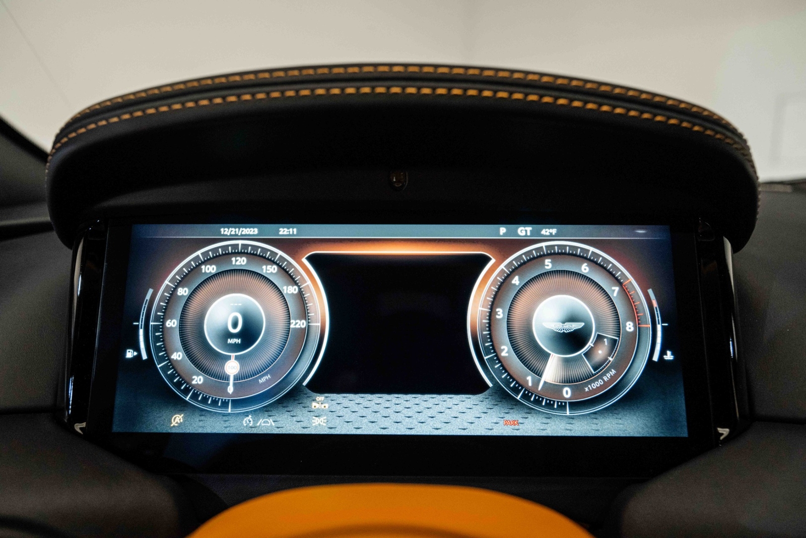 This 2024 Aston Martin DB12 V8 has 35 miles and comes in an Ultramarine Black on Dark Knight - Semi Aniline/Oxford Tan - Semi Aniline color combination.