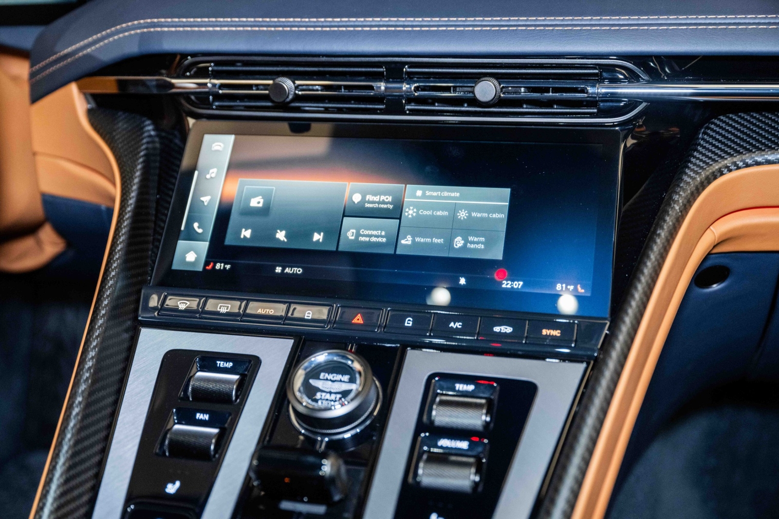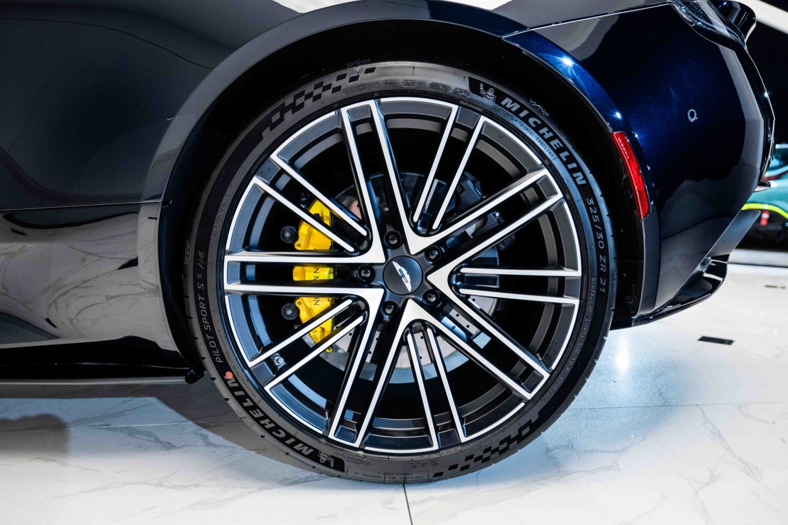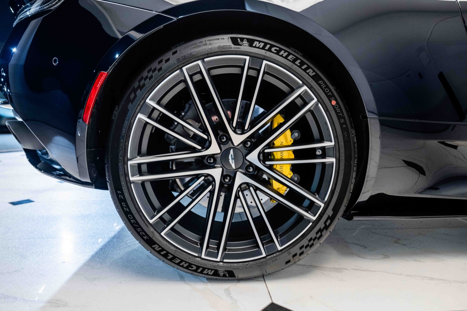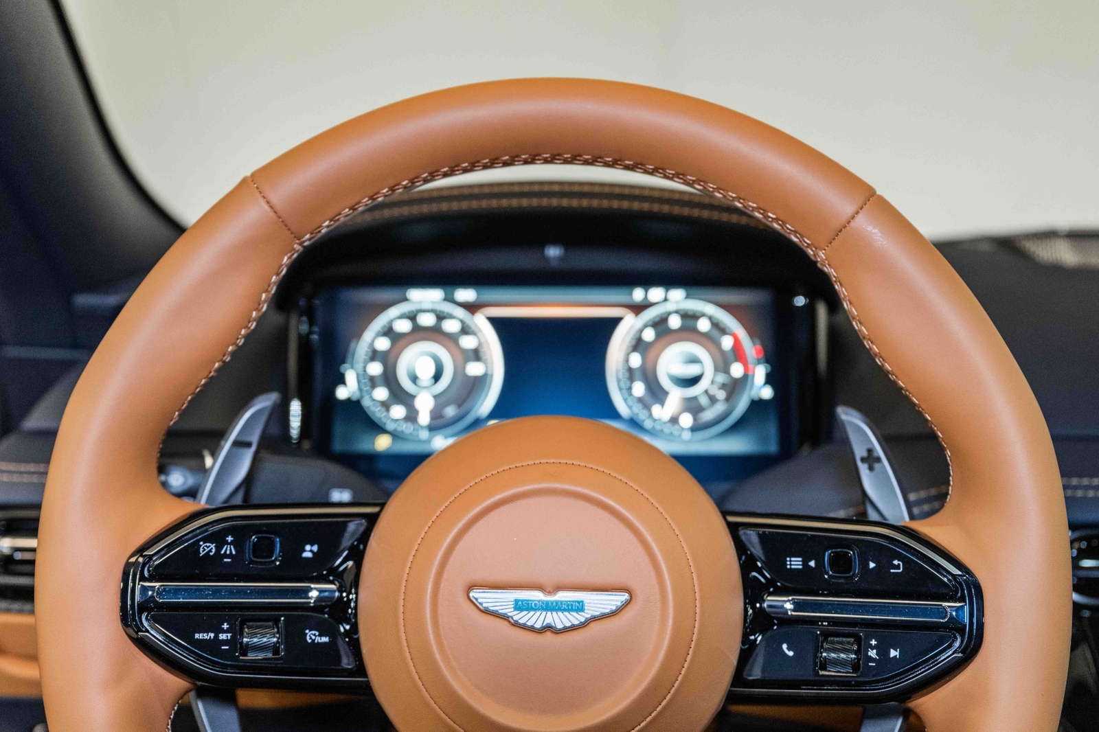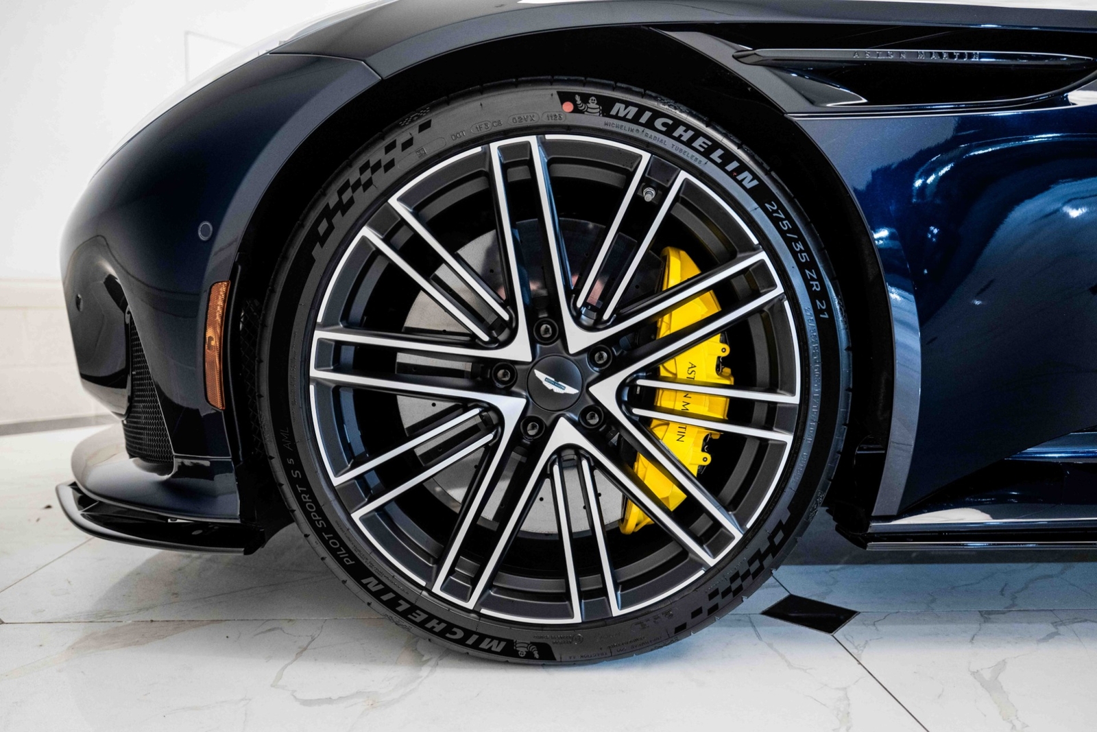 This 2024 Aston Martin DB12 V8 has 35 miles and comes in an Ultramarine Black on Dark Knight - Semi Aniline/Oxford Tan - Semi Aniline color combination.