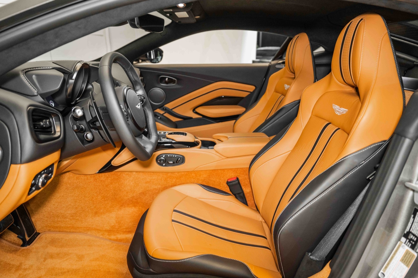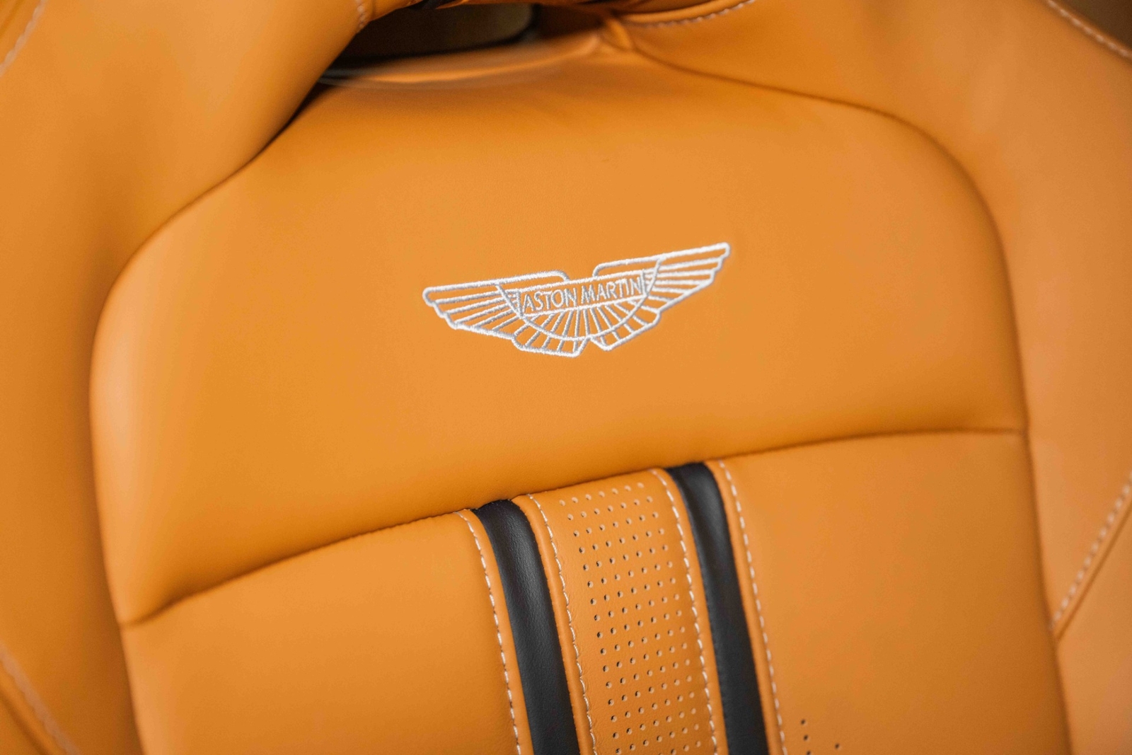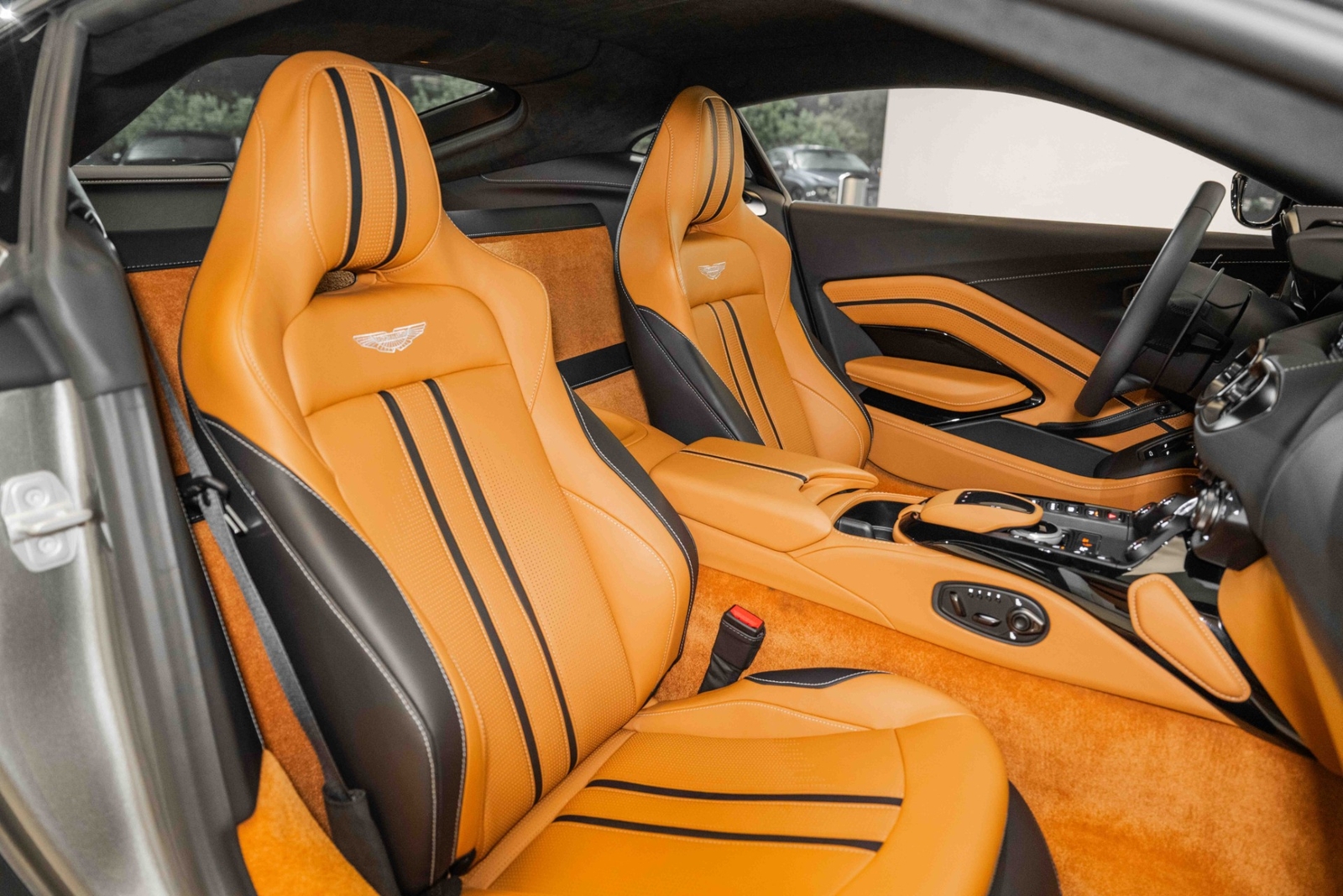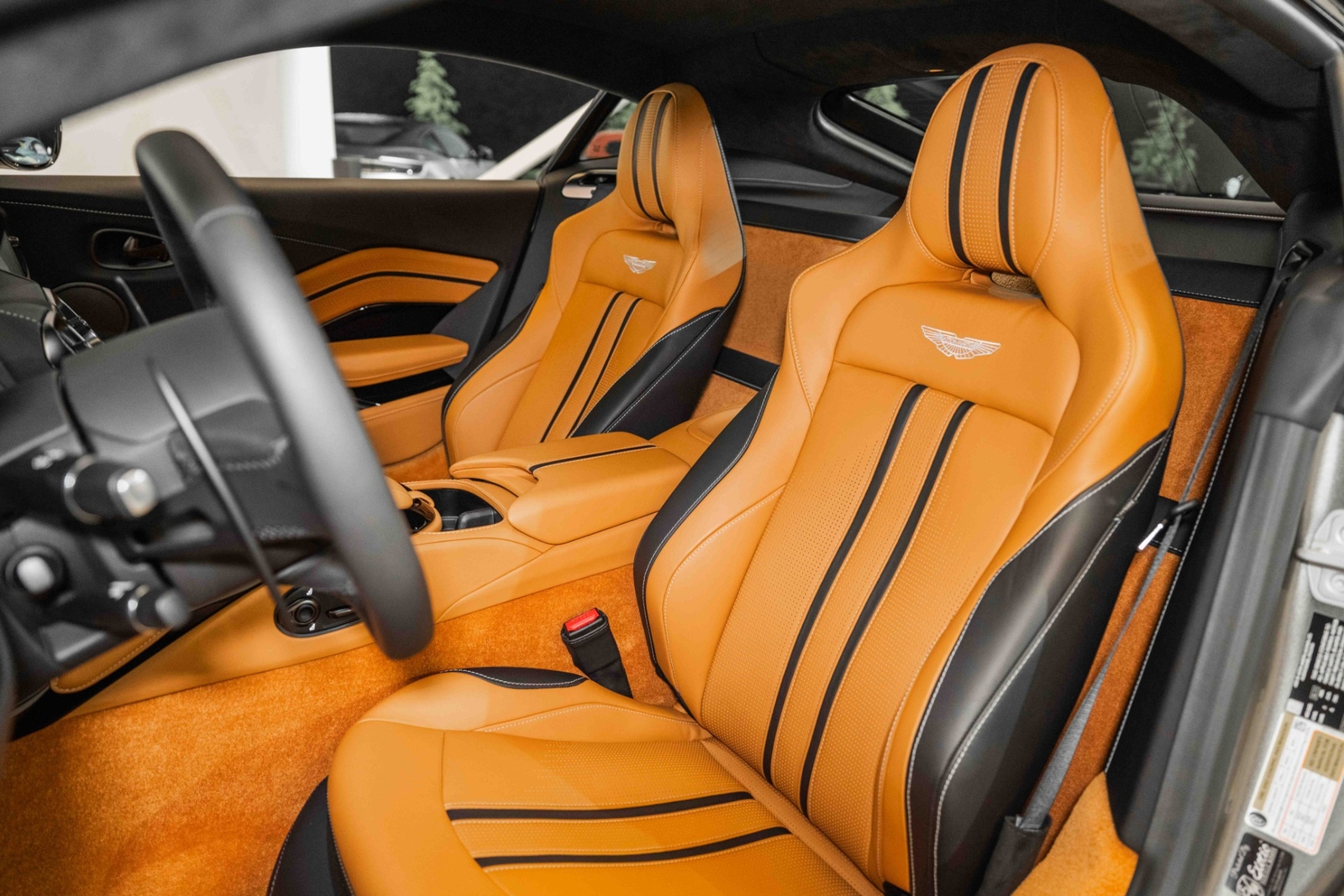 This Aston Martin has 519 miles and comes in a Titanium Grey on Onyx Black/Oxford Tan color combination.