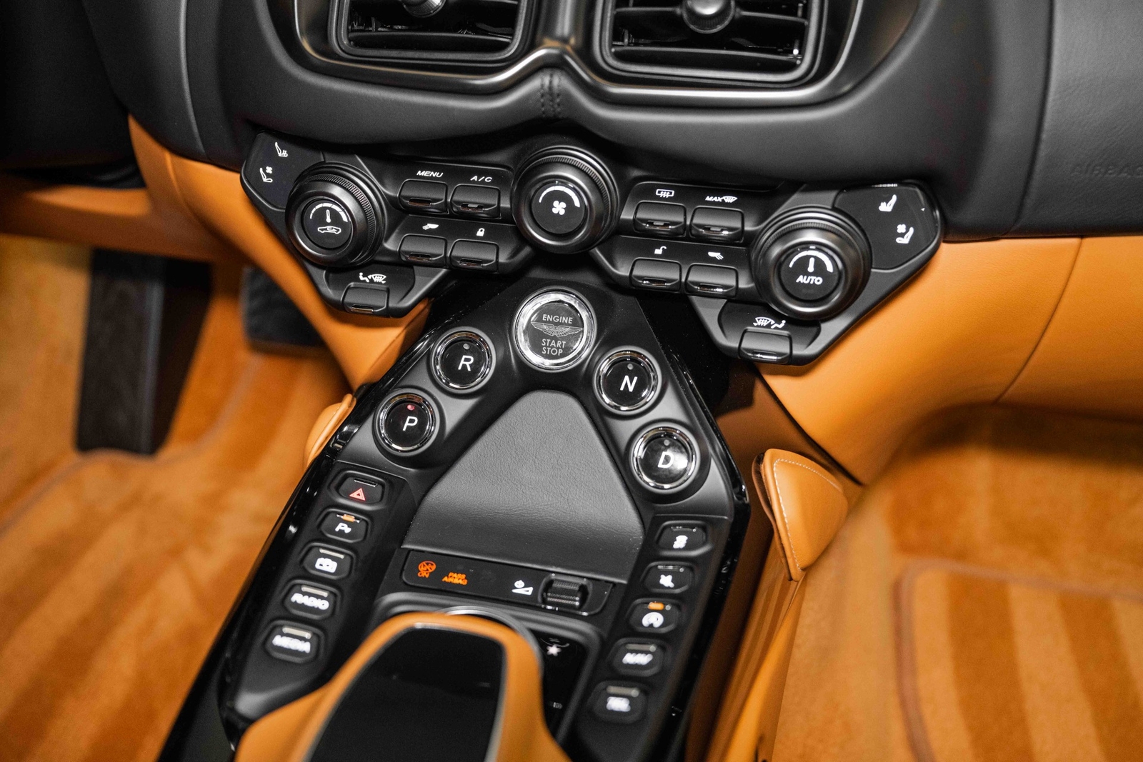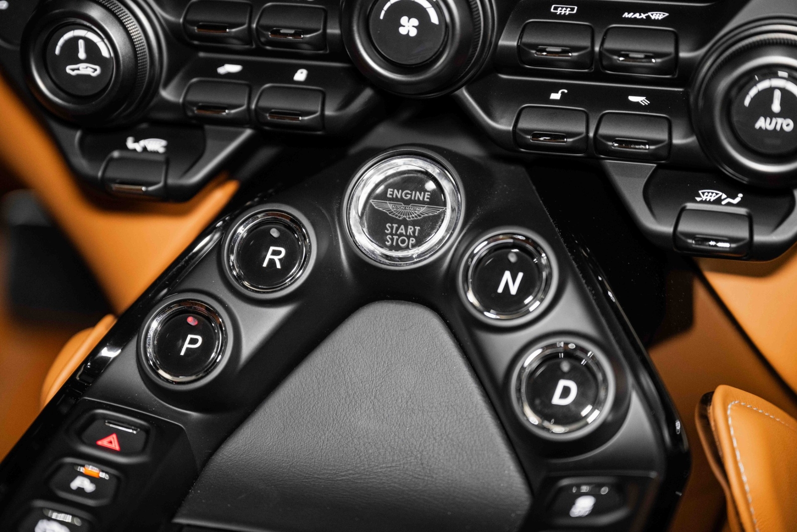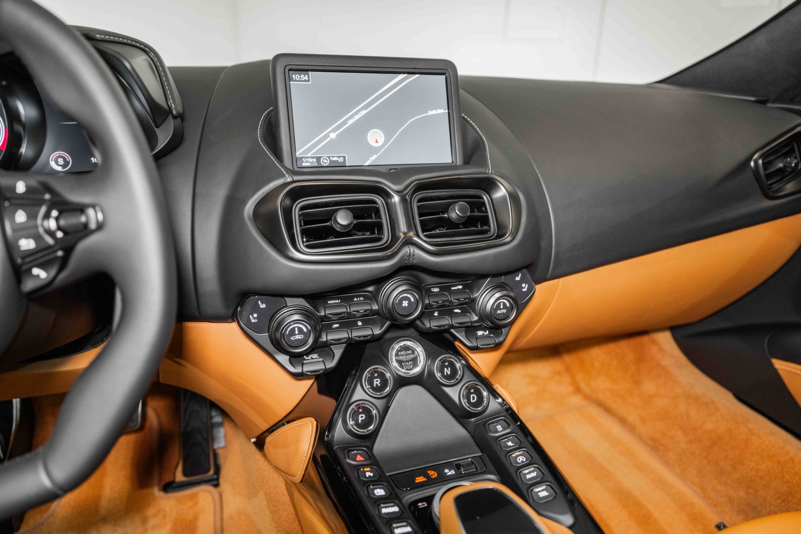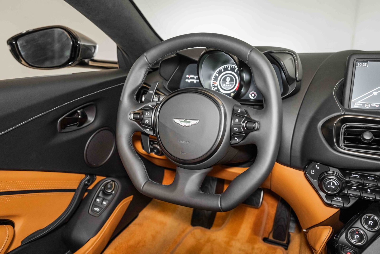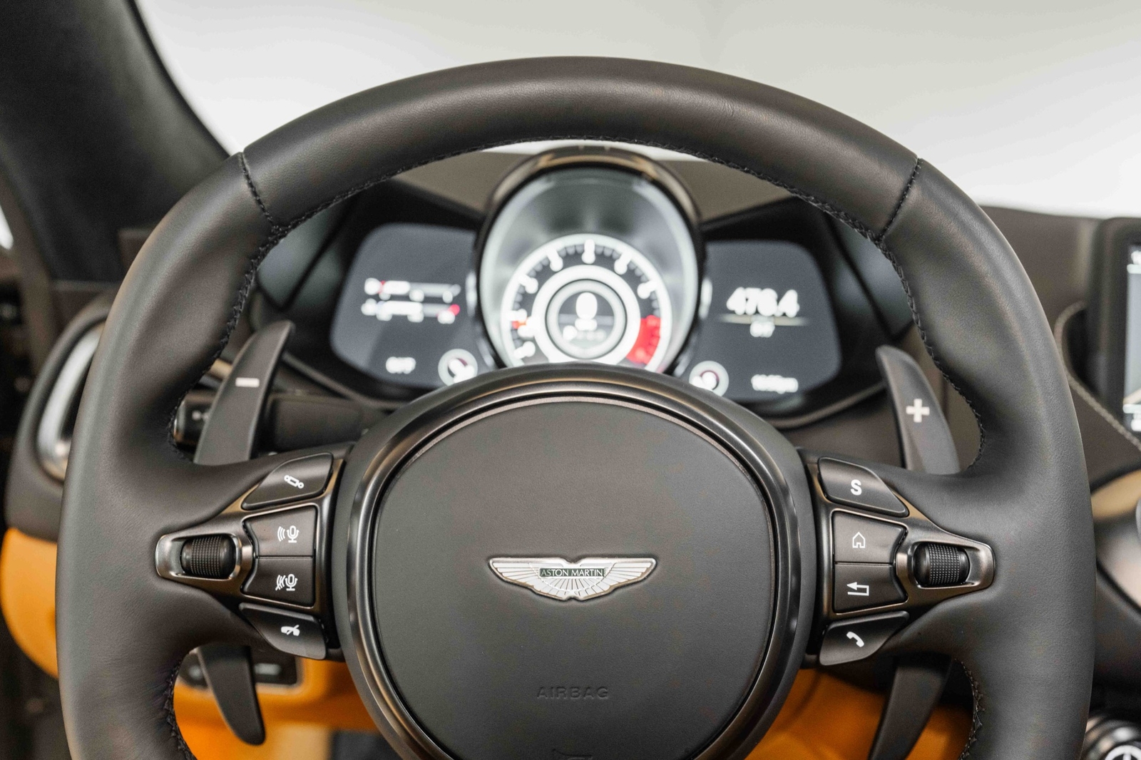 This Aston Martin has 519 miles and comes in a Titanium Grey on Onyx Black/Oxford Tan color combination.