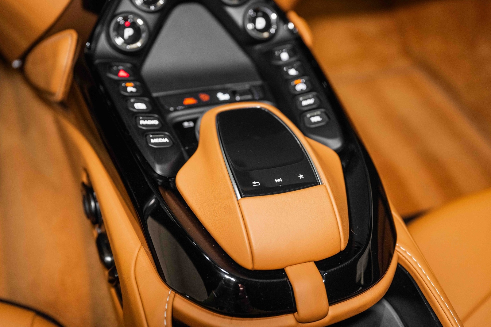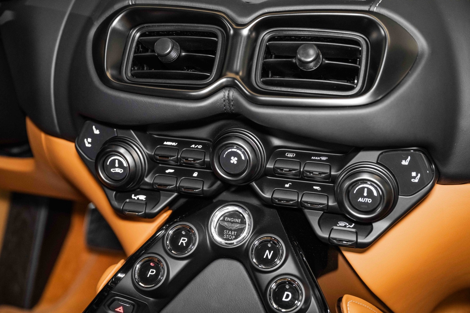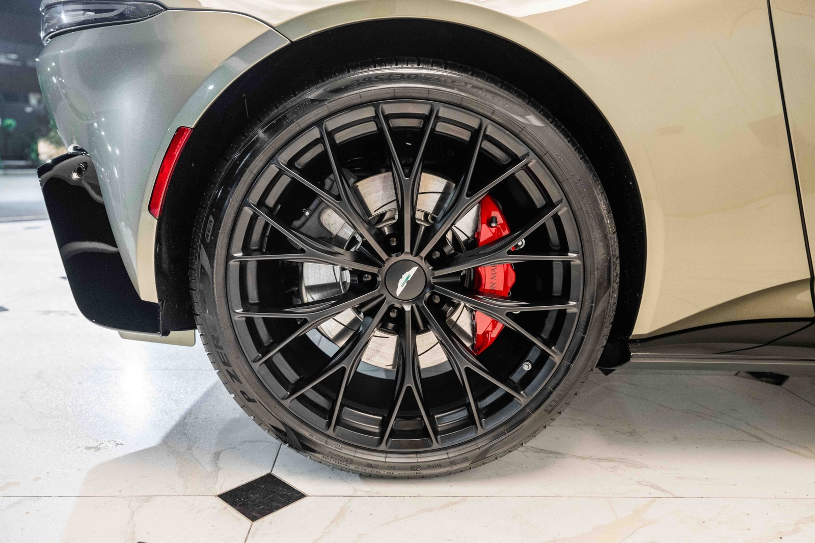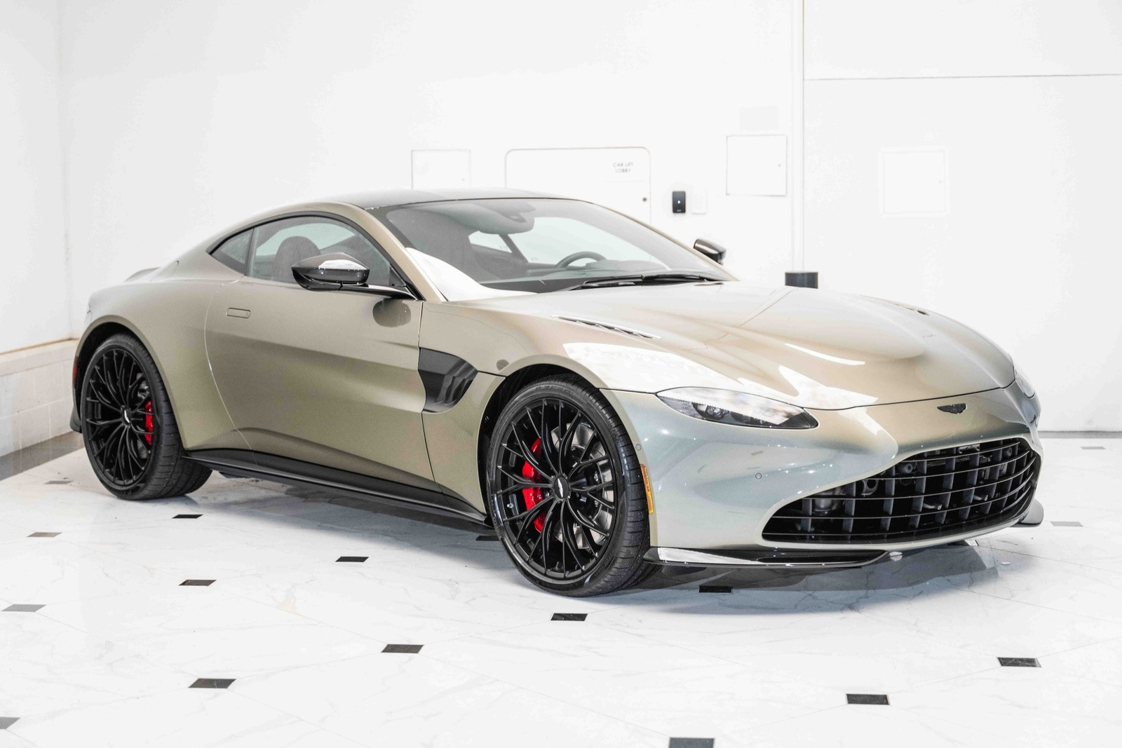 This Aston Martin has 519 miles and comes in a Titanium Grey on Onyx Black/Oxford Tan color combination.