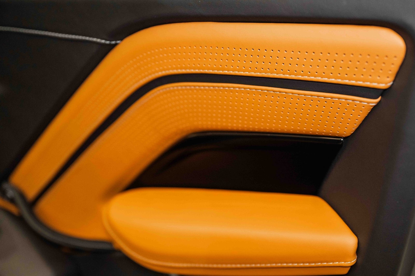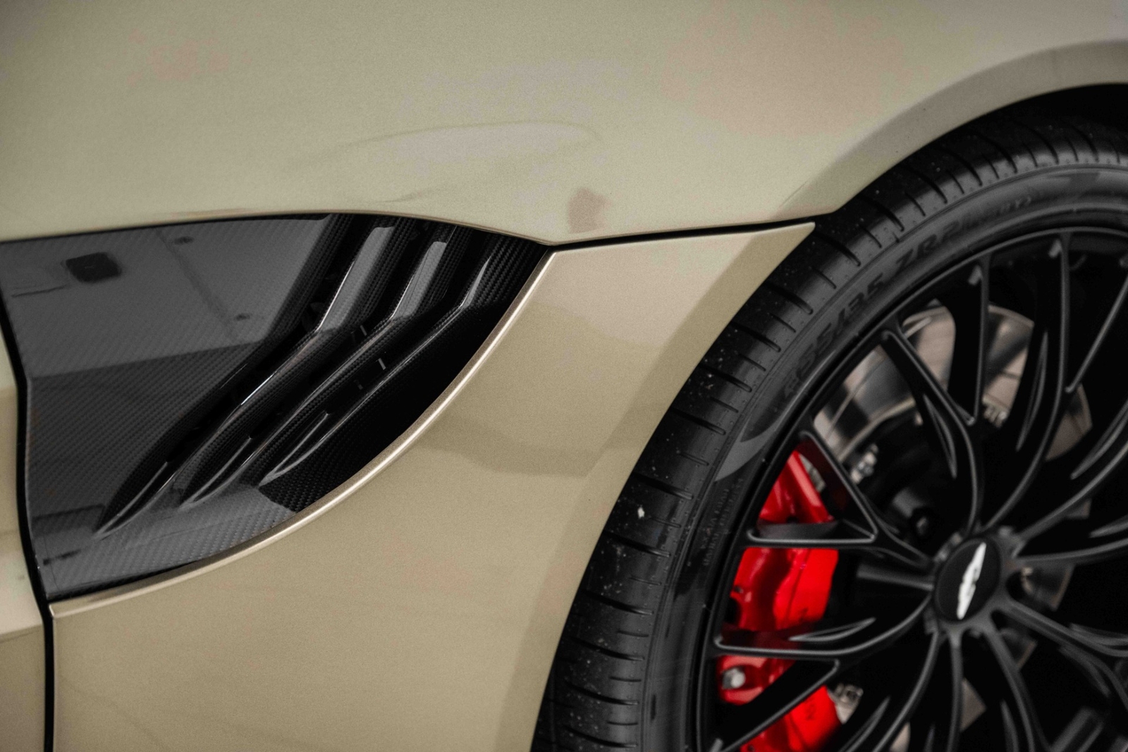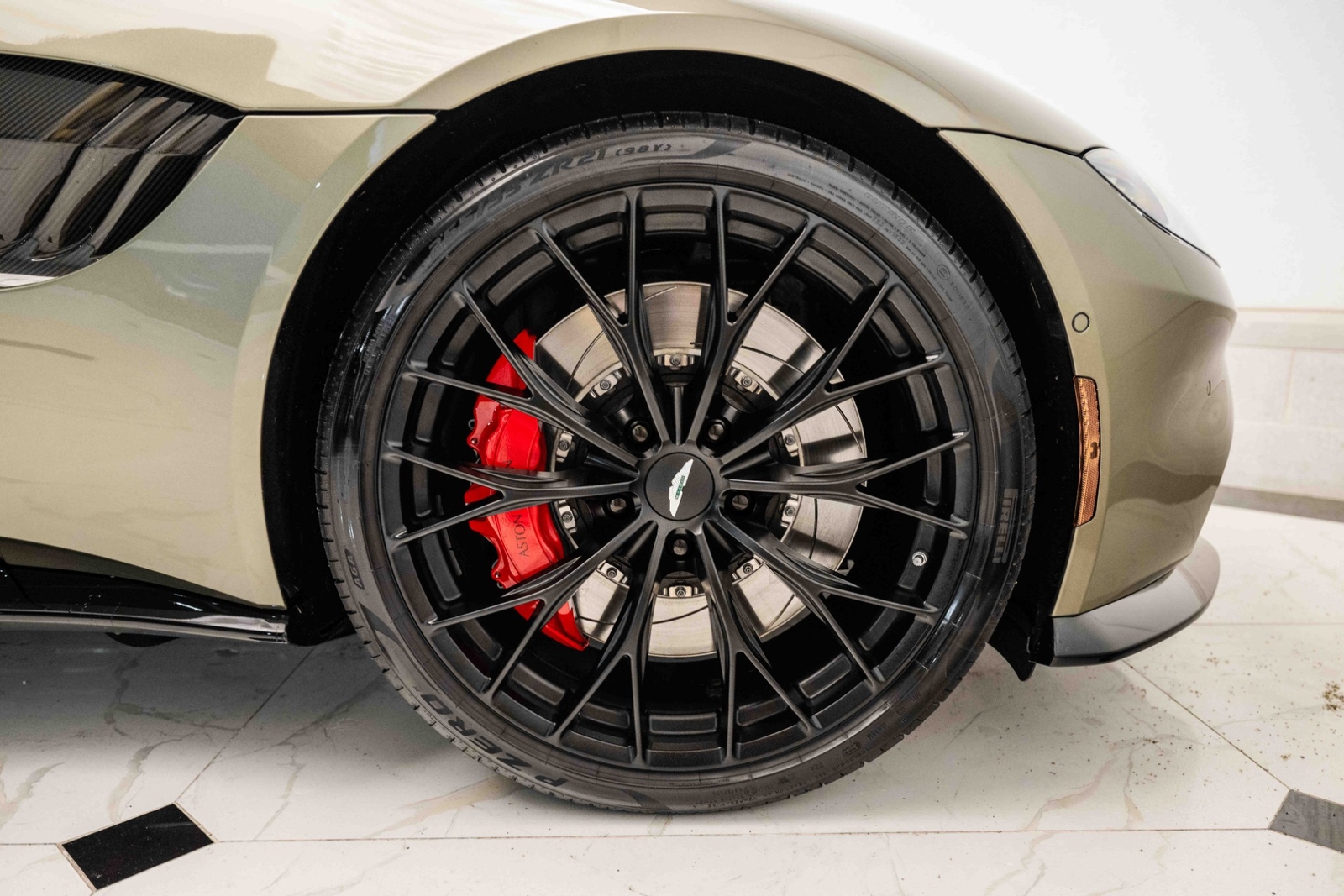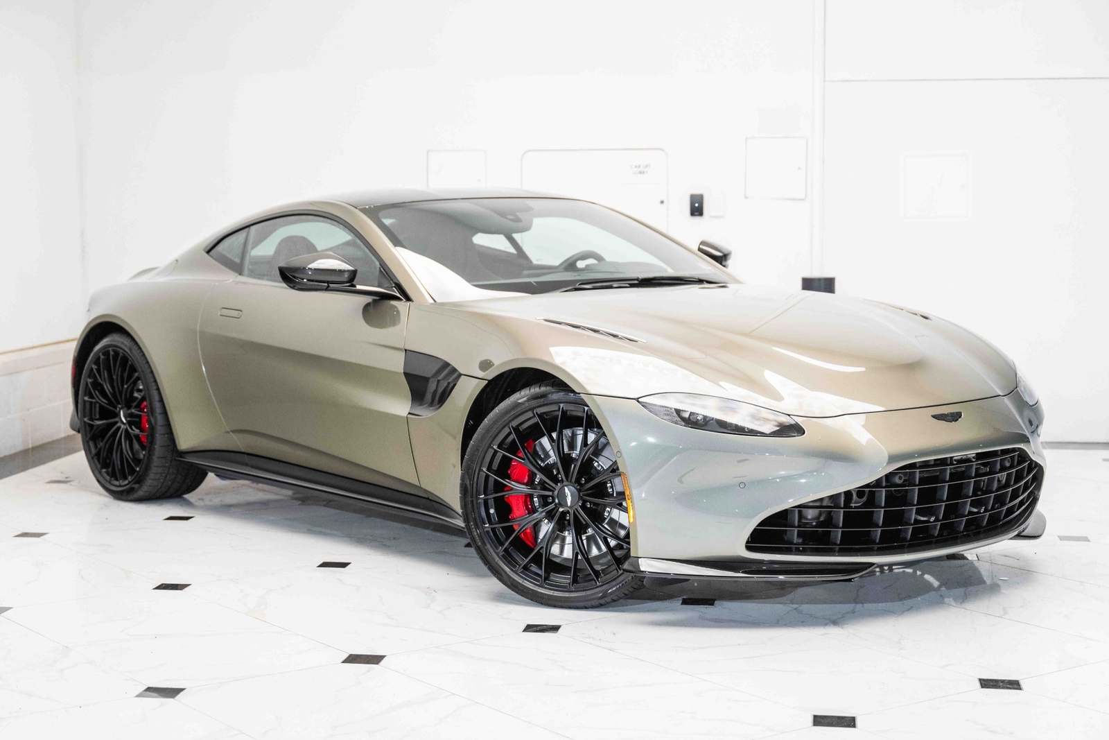 This Aston Martin has 519 miles and comes in a Titanium Grey on Onyx Black/Oxford Tan color combination.