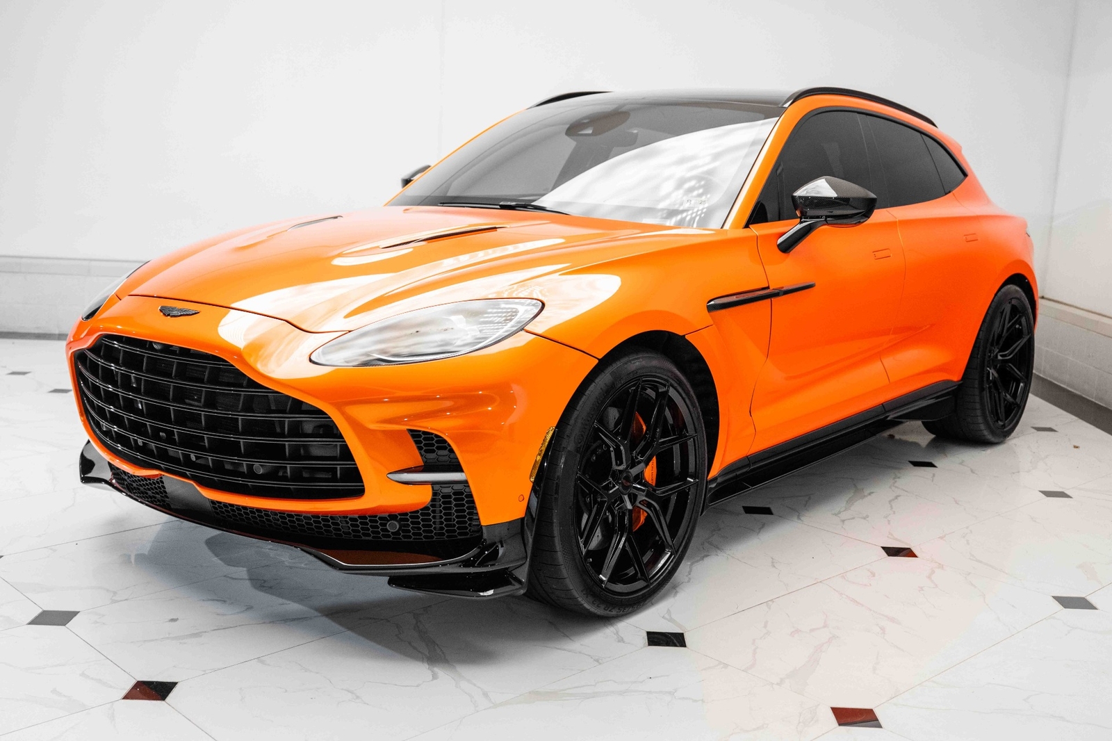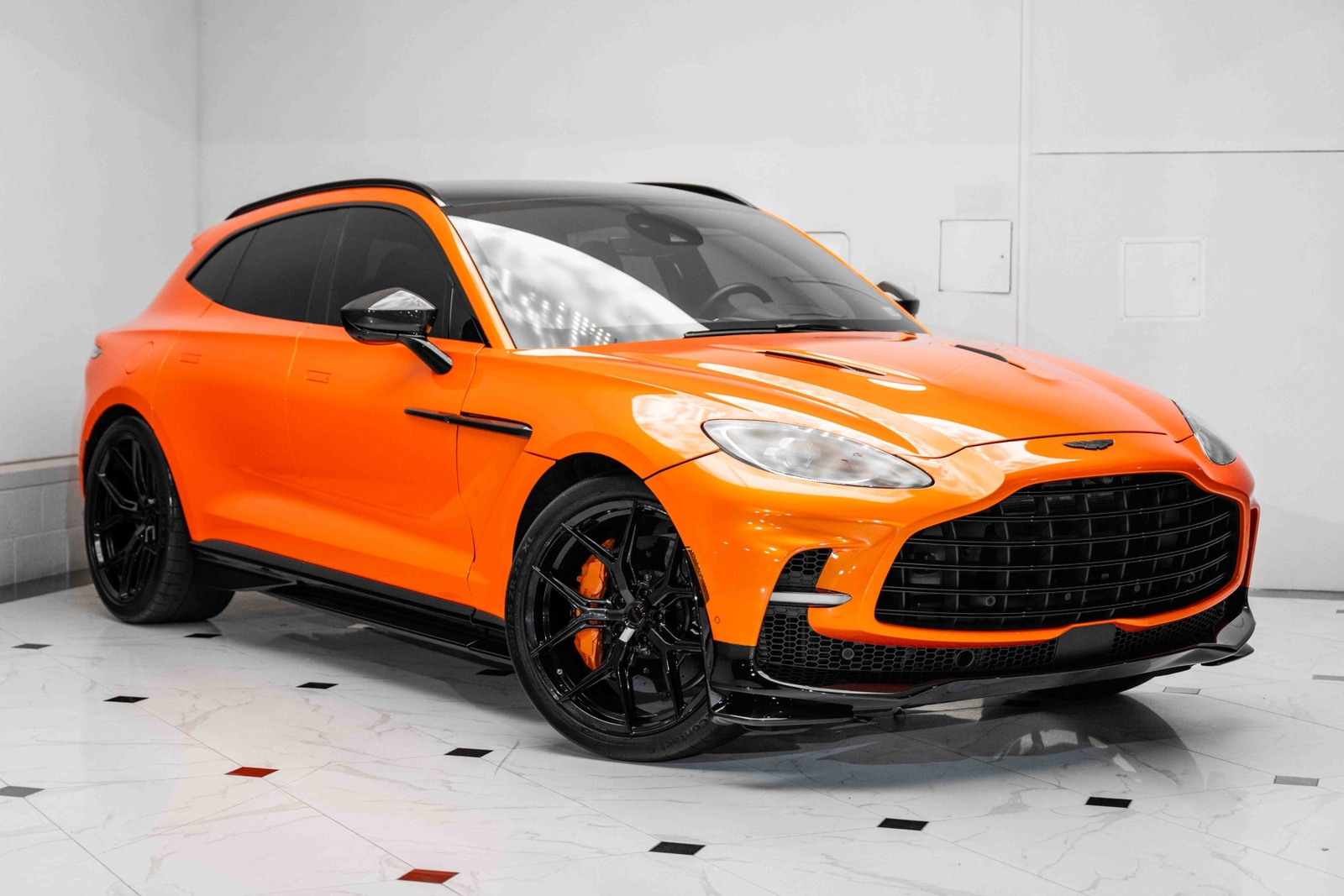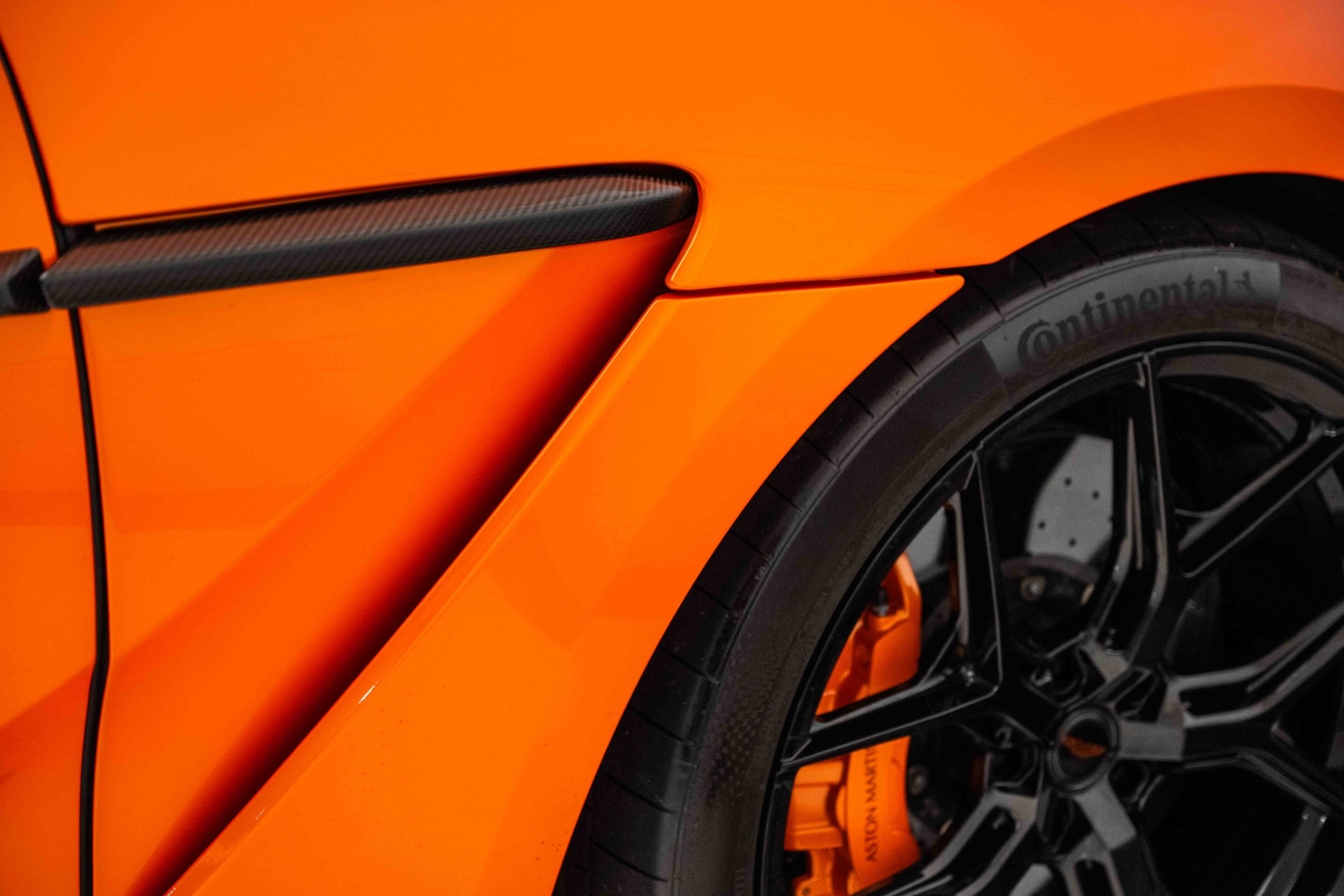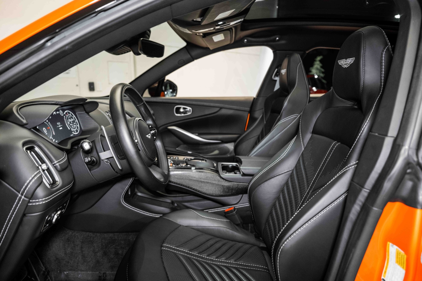 This Aston Martin has 10167 miles and comes in a Q Cosmos Orange Wrap on Onyx Black color combination.