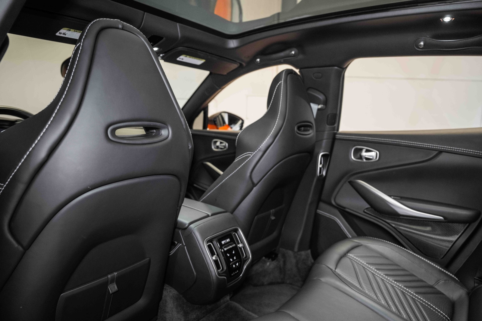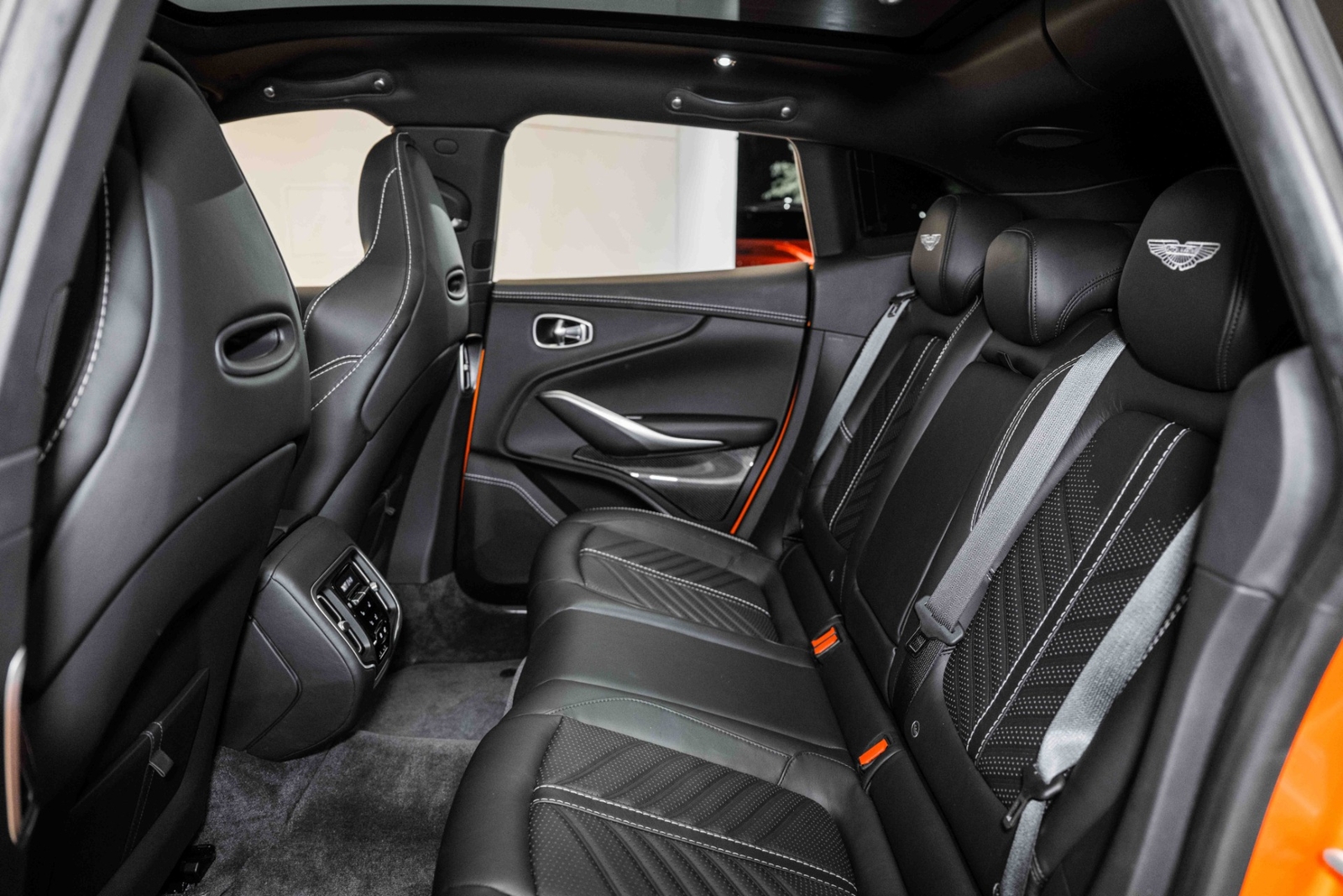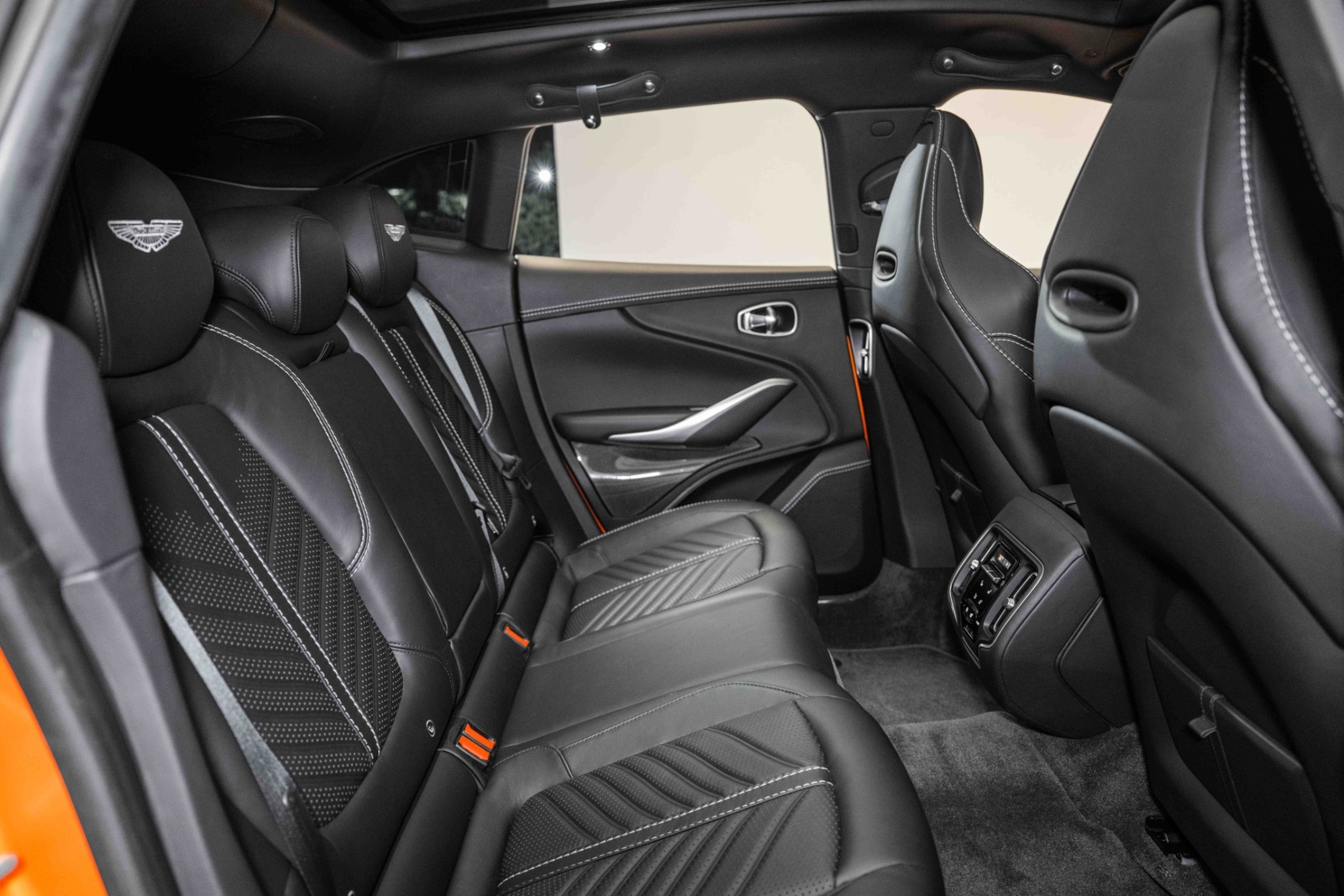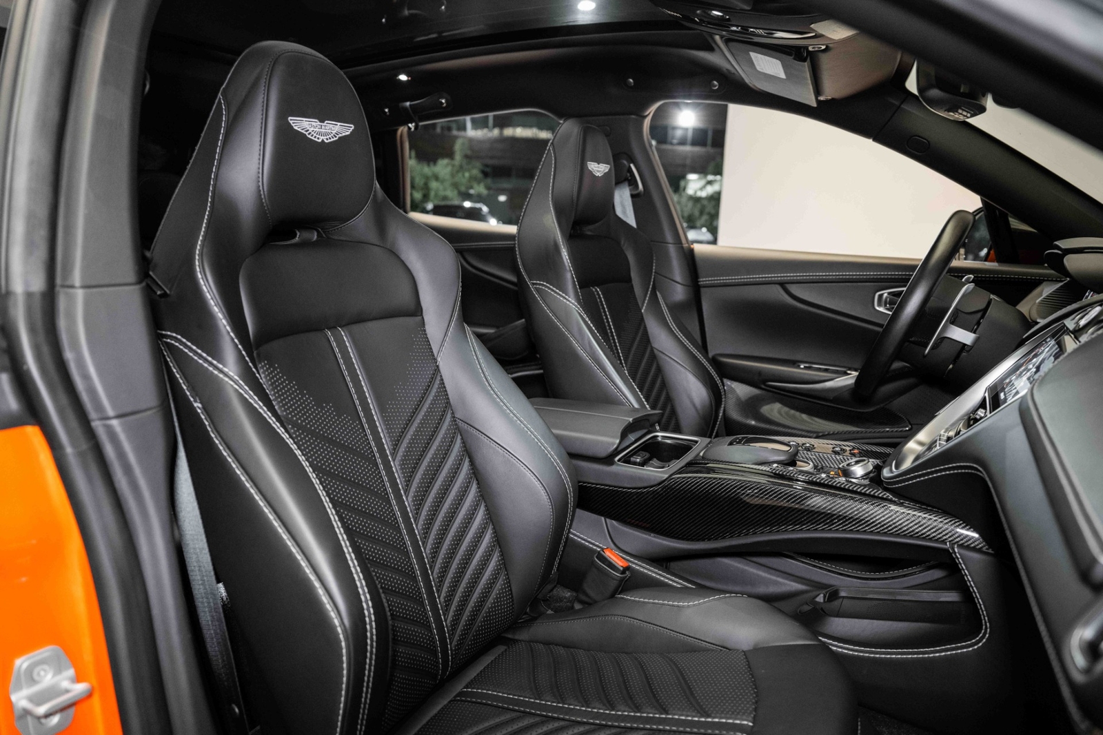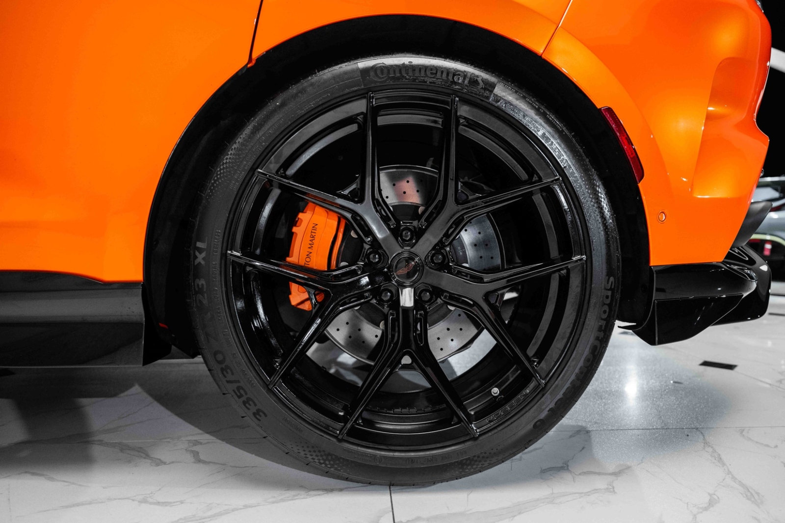 This Aston Martin has 10167 miles and comes in a Q Cosmos Orange Wrap on Onyx Black color combination.