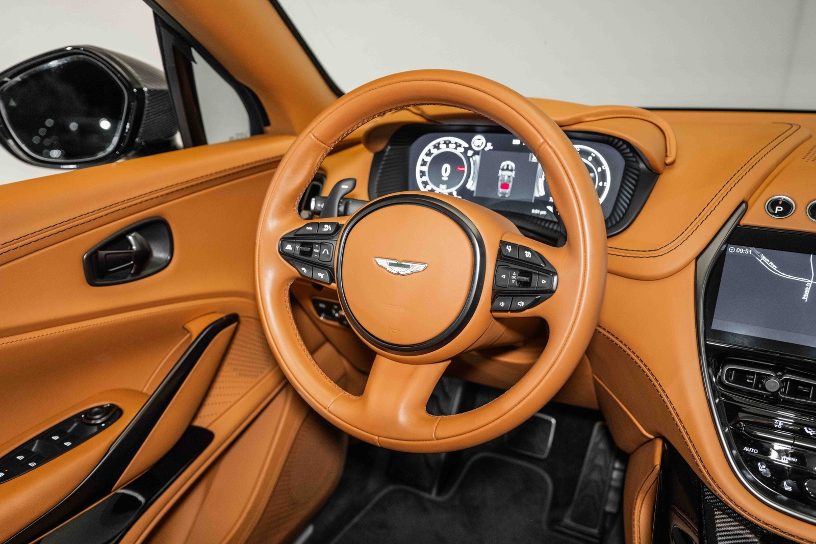 This Aston Martin has 10214 miles and comes in a Satin Jet Black on All Oxford Tan color combination.