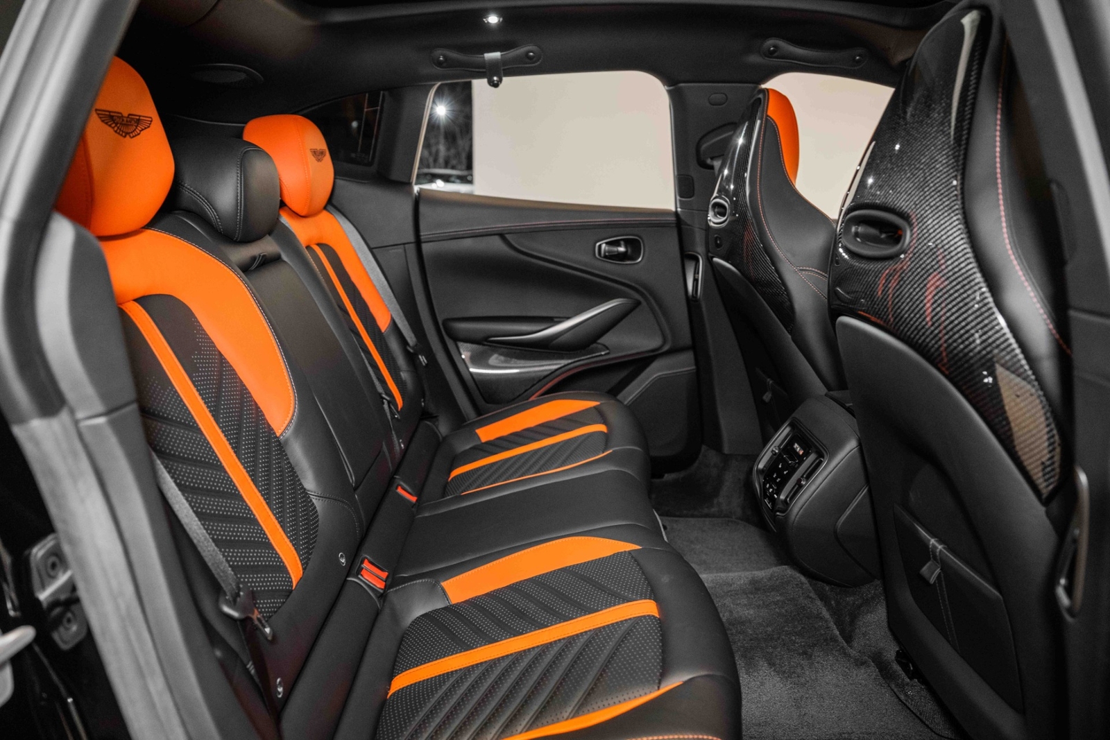 This Aston Martin has 12775 miles and comes in a Jet Black on Onyx Black - Semi Aniline/Californian Poppy - Semi Aniline color combination.