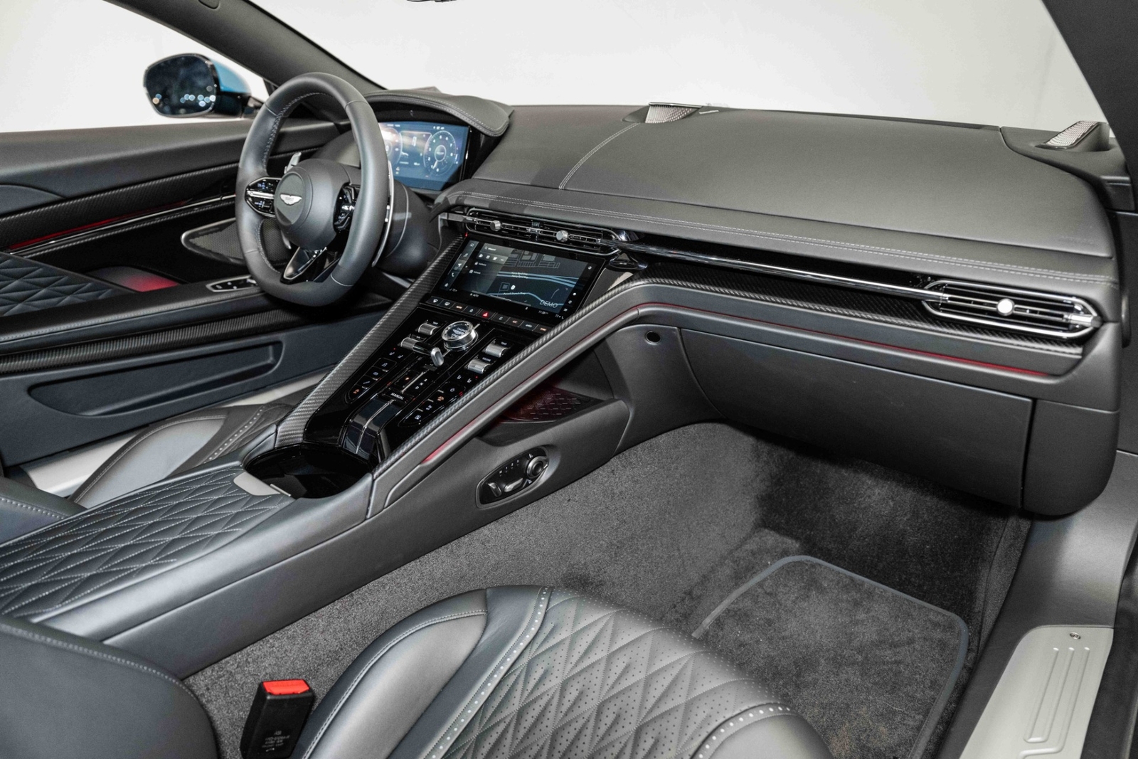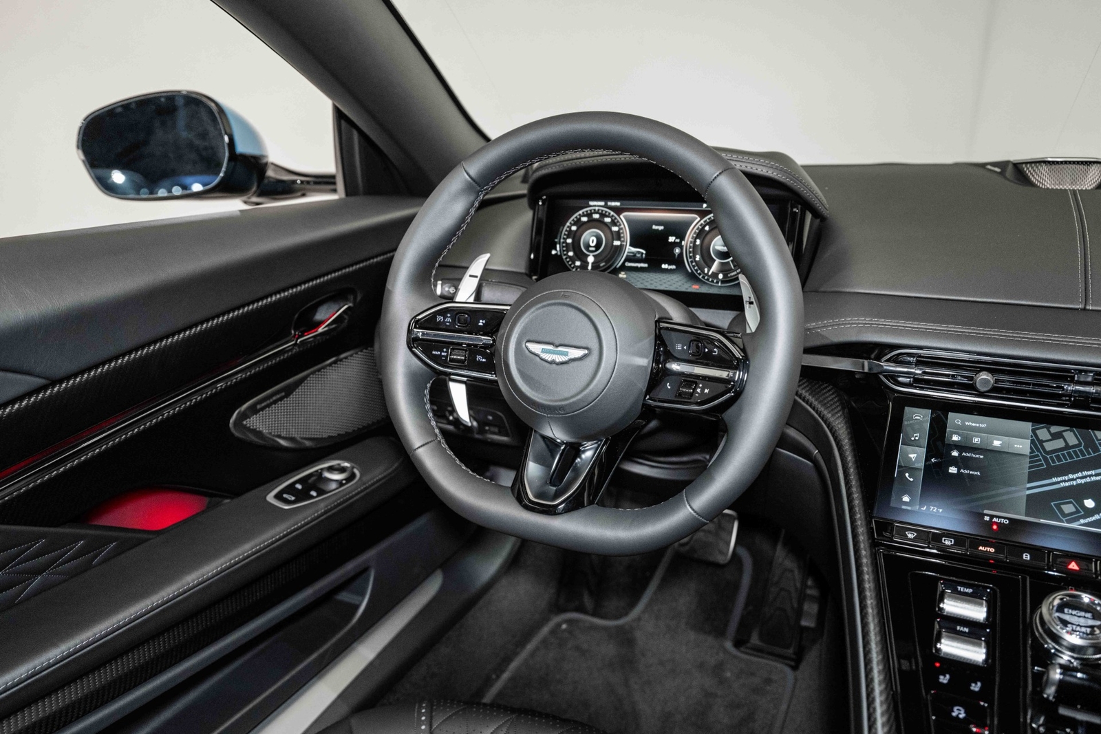 This 2024 Aston Martin DB12 V8 has 35 miles and comes in an Elwood Blue on All Titanium Grey - Semi Aniline color combination.