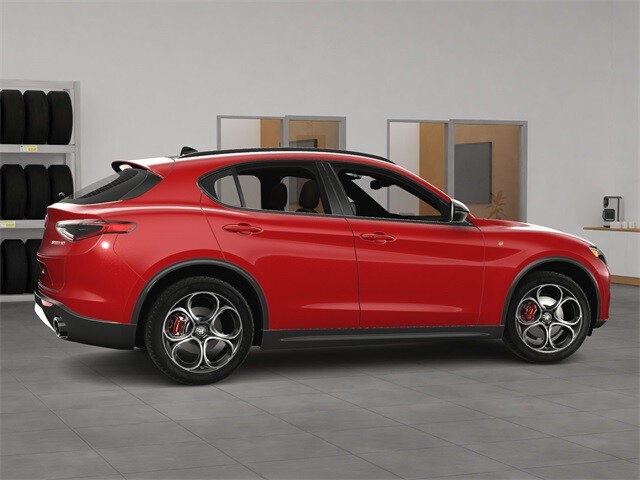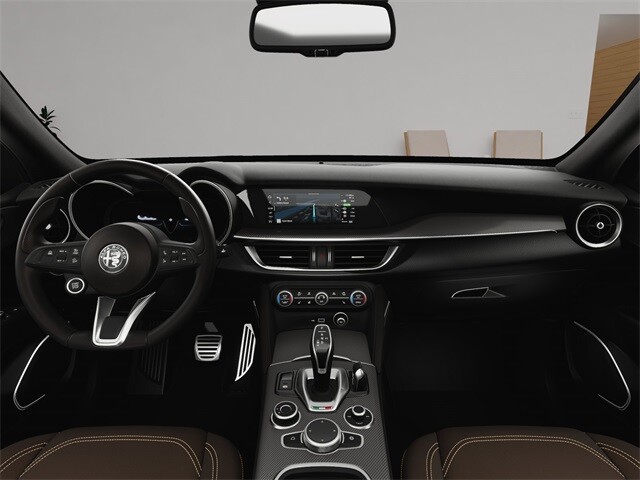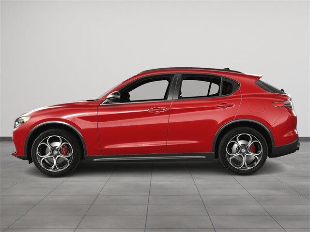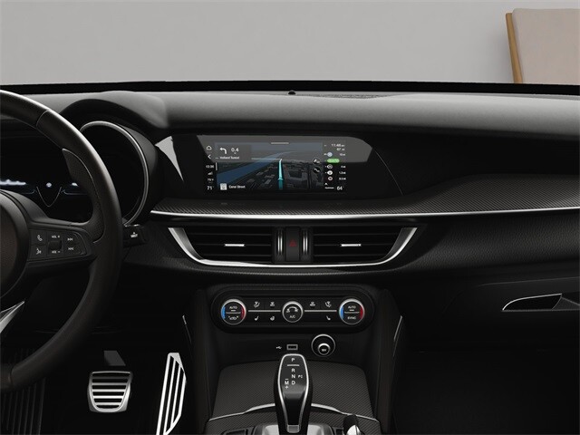 This Stelvio Ti is nicely equipped with Quick Order Package 22G Ti, 3.73 Axle Ratio, 4-Wheel Disc Brakes, 8 Speakers, ABS brakes, Air Conditioning, Alloy wheels, AM/FM radio: SiriusXM, Apple CarPlay/Android Auto, Auto High-beam Headlights, Auto-dimming door mirrors, Auto-dimming Rear-View mirror, Automatic temperature control, Brake assist, Bumpers: body-color, Compass, Delay-off headlights, Driver door bin, Driver vanity mirror, Dual front impact airbags, Dual front side impact airbags, Electronic Stability Control, Emergency communication system: Alfa Connect, Four wheel independent suspension, Front anti-roll bar, Front Bucket Seats, Front Center Armrest, Front dual zone A/C, Front reading lights, Fully automatic headlights, Garage door transmitter, Gloss Red Calipers w/White Script, Heated door mirrors, Heated front seats, Heated rear seats, Heated steering wheel, High-Intensity Discharge Headlights, Illuminated entry, Knee airbag, Leather Seats, Leather Shift Knob, Low tire pressure warning, Manufacturer's Statement of Origin, Memory seat, Navigation System, Occupant sensing airbag, Outside temperature display, Overhead airbag, Overhead console, Panic alarm, ParkView Rear Back-Up Camera, Passenger door bin, Passenger vanity mirror, Power door mirrors, Power driver seat, Power Liftgate, Power moonroof, Power passenger seat, Power steering, Power windows, Radio data system, Radio: AM/FM/HD 8.8 w/Navigation, Rain sensing wipers, Rear anti-roll bar, Rear audio controls, Rear fog lights, Rear reading lights, Rear seat center armrest, Rear window defroster, Rear window wiper, Remote keyless entry, Roof rack: rails only, Security system, Speed control, Speed-sensing steering, Speed-Sensitive Wipers, Split folding rear seat, Spoiler, Sport steering wheel, Steering wheel mounted audio controls, Tachometer, Telescoping steering wheel, Tilt steering wheel, Traction control, Trip computer, Turn signal indicator mirrors, Variably intermittent wipers, Wheels: 19 x 8.0 Sport 5-Hole Aluminum, and Wheels: 20 x 8.5 Sport 5-Hole Aluminum.
