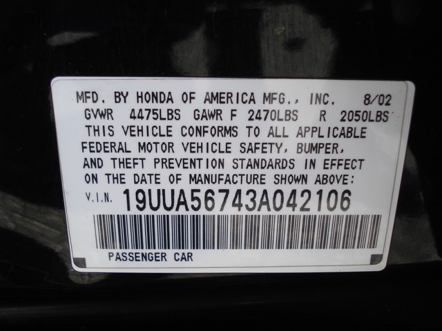 • VIN: 19UUA56743A042106