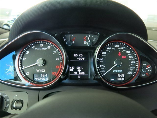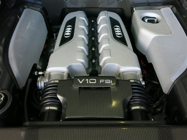 THE EXTERIOR AND INTERIOR OF THIS 2011 AUDI R8 5.2L ARE IN EXCELLENT CONDTION.  THE PHANTOM BLACK PAINT WITH THE PAINTED SIDEBLADE LOOKS GREAT AND THE 19" POLISHED ALLOY WHEELS IGNITE A STUNNING CURB APPEAL.  THE INTERIOR SHOWS NO SIGN OF HEAVY WEAR OR ABUSE.  THE BLACK LEATHER INTERIOR SHOWS LIKE NEW AND THE BLACK ALCANTARA HEADLINER DRESSES OUT THE INTERIOR VERY NICELY.