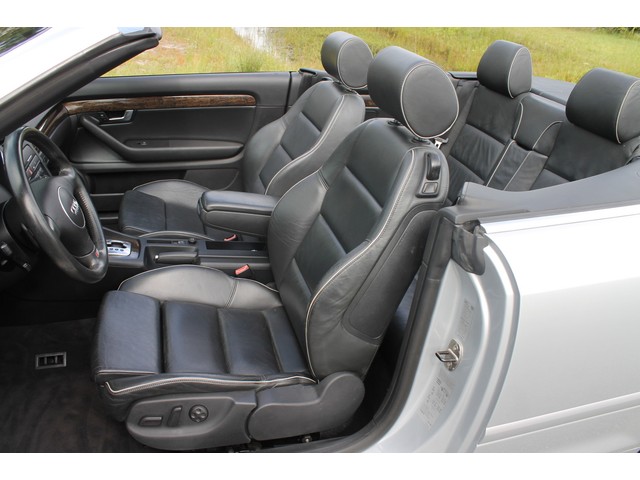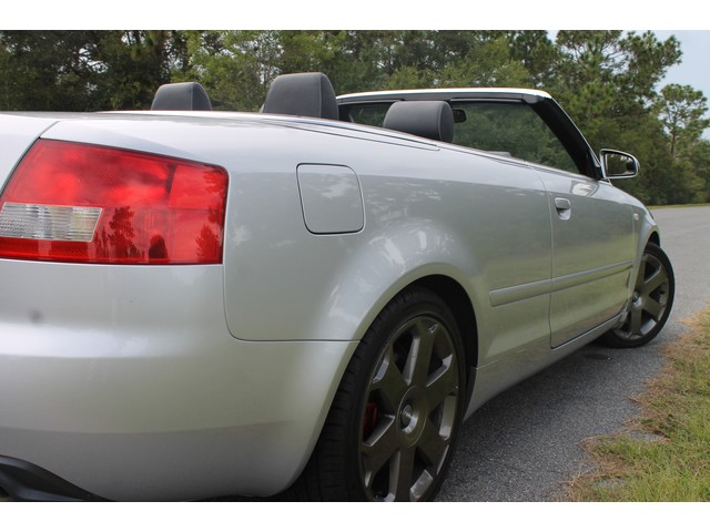 2004 Audi S4 cabrio, real clean inside and out with clean Carfax, 61500 original miles, top is like new, and tires are also like new. No warning lights on dash, loaded with 18 inch S wheels, paddle shifting and more. Runs out 100% without any issues.  The previous owner was a non-smoker.Exterior is free of any damage.There are some minor dings and scratches on this vehicle.This vehicle has a smooth shifting transmission.This vehicle appears to have been garaged.There is a properly functioning engine in this vehicle.The exterior of this vehicle is extra clean.The interior was well maintained.If you have any questions about this or any of my other auctions please feel free to contact me via e-mail or you can call me at (407) 963-8565. Thank you for your interest and I look forward to hearing from you.