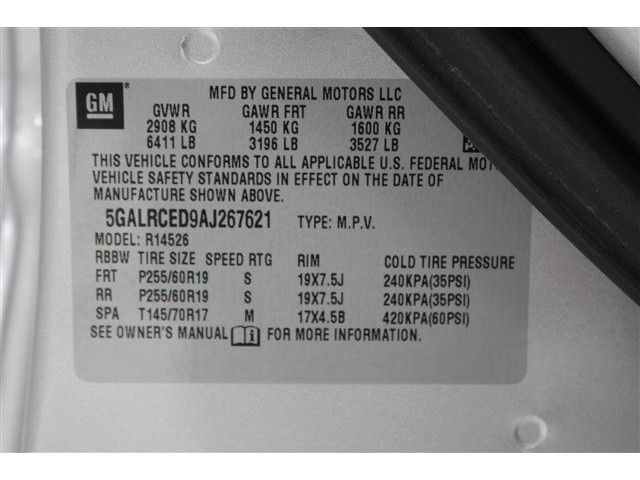 Tired of the same tiresome drive? Well change up things with this great 2010 Buick Enclave. It has plenty of passenger space and a hatch area with cargo room galore. New Car Test Drive said it...features a modern cabin, with stylish illumination, crisp graphics, genuine wood trim and nice leather. The seats are comfortable...also offers strong acceleration and smooth highway cruising... J.D. Power and Associates gave the 2010 Enclave 4.5 out of 5 Power Circles for Overall Initial Quality Mechanical. This SUV is nicely equipped with features such as Luxury Package (Articulating Headlamps, Heated & Cooled Driver & Front Passenger Seats, Power Tilt & Telescopic Steering Column, and Power-Folding Heated Body-Color Outside Mirrors), Enclave CXL 2XL, 4D Sport Utility, 6-Speed Automatic, FWD, Quicksilver Metallic, Titanium w/Dark Titanium Accents w/Leather Seating Surfaces, 10 Speakers, 3rd row seats: split-bench, 4-Way Power Passenger Seat Adjuster, 7-Passenger Seating w/2nd Row Captain's Chairs, 8-Way Power Driver Seat Adjuster, ABS brakes, Air Conditioning, Alloy wheels, Auto-dimming door mirrors, Automatic temperature control, Brake assist, CD player, Dual front impact airbags, Dual front side impact airbags, Electronic Stability Control, Front dual zone A/C, Garage door transmitter, Heated door mirrors, Heated front seats, Leather Seating Surfaces, Memory Settings, MP3 decoder, Occupant sensing airbag, Overhead airbag, Power door mirrors, Power windows, Rear air conditioning, Rear audio controls, Remote keyless entry, Remote Vehicle Starter System, Security system, Speed control, Steering wheel mounted audio controls, Telescoping steering wheel, Traction control, Ultrasonic Rear Parking Assist, Ventilated front seats, and XM Radio.