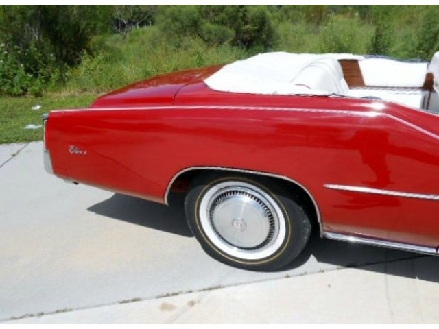 Be smooth while you cruise in this this big old Caddy Eldorado Convertible. Load your friends and family with room to spare! Great looking convertible in bright red with a white leather interior and white rag top. Mostly original car with original and great running big 500 V-8 and an automatic transmission. It's had a coat of paint and the interior has been well maintained with original leather trim. No rips or tears in the leather, just a little common wear as expected. It has an upgraded sound system with and 4 speakers. Also it has a top that shows a little wear but does not leak and looks presentable. This car does what theirs does for much less! Call for details. We ship and finance at competitive rates.
