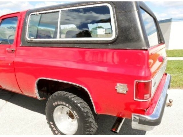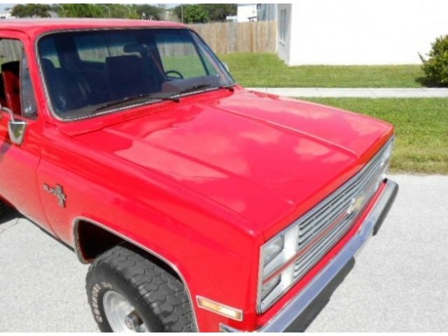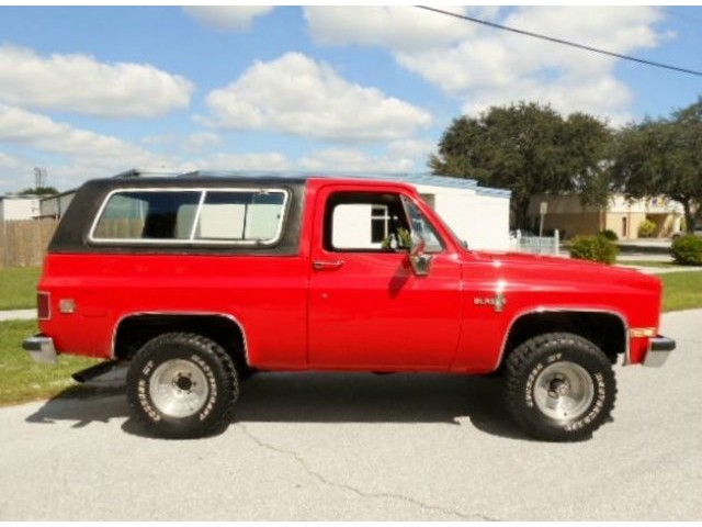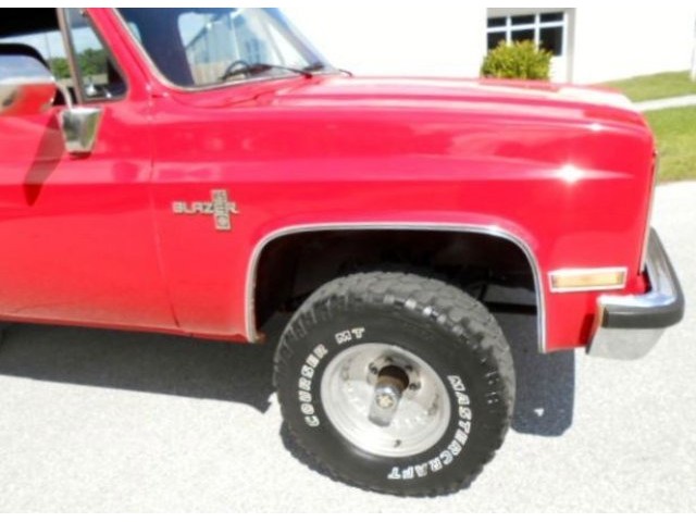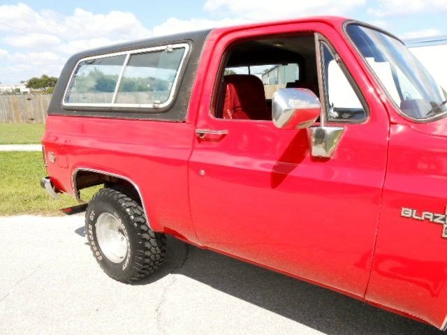 Extraordinary Old School K-5 4X4 Blazer fitted with Oversized mud style tires and a hi performance 350 engine. It has 4 wheel drive and an automatic transmission. The fire engine red paint is phenomenal with super high gloss paint finish on a remarkably straight, rust free body. The interior is basically all new except for the dash and steering wheel. The chassis and underside are rock solid. This truck has all original sheet metal. The exhaust is louder and bolder than normal but is a perfect match with the appearance of this bold Blazer. This truck is the total package. The A/C is in process of being re-installed as I write this. Call for update on this and for any specific information. 941-928-2339. or check our website for updated pictures www.americanclassiccarsales.com We ship anywhere.