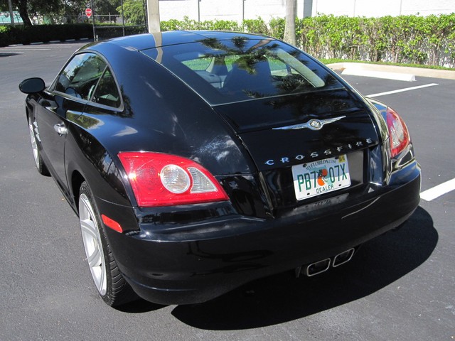 2004 CHRYSLER CROSSFIRE COUPE LIMITED WITH SUPER LOW 79K FLORIDA MILES, 3.2L V6  ENGINE, PREMIUM PACKAGE, SPORT PACKAGE, COLD WEATHER PACKAGE, AUTOMATIC TRANSMISSION, SUPER NICE SPORT ALLOY WHEELS, ICE COLD AIR CONDITIONING, LEATHER INTERIOR, HEATED FRONT SEATS, IN DASH INFINITY AM/FM RADIO WITH CD DISC PLAYER AND MUCH MORE. Up for auction an absolutely gorgeous looking in Black exterior color and combinational two tone Dark Slate Gray/Medium Slate Gray Leather Interior Chrysler Crossfire Coupe Limited that has truly been well kept and maintained. The mileage represented is the actual mileage of this vehicle. Clean smell throughout, appears to have never been smoked in. This vehicle has all of its original body parts and appears to have never been in an accident. It has a CLEAN AUTOCHECK history report! We looked all over and found no door dings, obviously this vehicle is one of those vehicles you always see parked deep in the parking lots. To look this good, it is obvious that this beauty has been garaged. This vehicle's transmission shifts out nice and smooth from gear to gear. The engine is mechanically sound and can be driven anywhere with confidence. The elctrical and optional equipment on this vehicle has been checked to insure that it is all in working condition. This cream puff is a top-flight used vehicle, with no known defects. No warning lights on the dash and No oil leaks makes it a Great vehicle! The beautyful two tone leather interior is clean and polished looking. The tires are in a good shape, please see the pictures. Plan a trip or vacation to Florida and we will pick you up at the Ft Lauderdale airport only 15 minutes away. Please call us for more information at 561-317-1916. Thank you for reading and Good Luck!