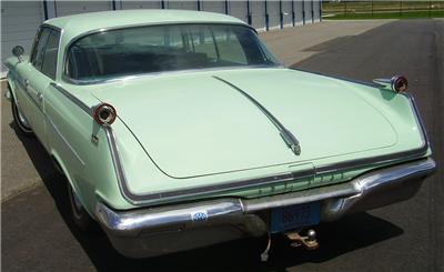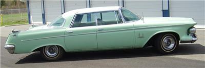 1962 Mint Green Crown Imperial - 4 door Sedan.  Originally a California car - brought to MidWest in the 1990's - has been garaged since 1997.  Mileage reads 51,000 currently but could actually be 151,00?  Interior seats restored beautifully!  Exterior also re-done to match original color, but has some leaf impressions on the top when a tarp blew off in the Fall and leaves sat on it for a few days.  413 Engine, Power Steering, Power Brakes, Push Button transmission, Power windows (two not working properly at the moment), Air Conditioning/Heat (currently has a toggle switch inside to change from air conditioning or heating). Includes two new reproduction tail light lens (still in the box) - just recently purchased.  Turn signal available but had broken off.  Speedometer works but flashes back and forth? Gas tank has a leak in the upper section/can only fill tank half way. (Has never been a problem)   Has a very large trunk! This is a beautiful car to drive and goes like the wind!  Must be picked up locally or arrangements made for transport pick-up.