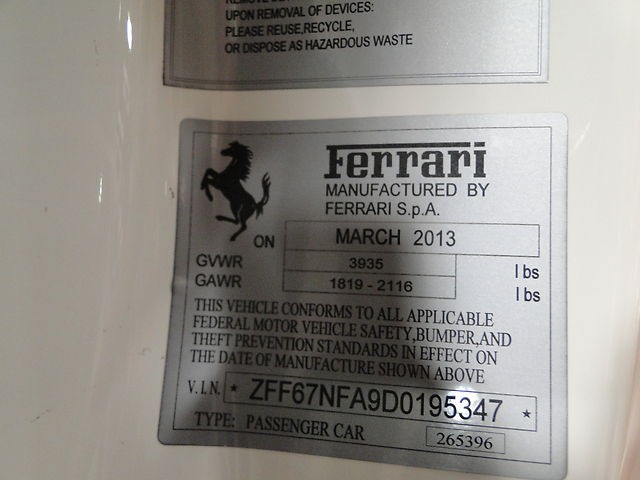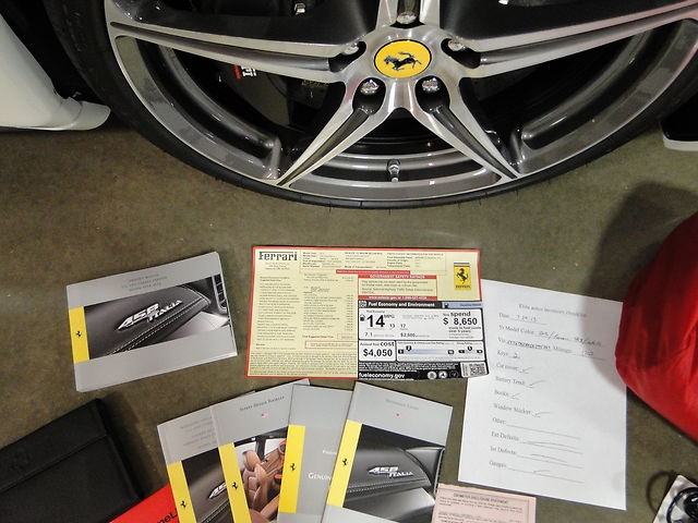 We just took this car in on trade against a Porsche Carrera GT which is the ONLY reason the original owner let this car go, which he special ordered.  This car was sold NEW in MAY of this year (5/2013).  It comes with the 7 Year free maintenance from Ferrari and the full 3 year bumper to bumper warranty.
