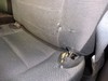 Inside, everything looks good, but the drivers seat has a small tear from entry/exit (see photo) and the passenger seat has what looks like an ink stain. All controls seem to work with the exception of the fan, so while this car has AC, I can't comment on whether it is cold or not.