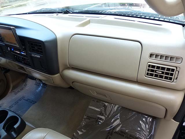 Up front, the driver does not suffer. Factory Excursion features include dual power leather seats, cold A/C, power windows, locks and mirrors, remote entry, keypad entry tilt wheel, cruise control and more. Upgrades include an Alpine AM/FM/CD/DVD entertainment unit with GPS Navigation. There is a switch for the partition and a master switch for the rear electronics.