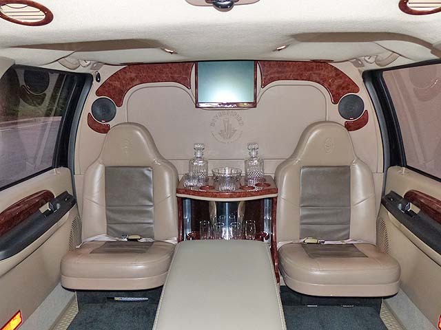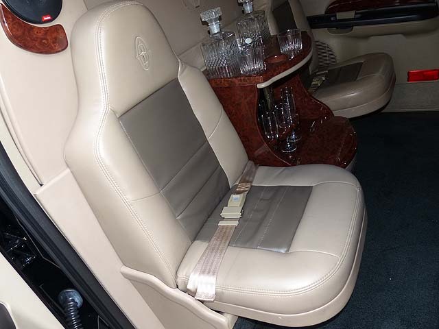 Enough? Not quite yet. There is lighted bar that holds all the supplies you might need on a long trip - or a long night out. A power partition seperates the lounge area form the cab if you'd like a little privacy.