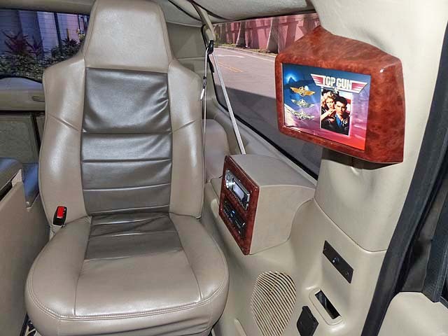 All of the passengers can enjoy videos on either of the 2 video screens (one near the entrance door, one above the partition). There is a rear DVD player and stereo system with Alpine, Boston Acoustic and Viewsonic components - all quality equipment.
