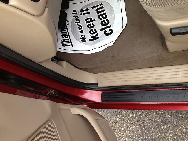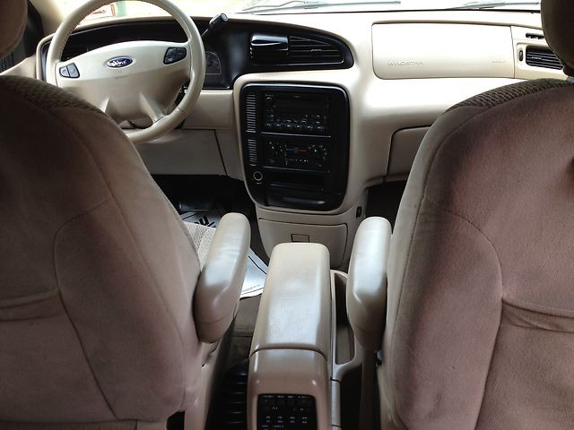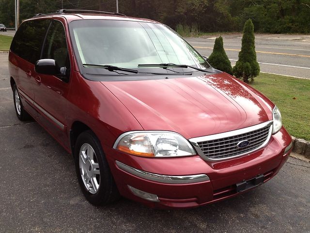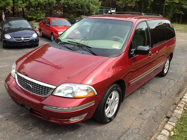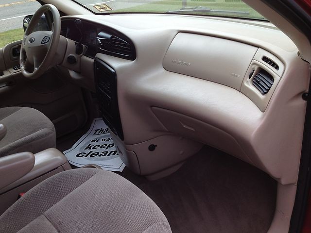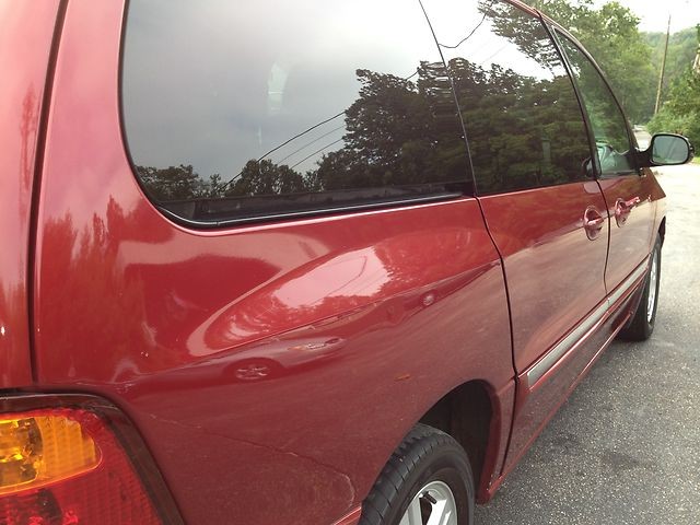 We are offering this nice NO RESERVE! 2003 FORD WINDSTAR SE QUAD SEATING 7 PASSENGER MINI VAN! This van has slightly high mileage but mechanically and physically you would never know it by looking at it or driving it! This is the SE model so it has some nice features including power windows, power door locks, power mirrors, ICE COLD front and rear A/C and heat, tilt wheel, cruise control with steering wheel controls, outside remote keyless entry, AM-FM stereo with CD and Cassette player, power driver’s seat, delay wipers, rear window wiper/defogger, and more! Most of the options I tried work, with the exception of the passenger side front window. This van has the 3.8 Litre V-6 engine that starts right up and idles quietly. There is none of those annoying check engine or warning lights on. The 4 speed automatic transmission with electronic overdrive shifts nicely and smoothly and there are no strange noises or smells coming from this car. The Anti-lock equipped brakes stop this car quickly, safely and in a straight line! The maroon paint is clean and shiny, it is not perfect and has some nicks and scratches, and the body is also decent, with only some minor dings, dents and rust, but overall it looks really good. You will need a windshield for it appears to have a pretty decent sized crack. The cloth seats are amazingly clean and nice with much less wear and tear than you would expect. The rest of the interior is also clean and rather nice and it has seating for 7 passengers! I have to say that the front tires on this van should be replaced very soon, and the rears appear to have around only 35-40% of the tread left and they should probably be changed soon as well, they are mounted on very nice and clean FMC aluminum alloy wheels. The Kelly Blue Book Suggested Retail Value is $5790.00!
